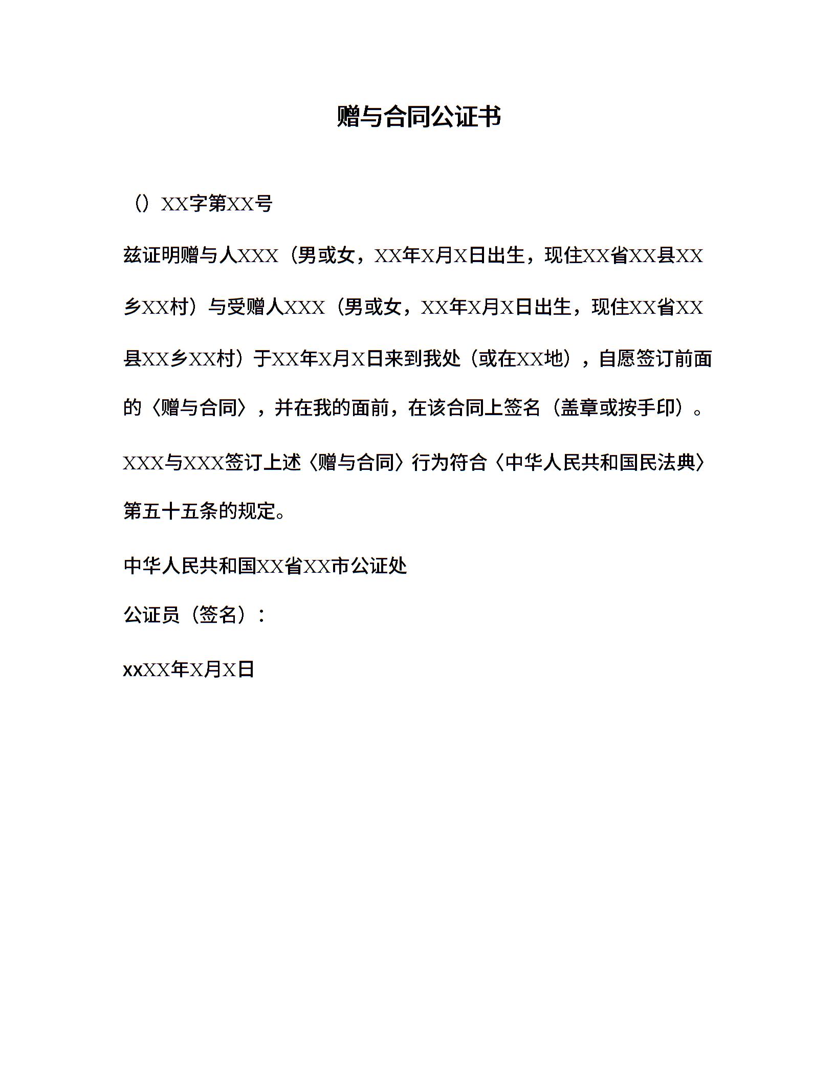 赠与合同公证书