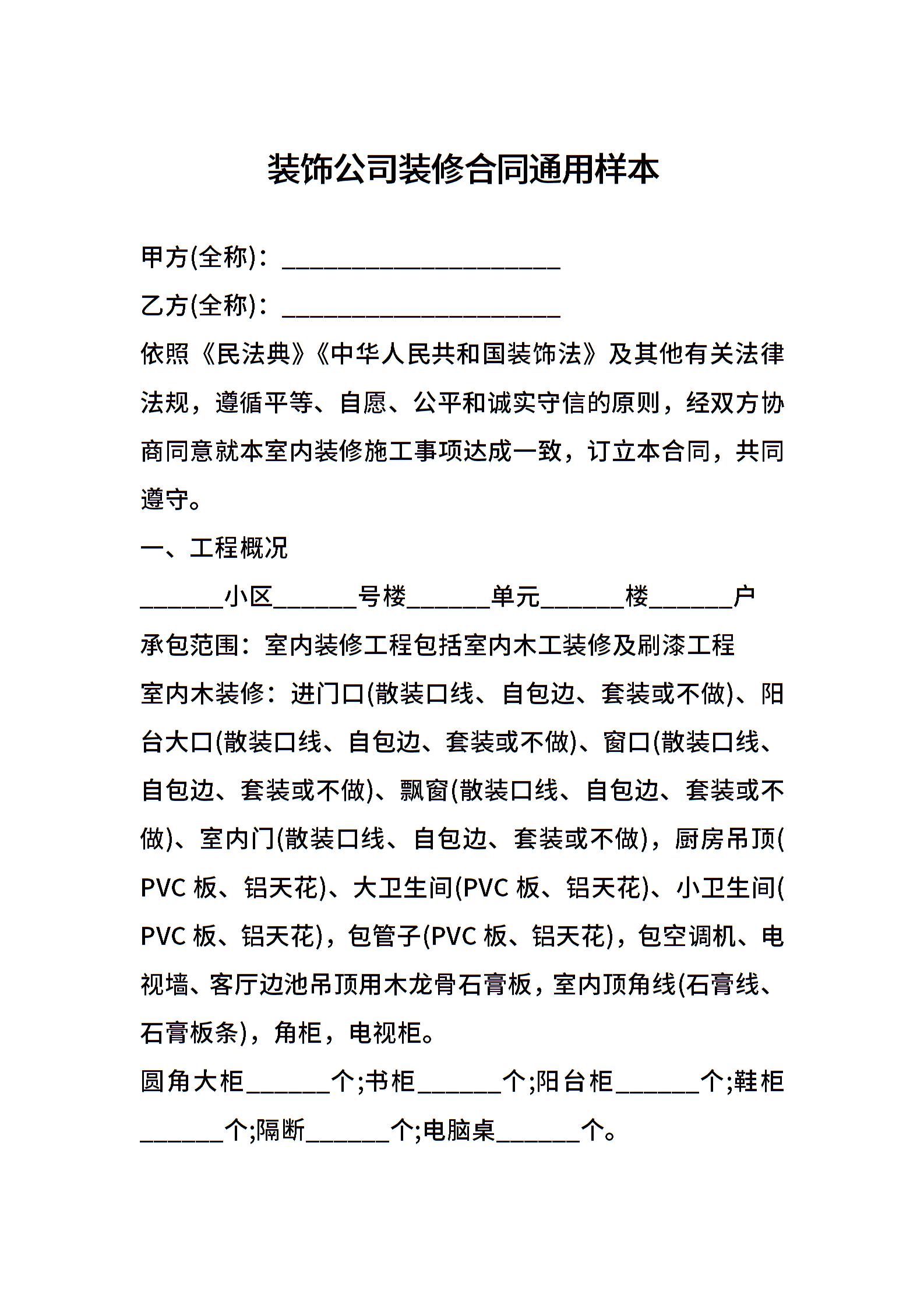 装饰公司装修合同通用样本