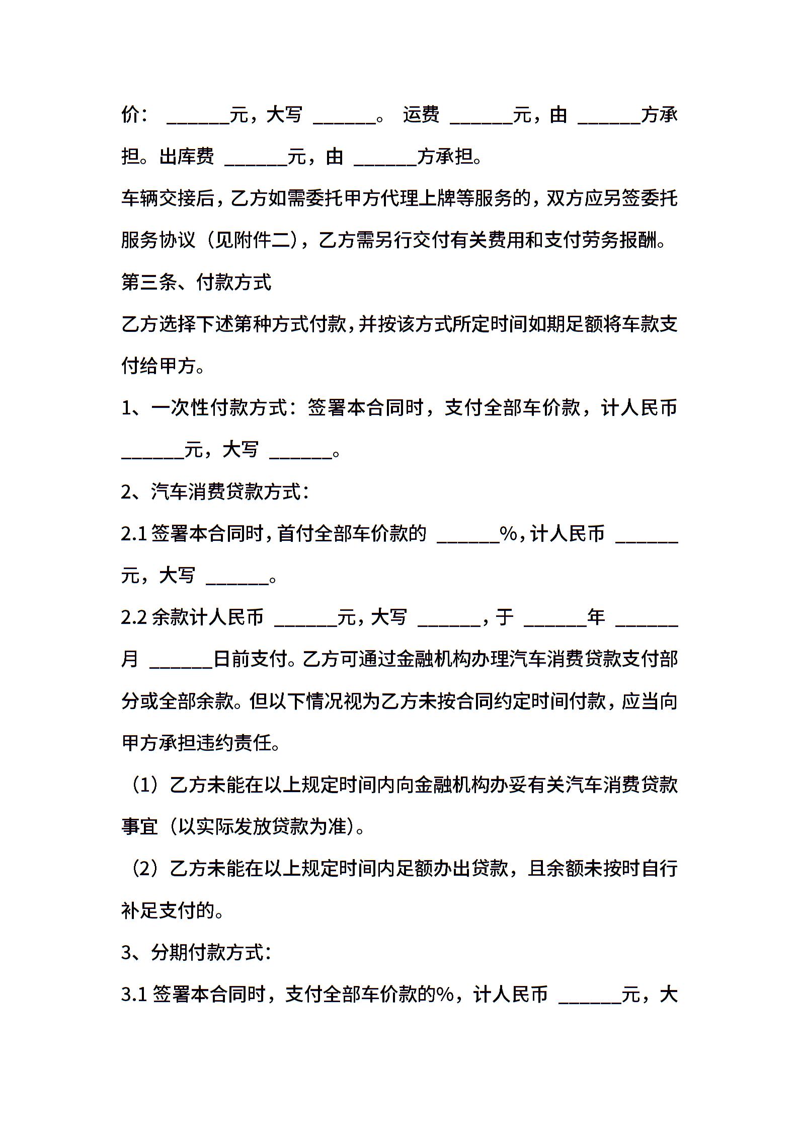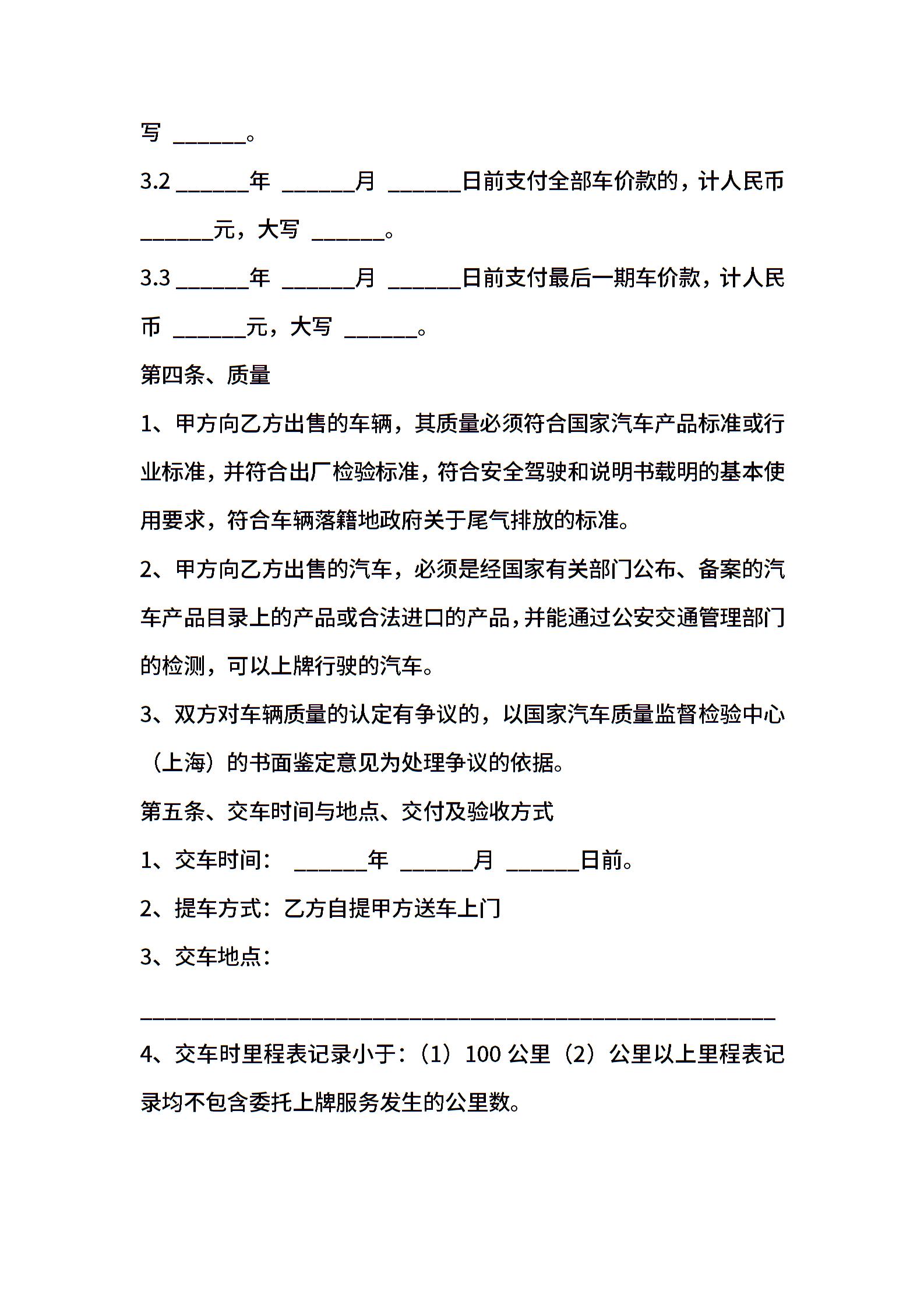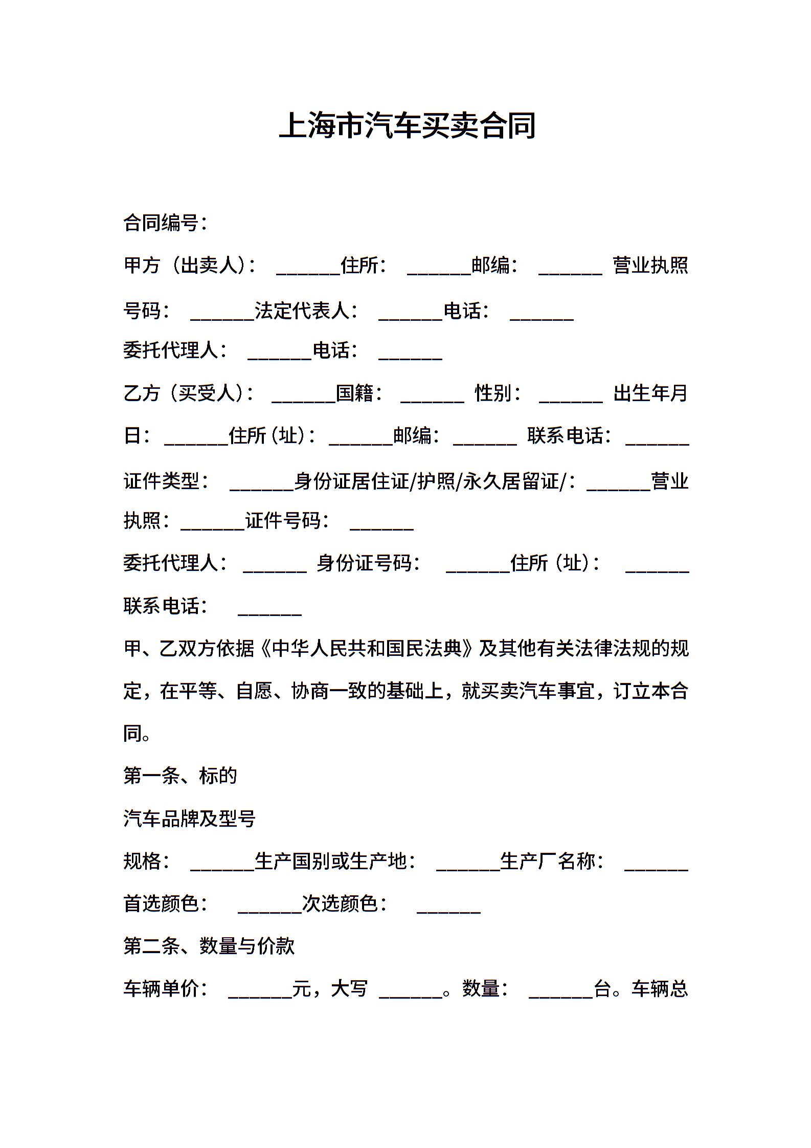 上海市汽车买卖合同