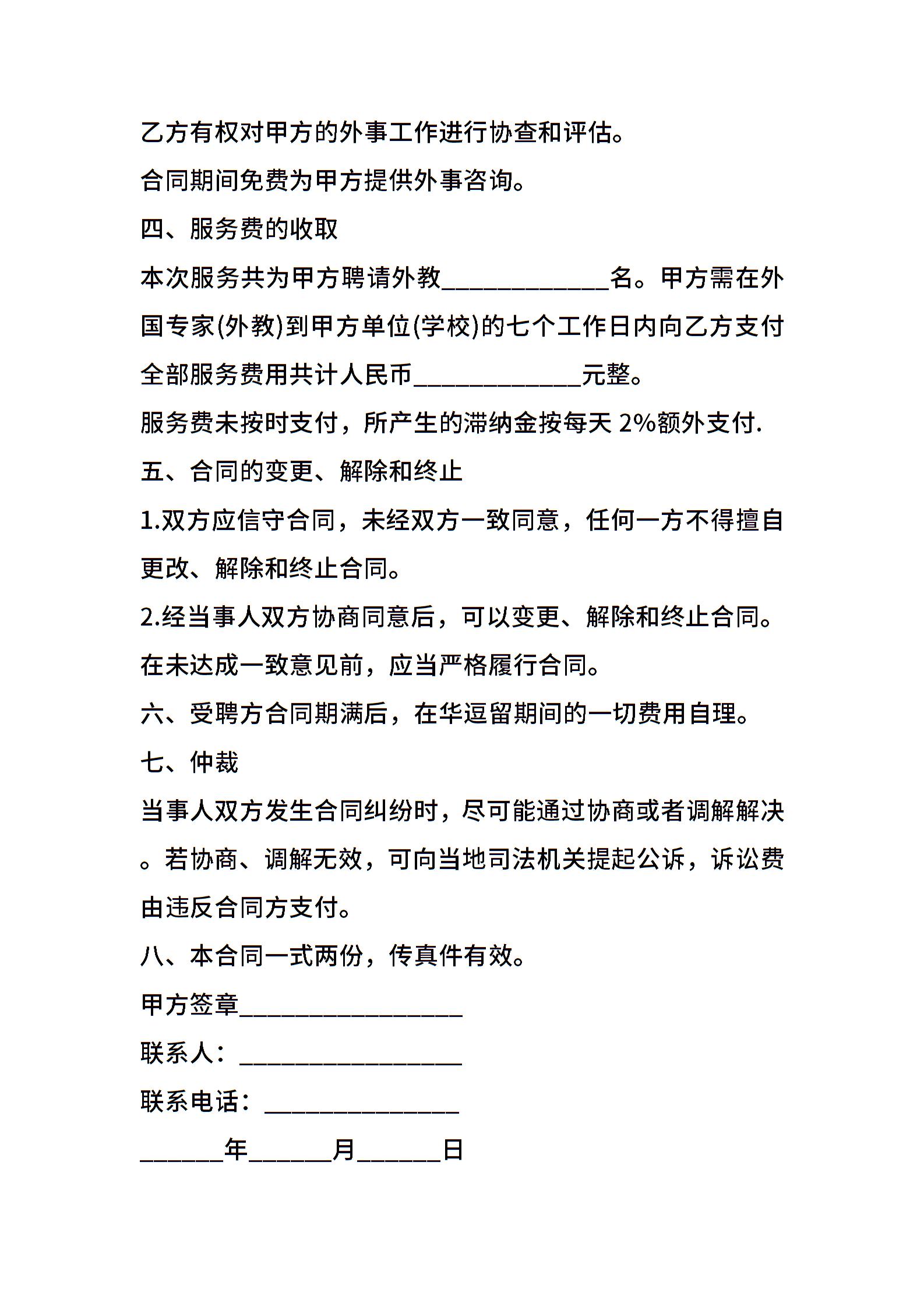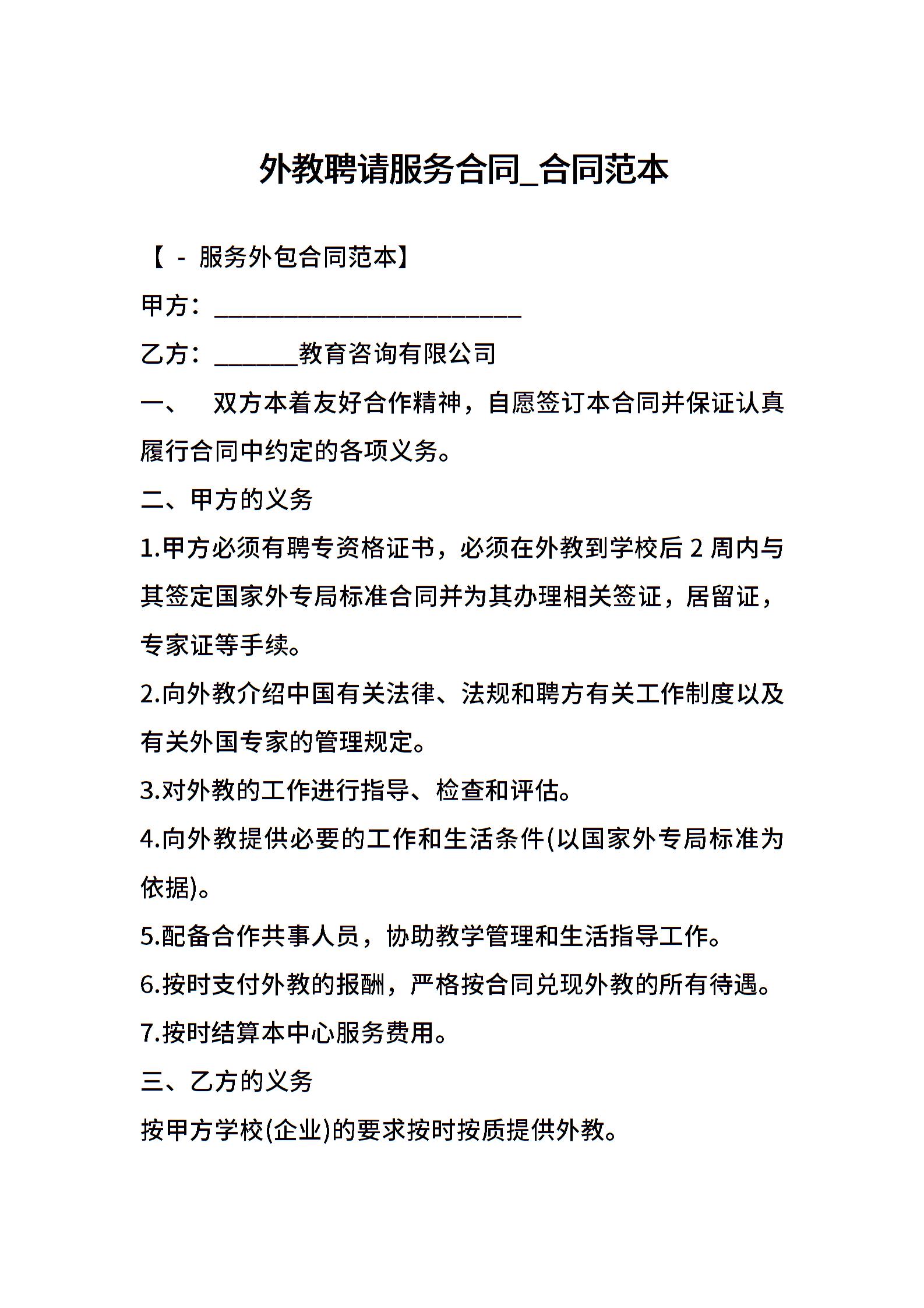 外教聘请服务合同_合同范本