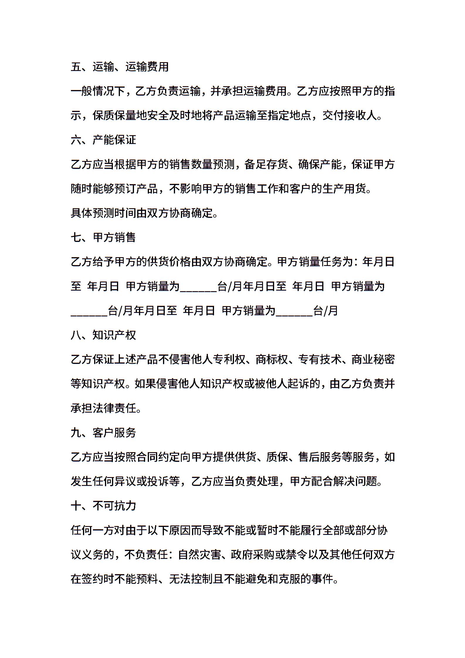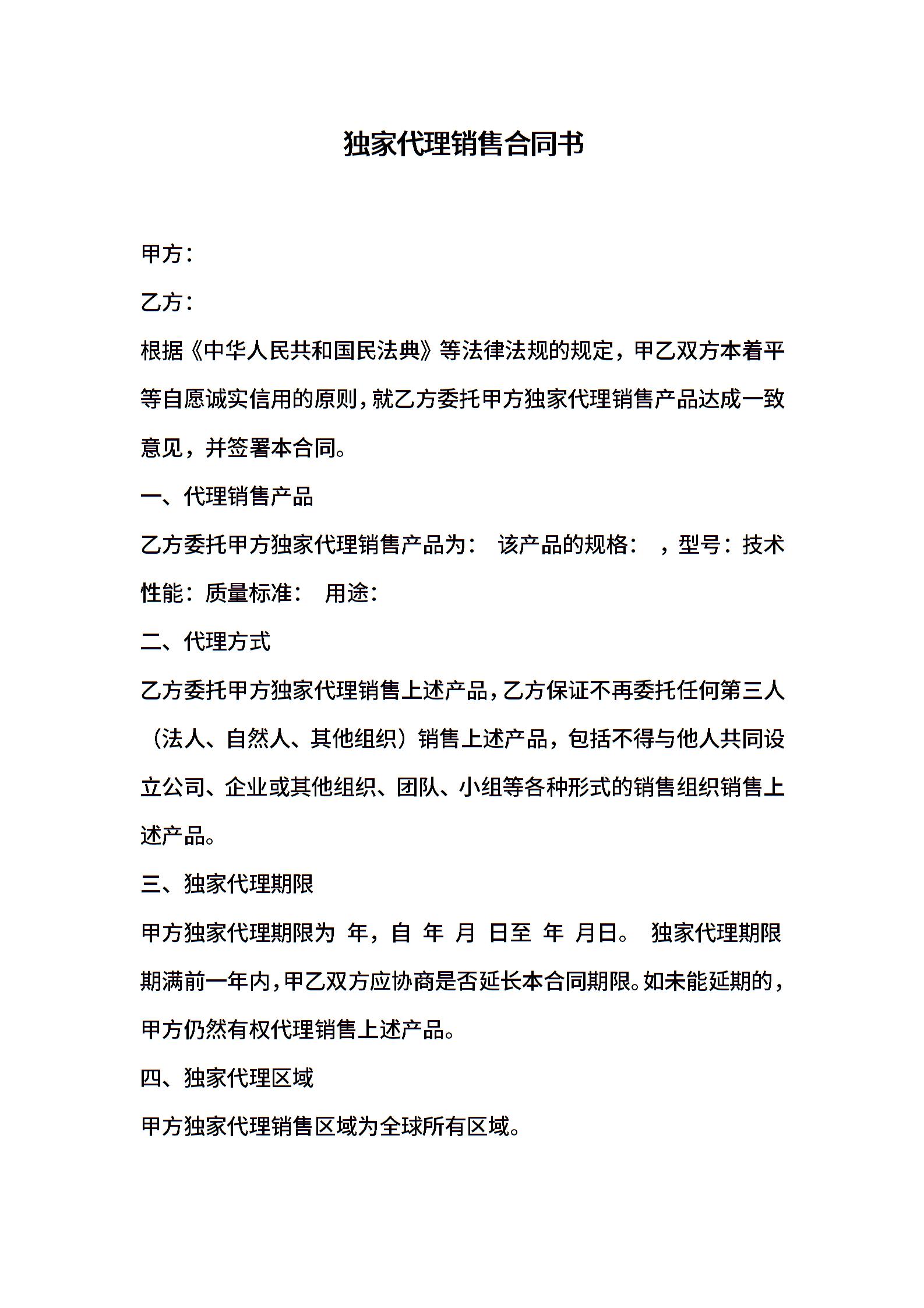 独家代理销售合同书
