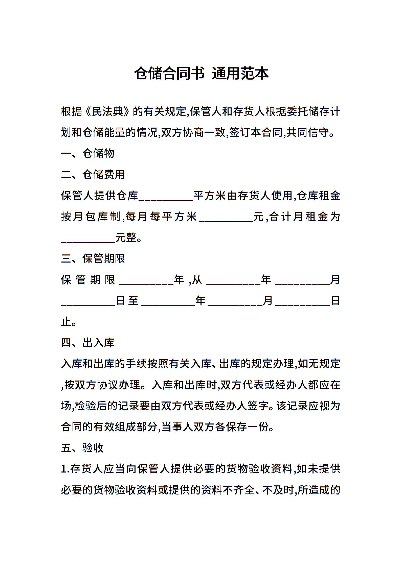 仓储合同书 通用范本