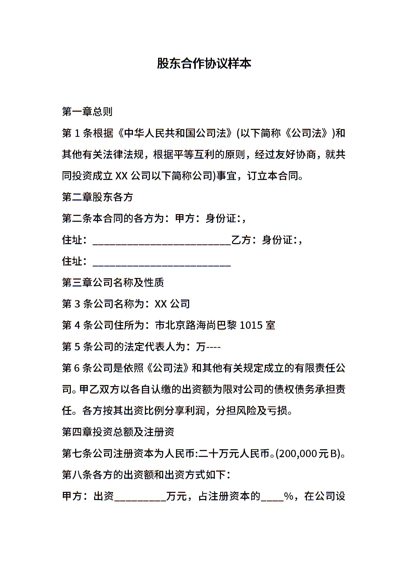 股东合作协议样本