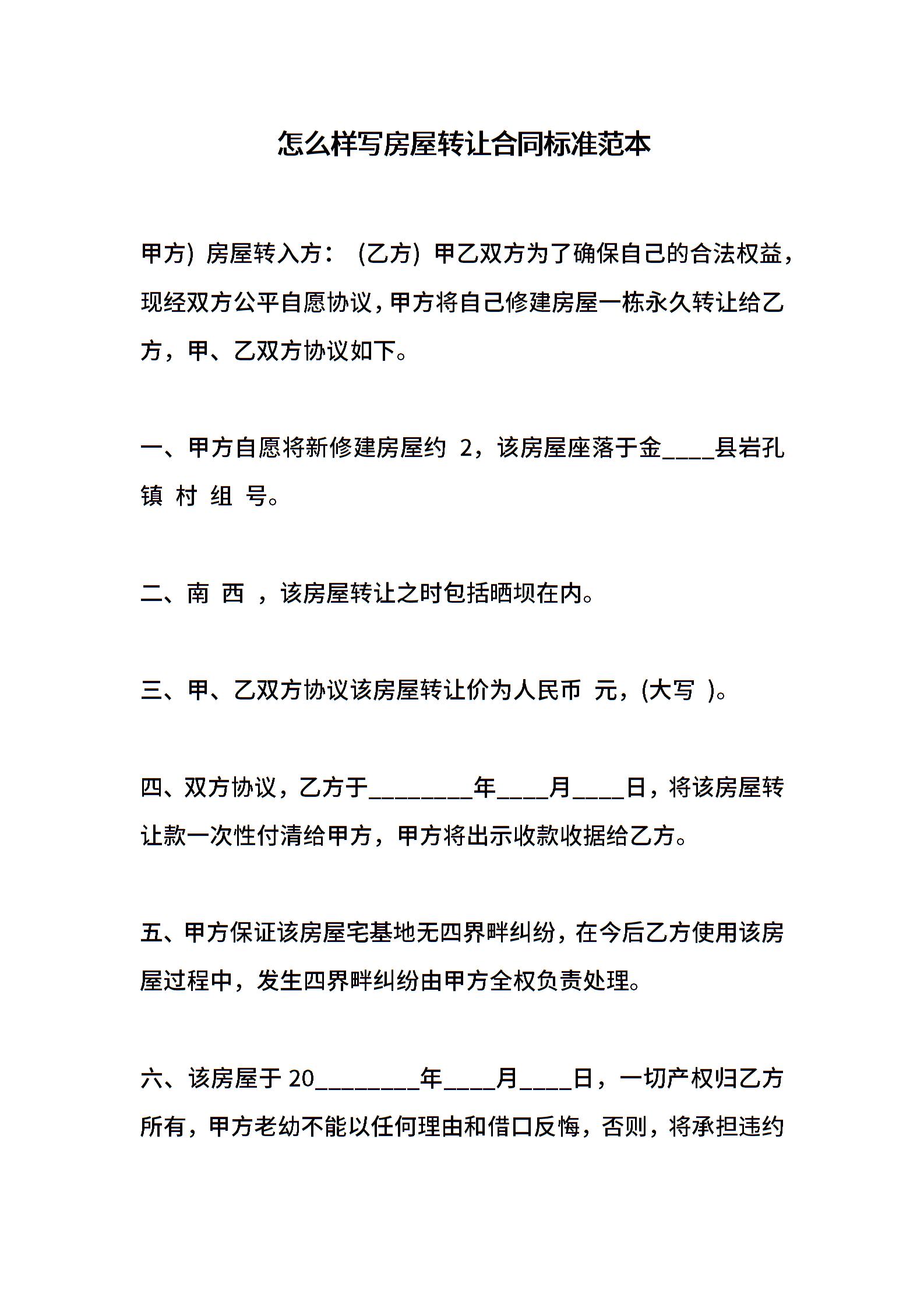 怎么样写房屋转让合同标准范本