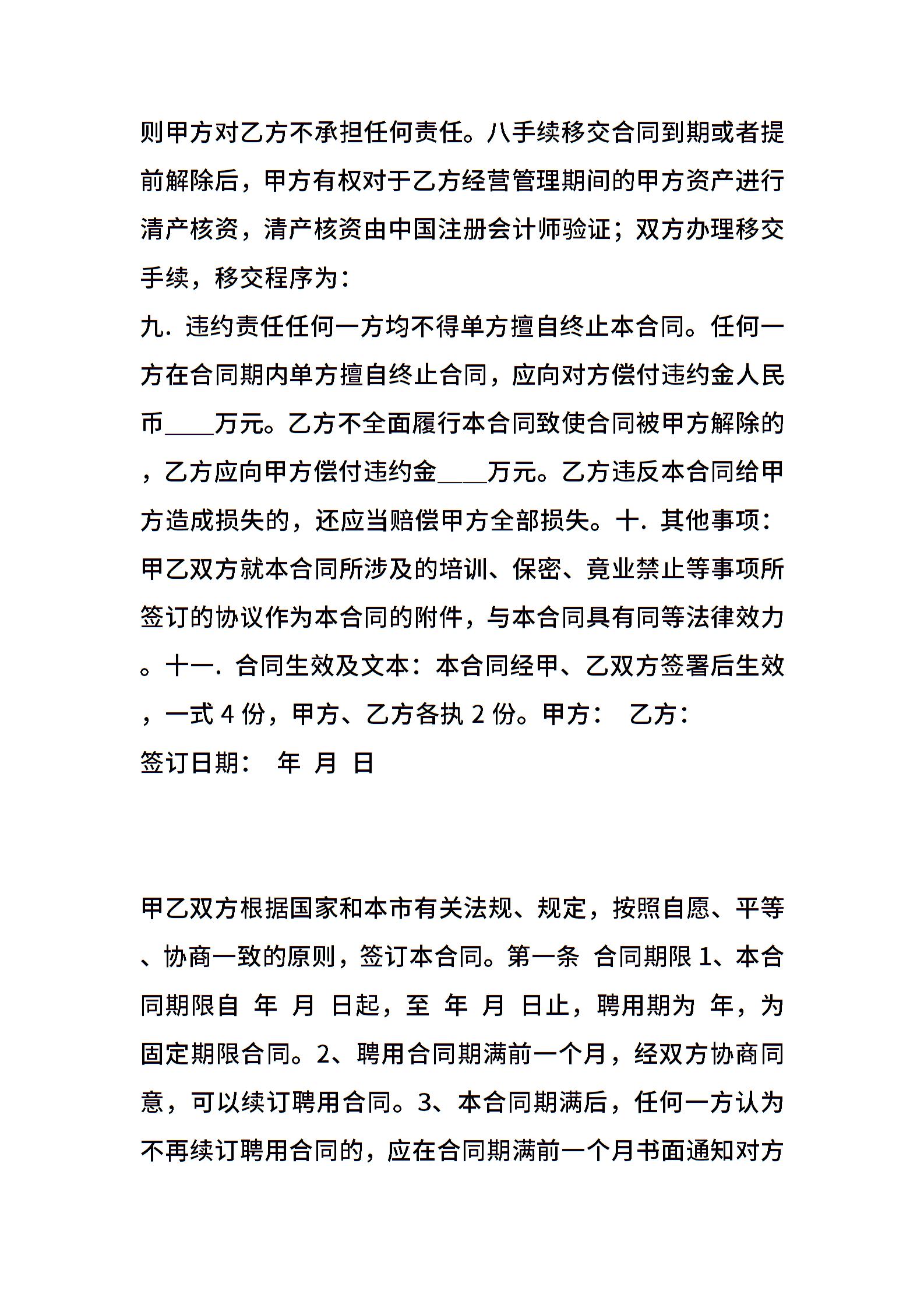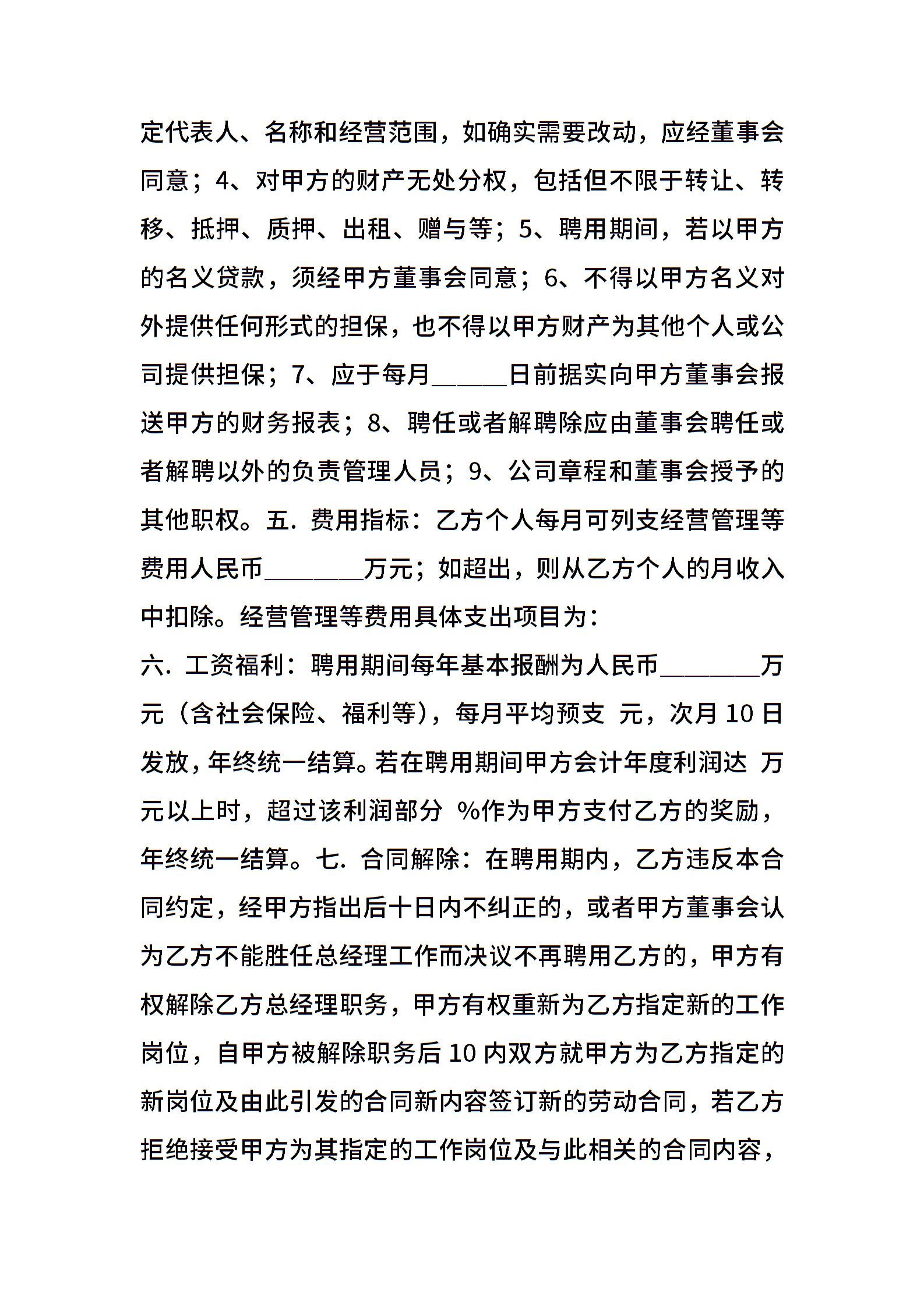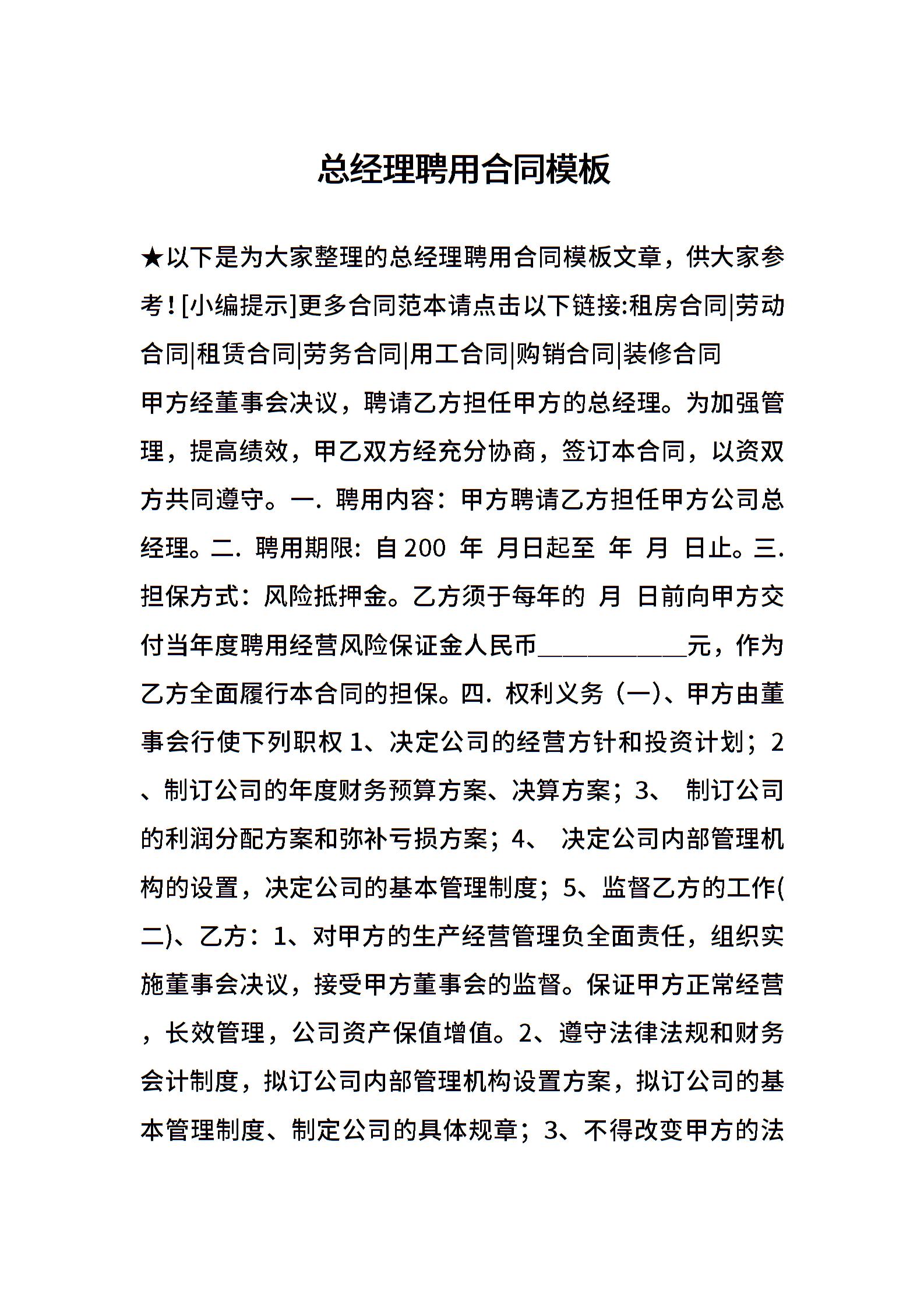 总经理聘用合同模板