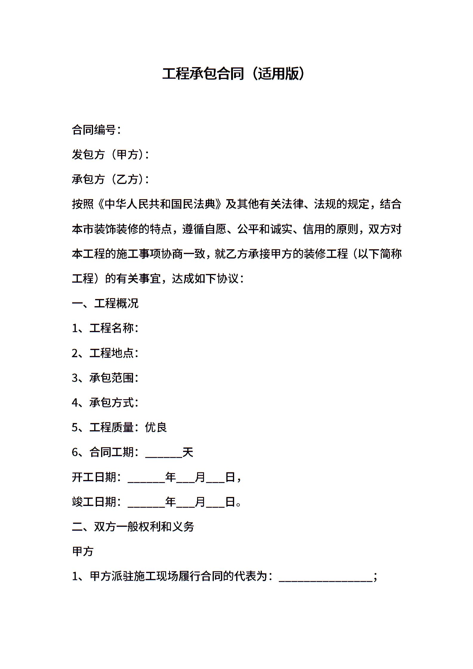 工程承包合同(适用版)