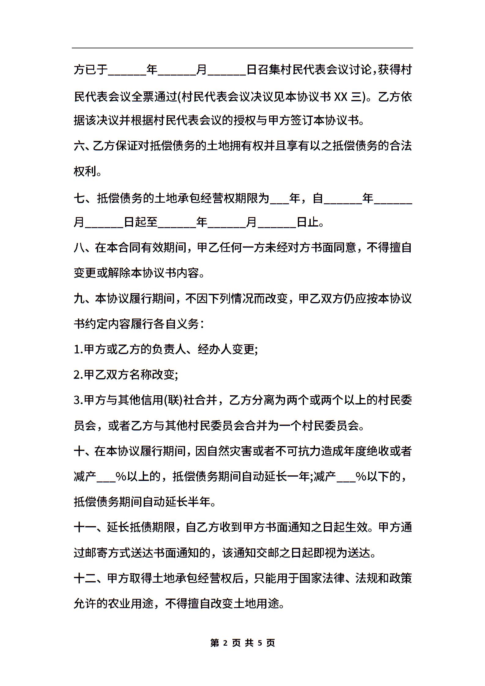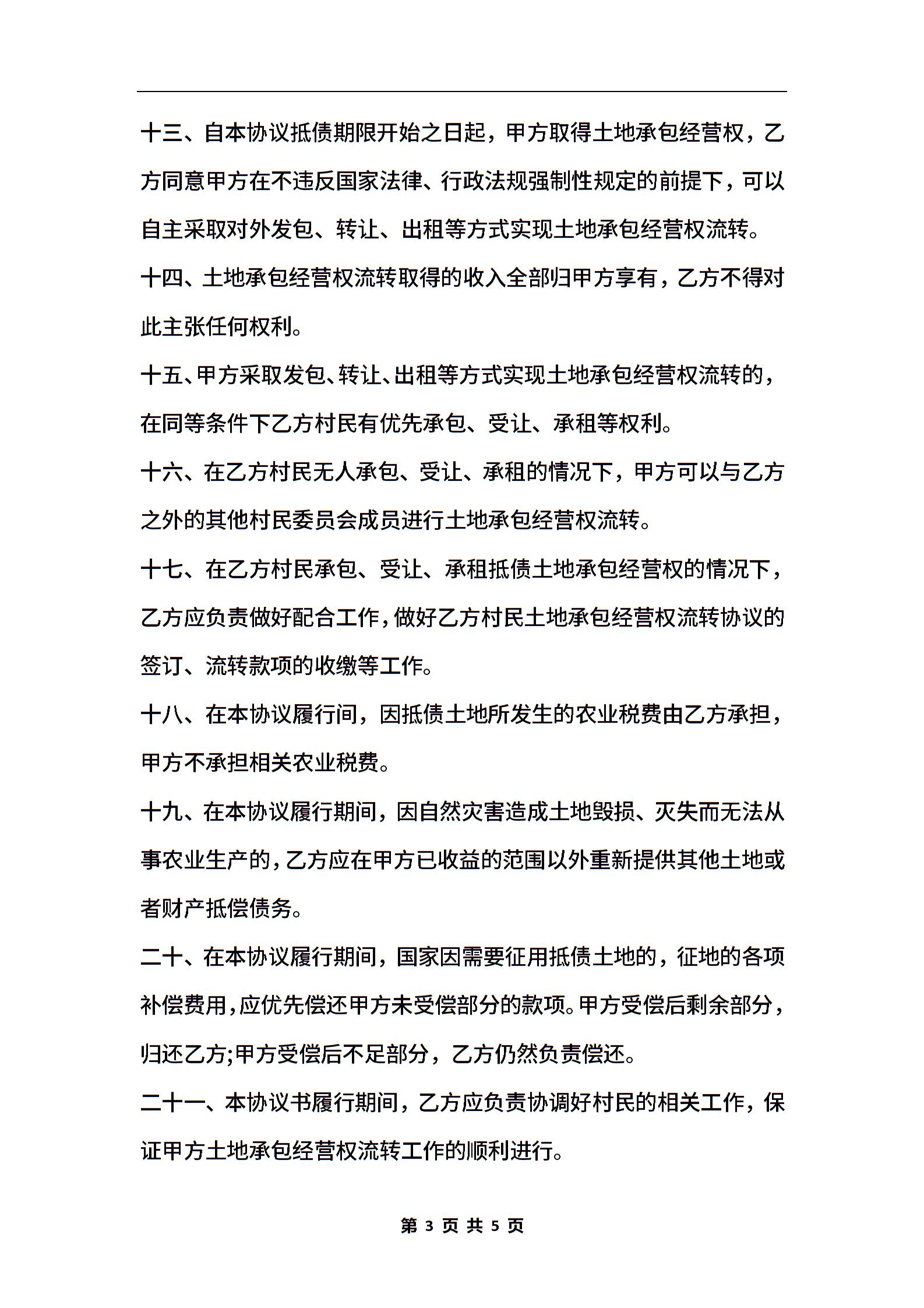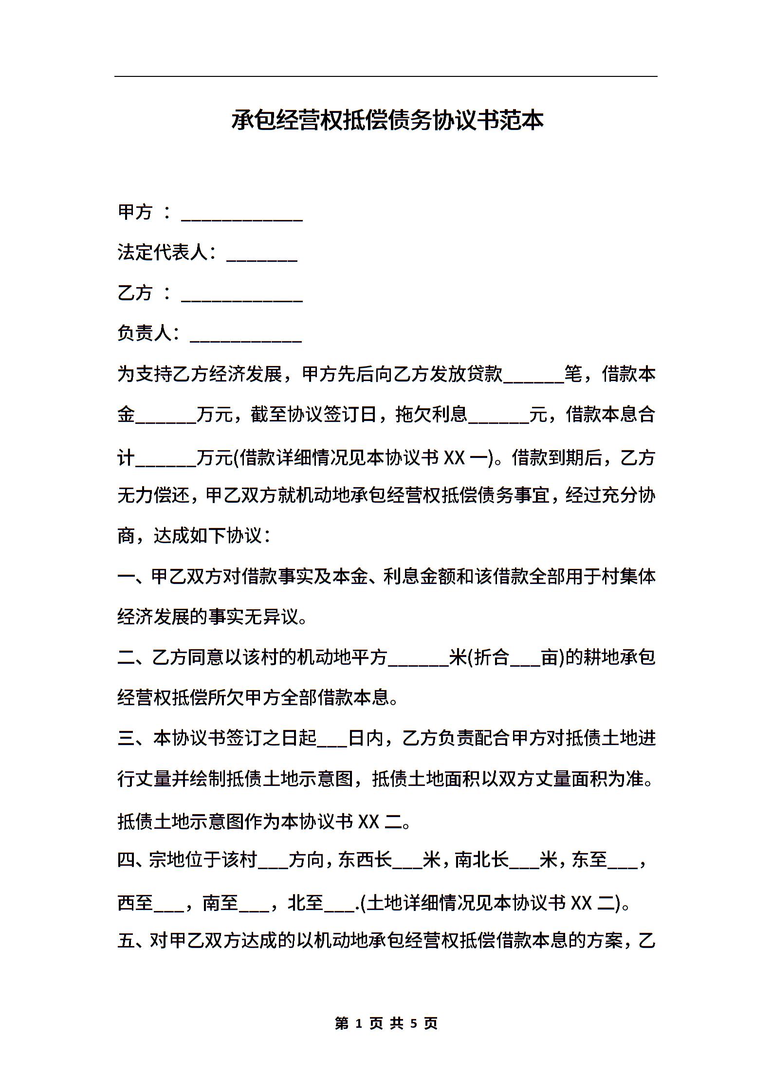 承包经营权抵偿债务协议书范本