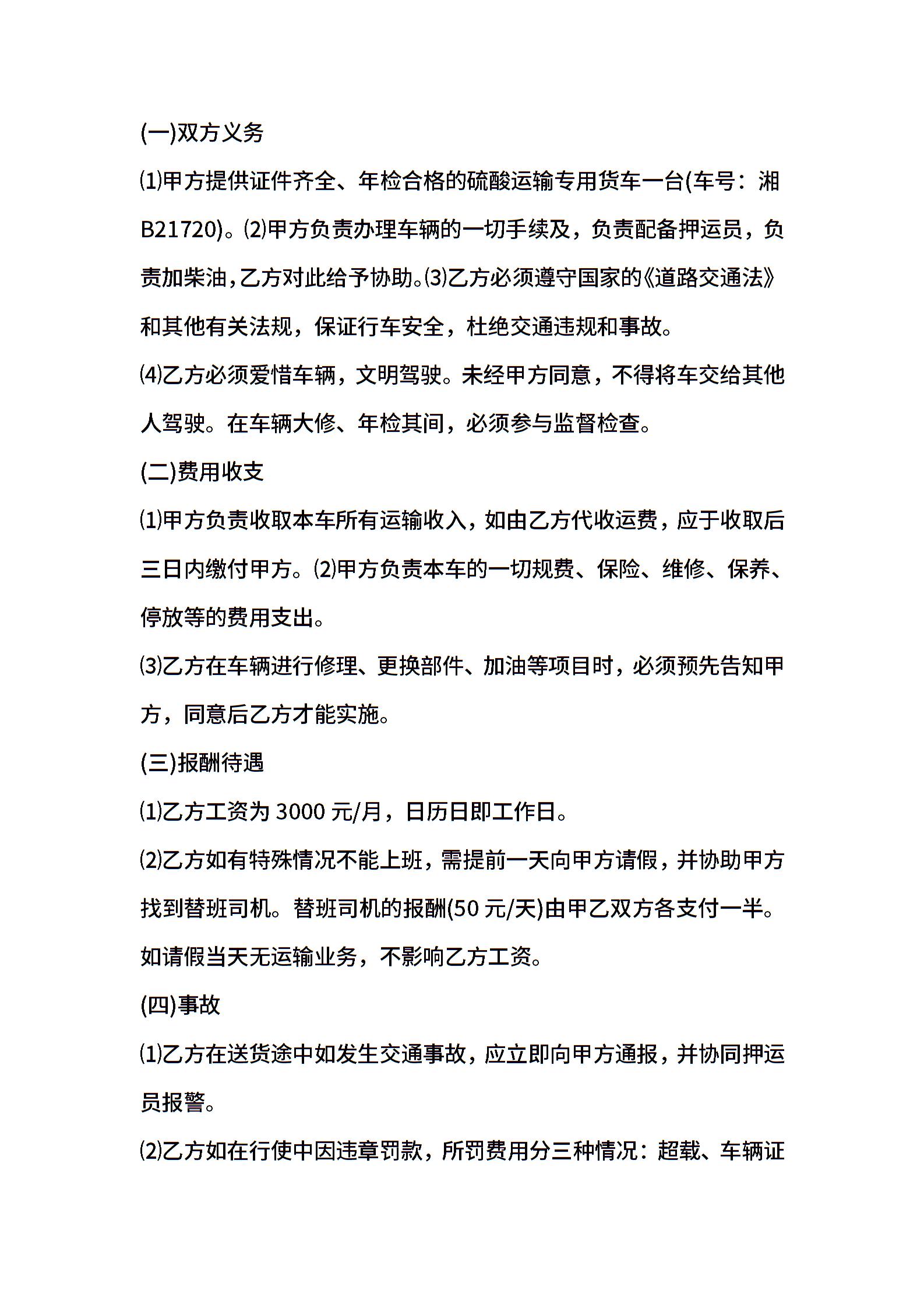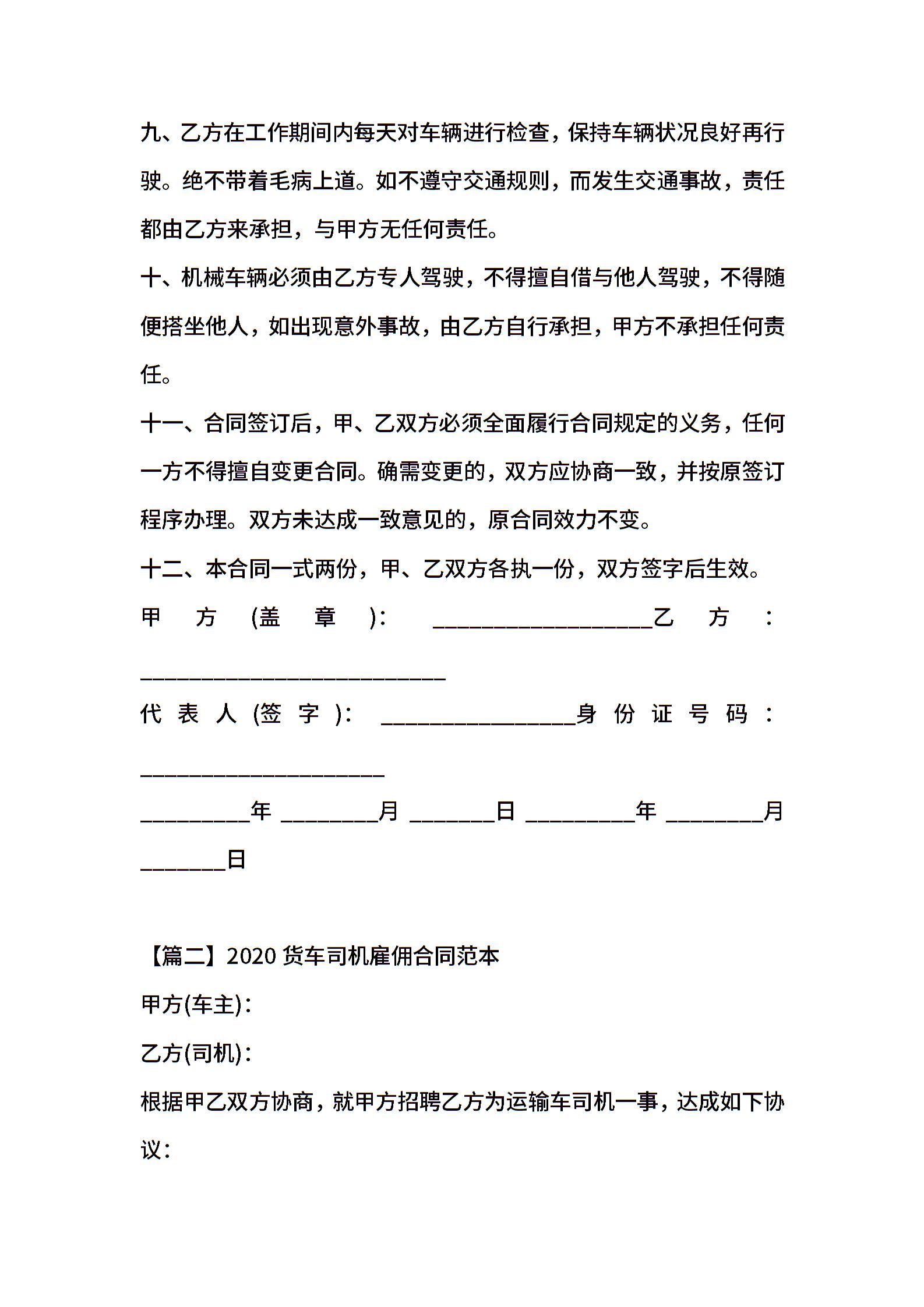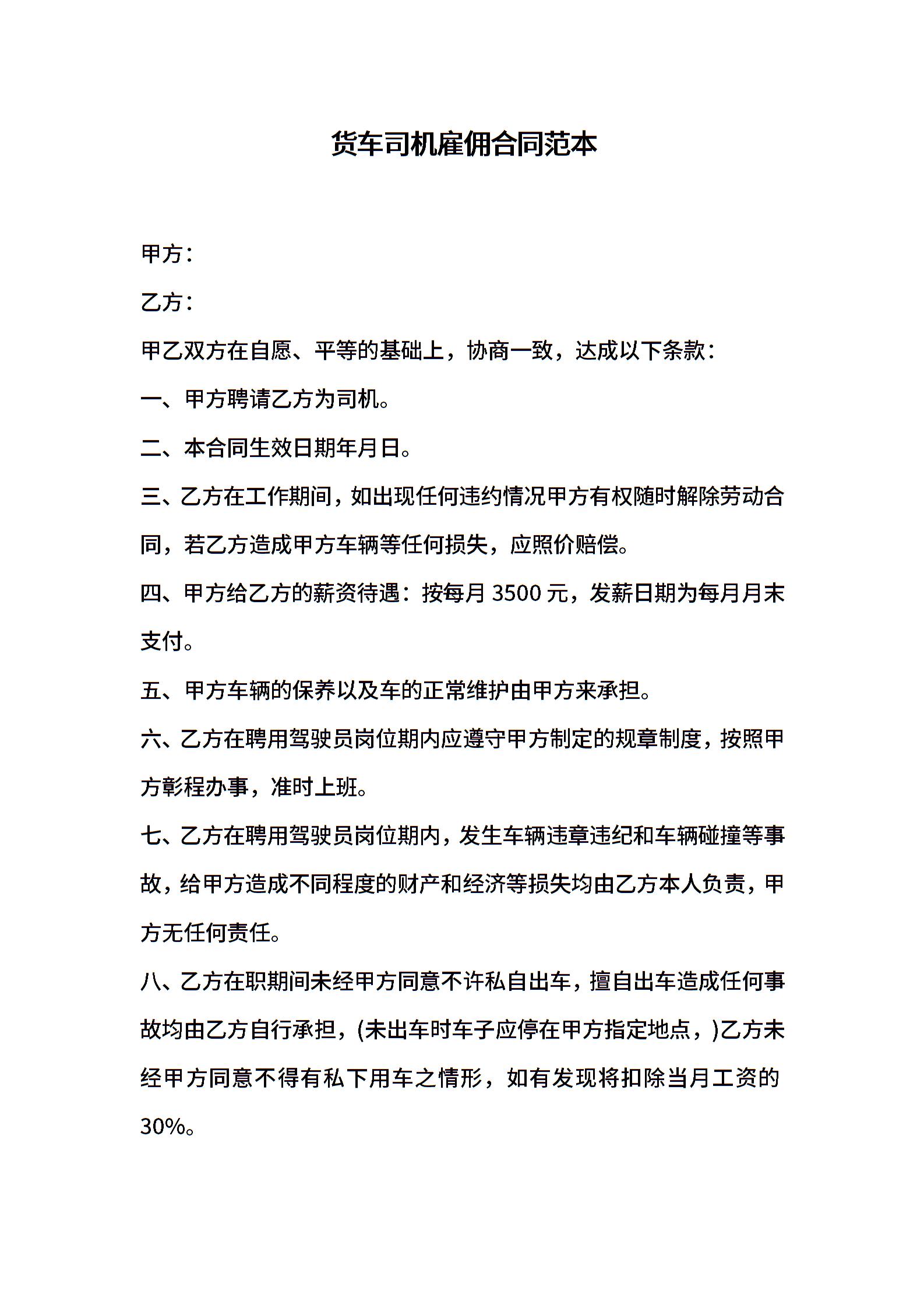 货车司机雇佣合同范本