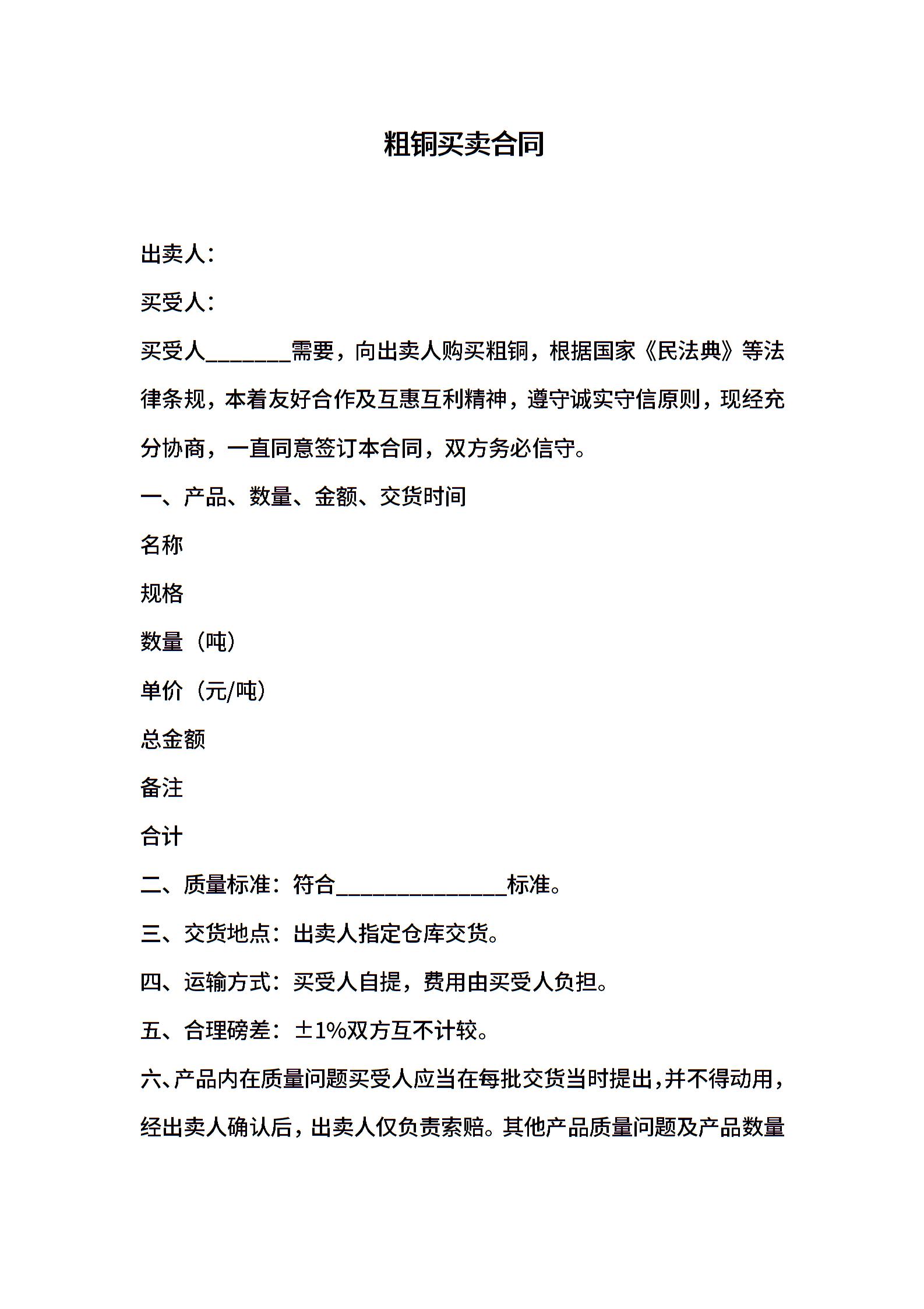 粗铜买卖合同
