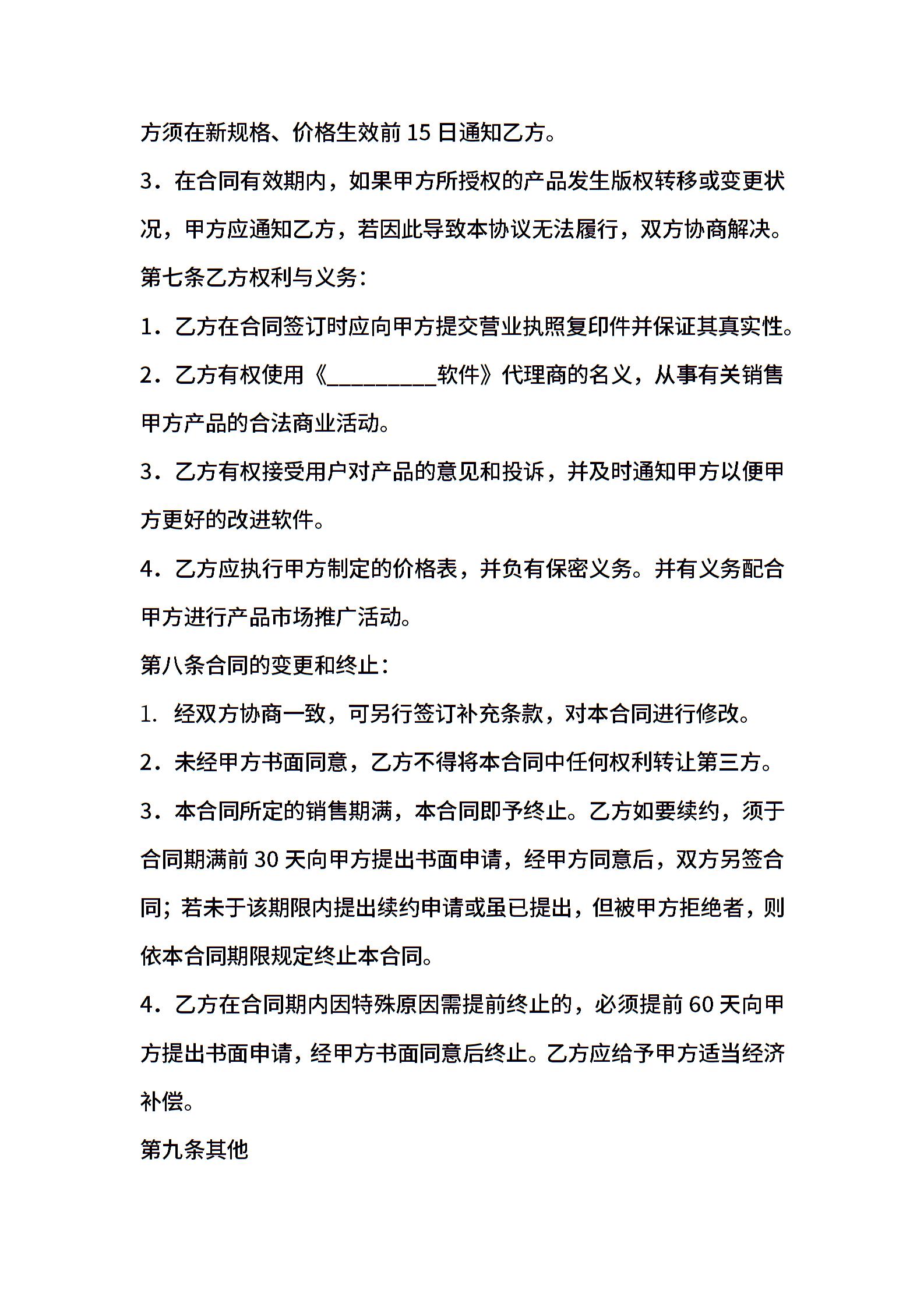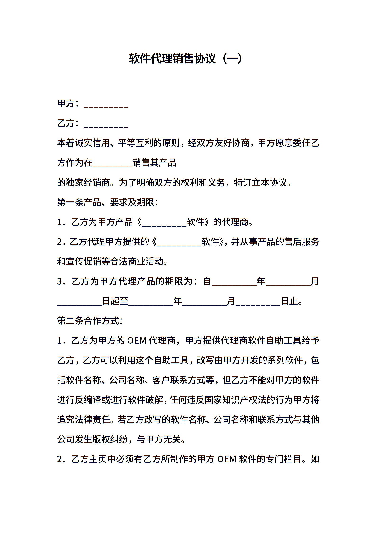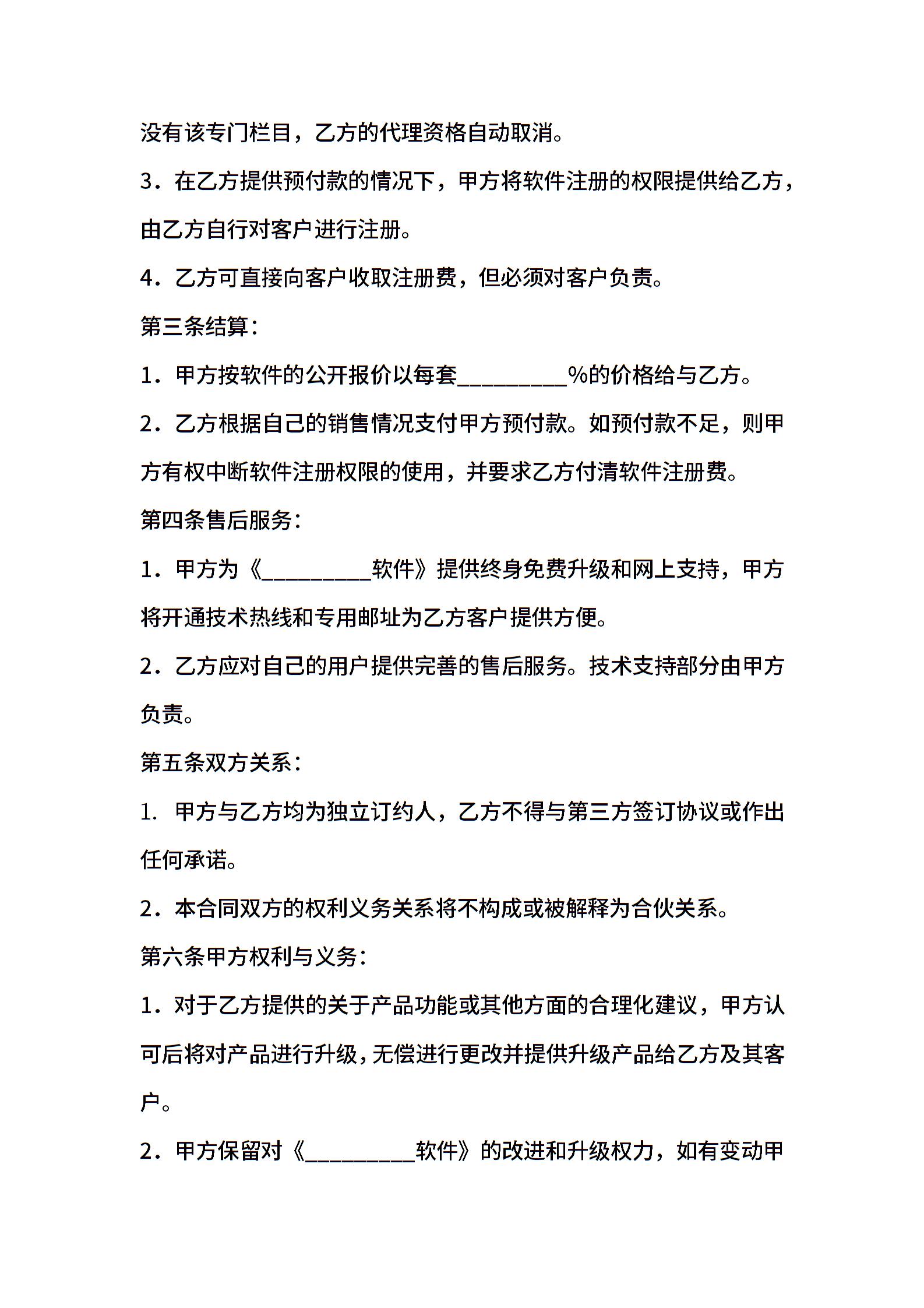 软件销售代理协议大全