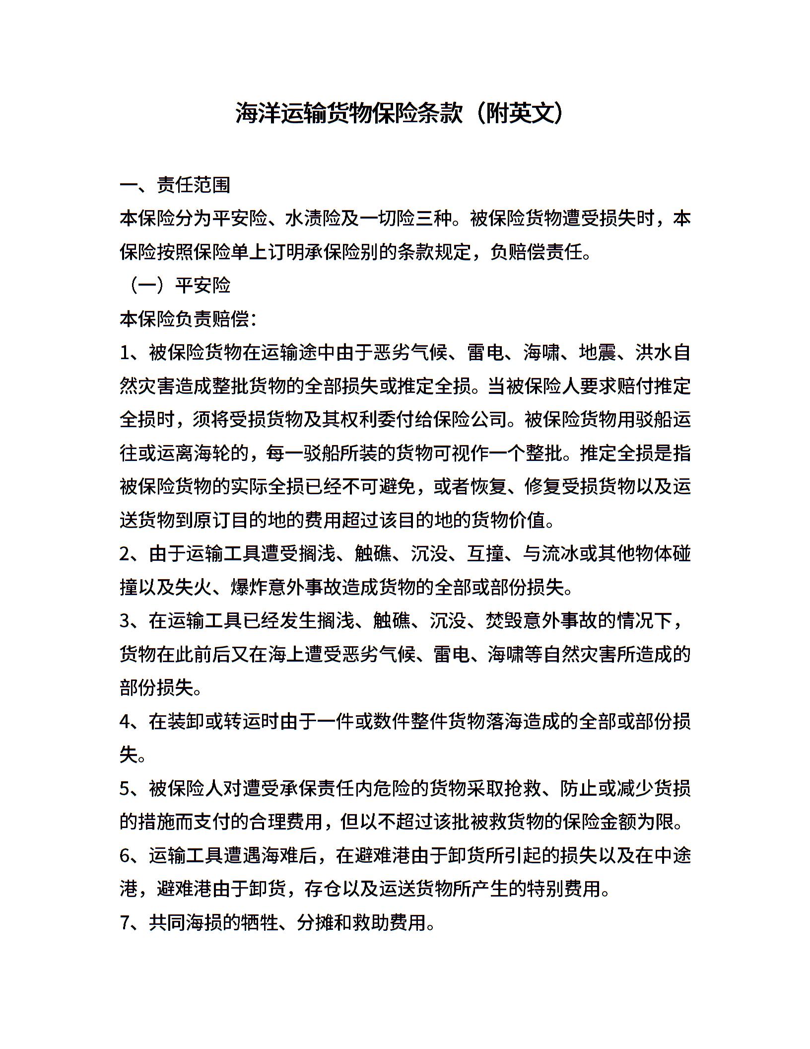 海洋运输货物保险条款(附英文)
