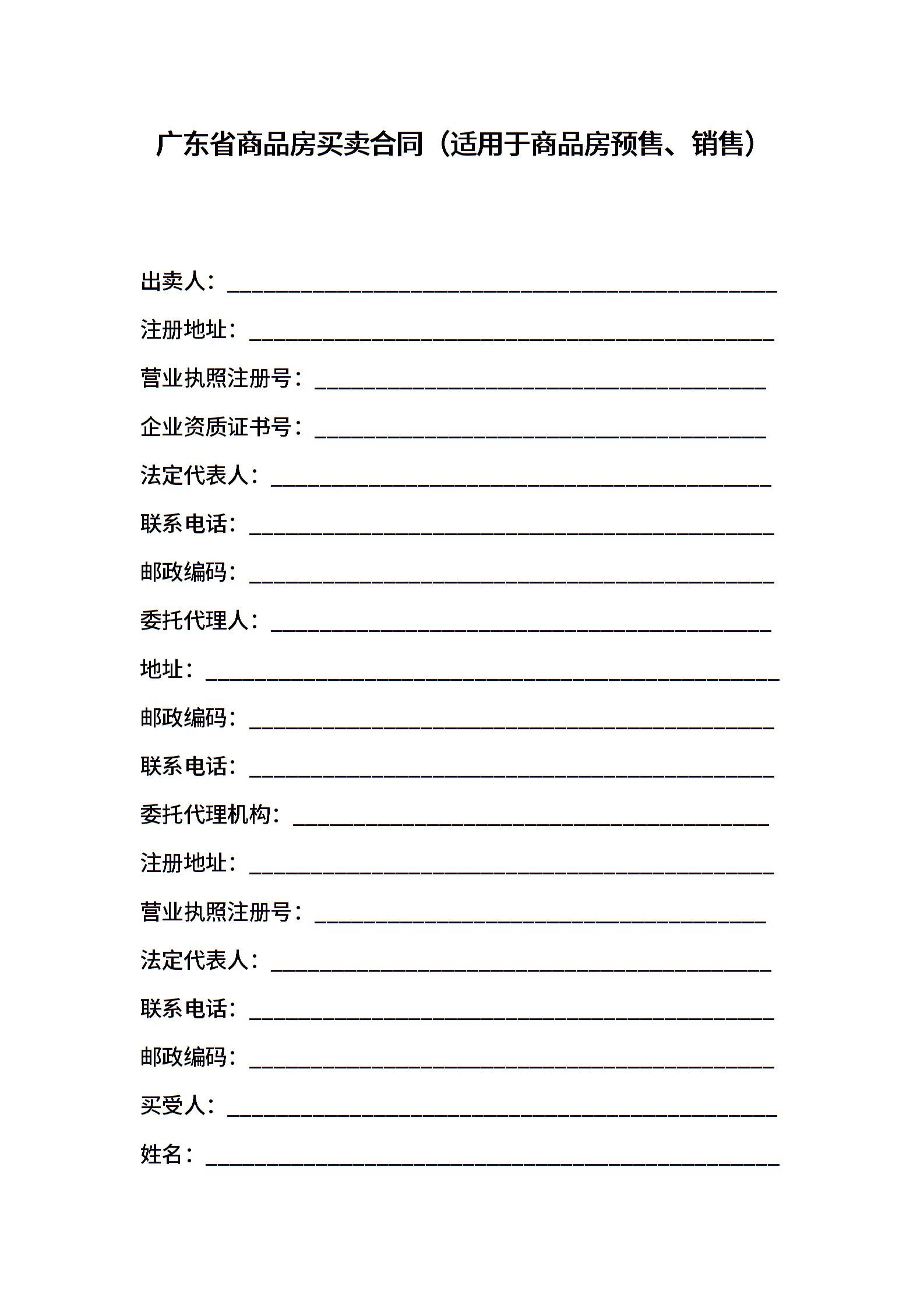 广东省商品房买卖合同(适用于商品房预售、销售)