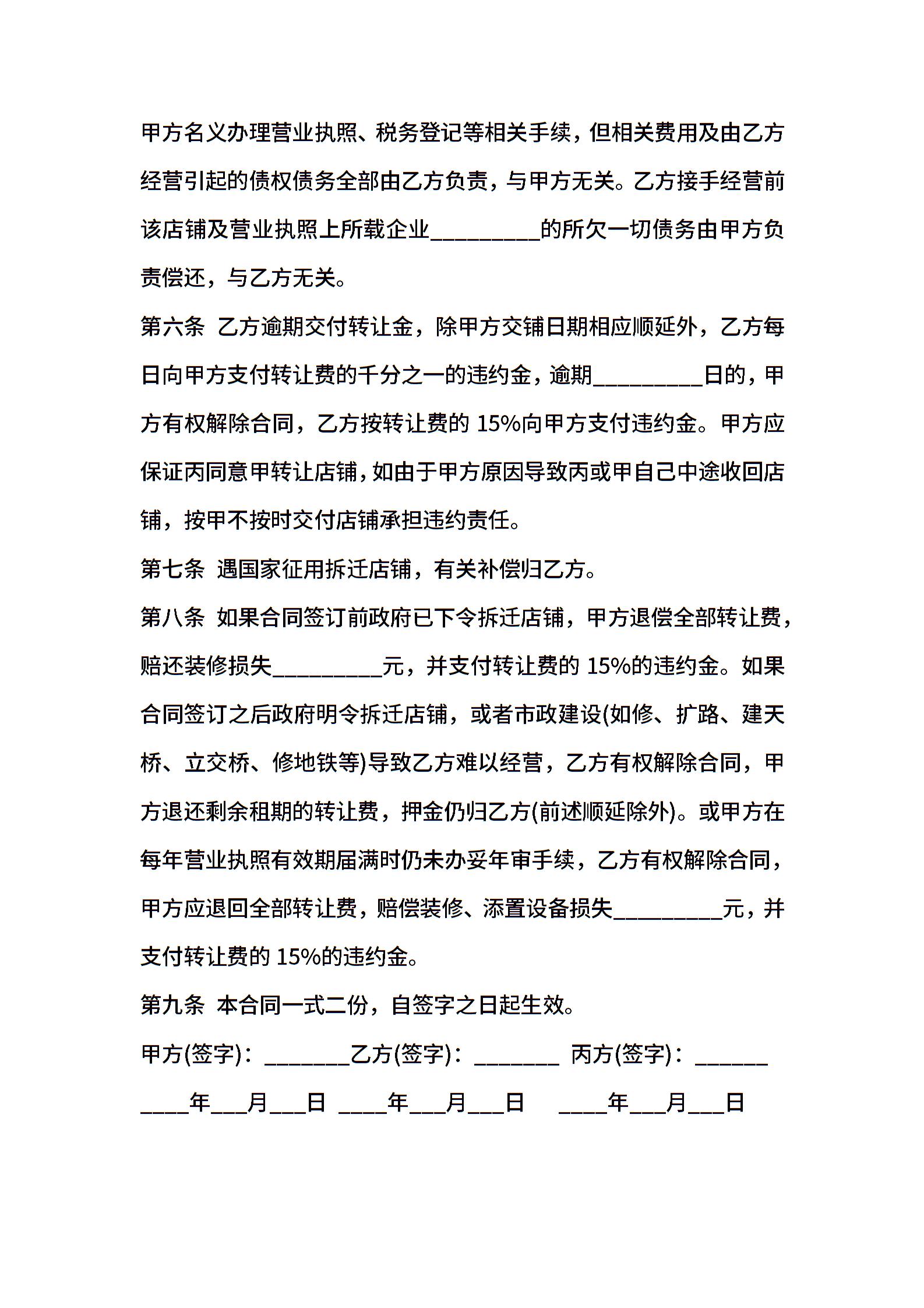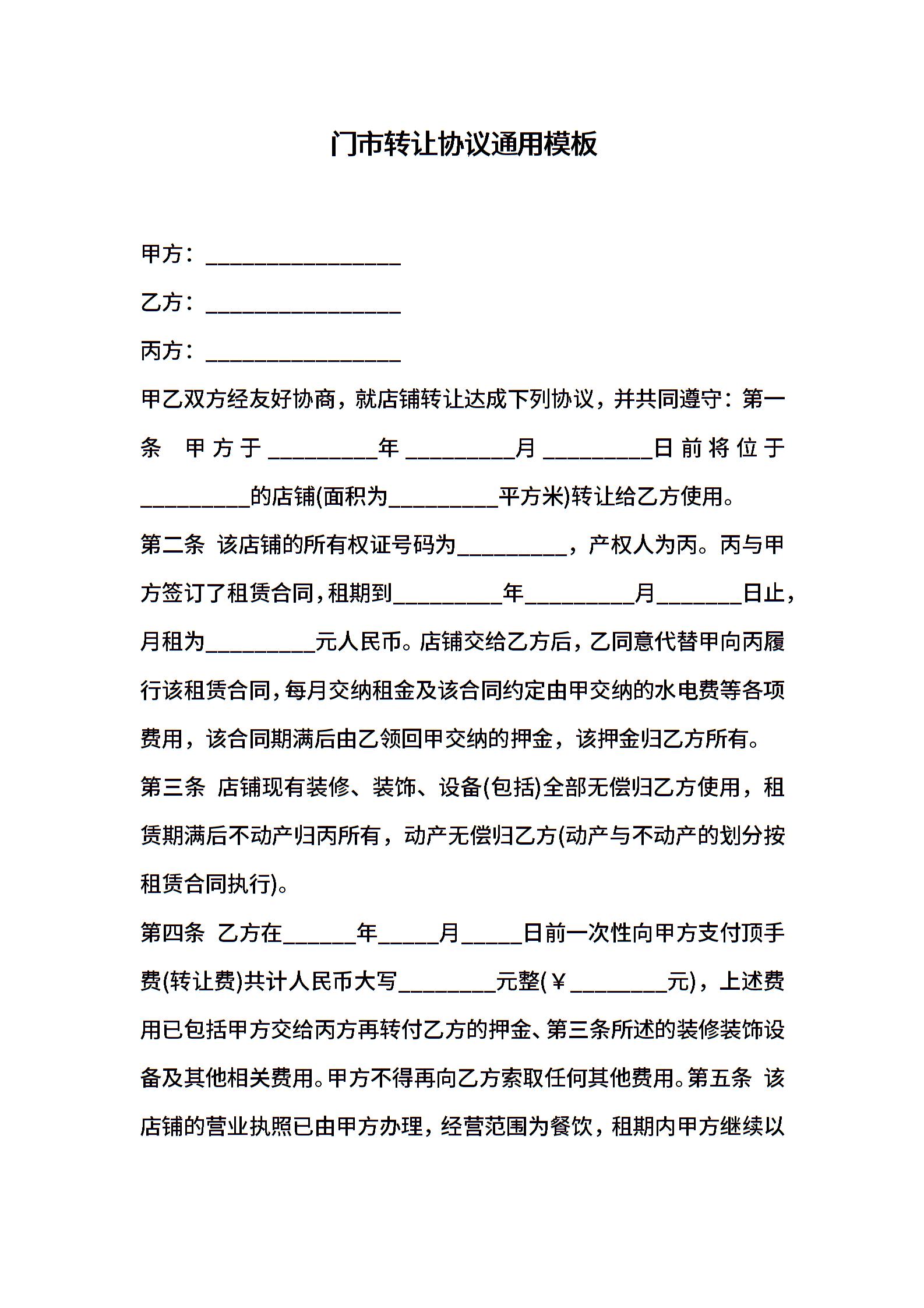 门市转让协议通用模板