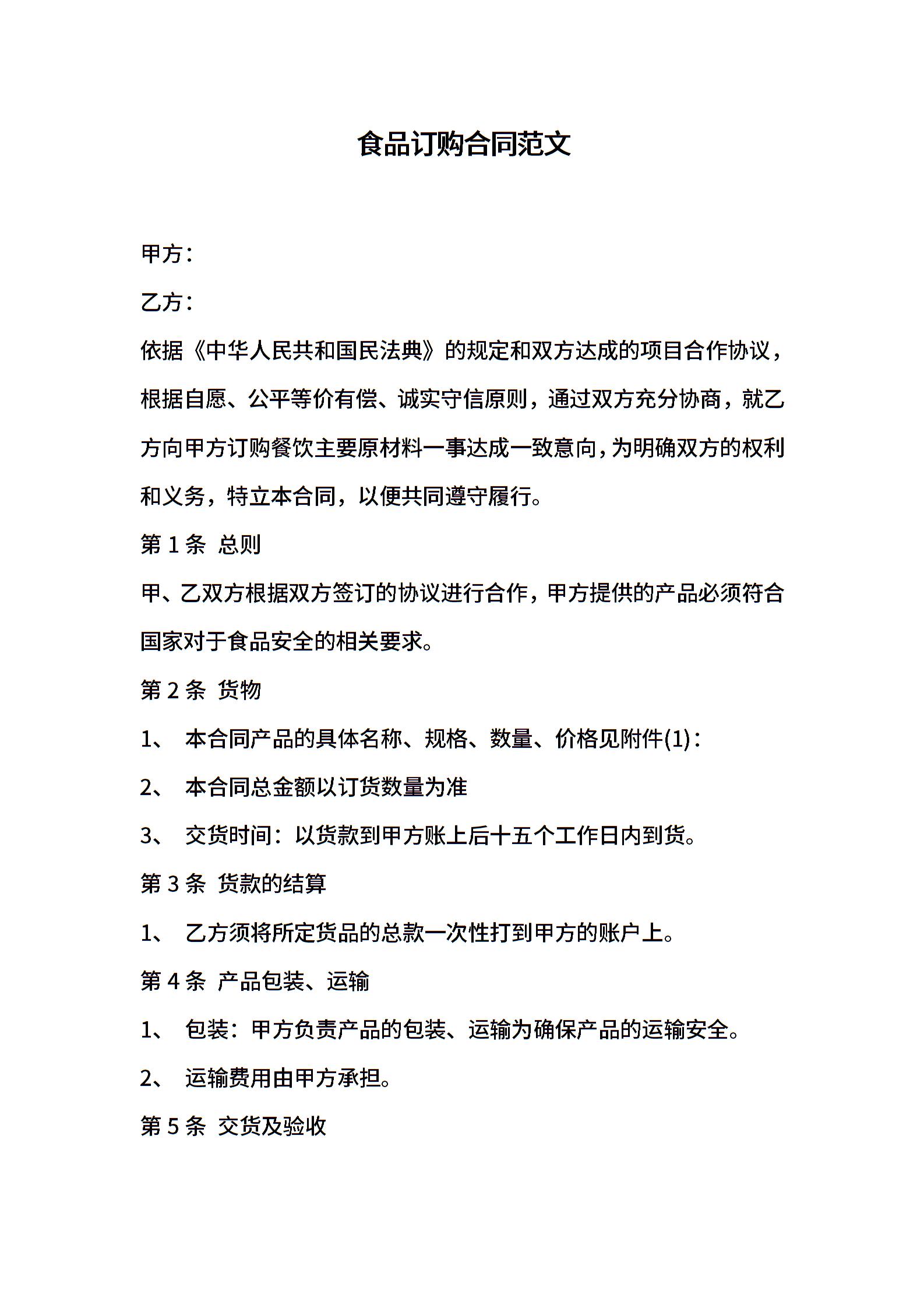 食品订购合同范文