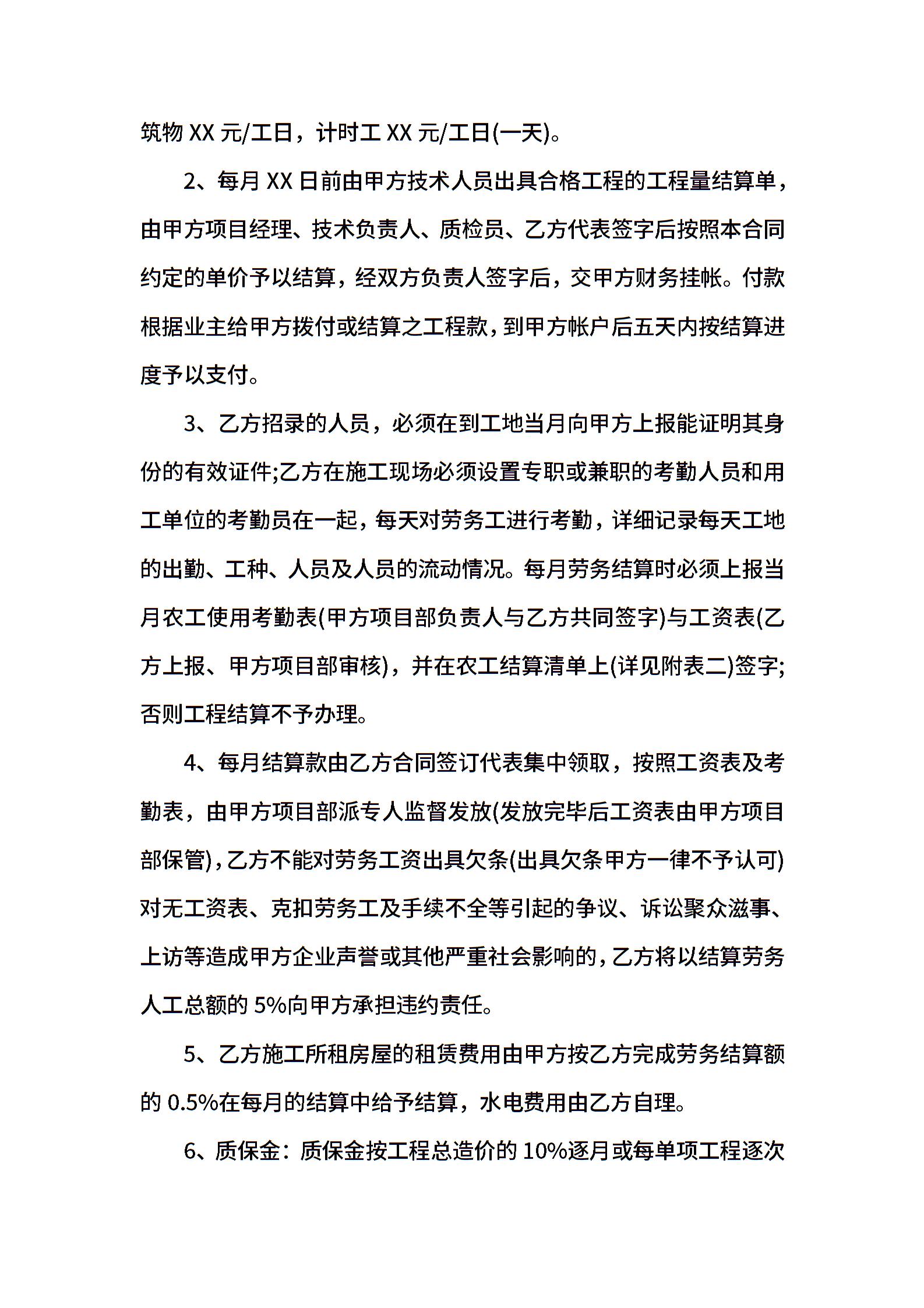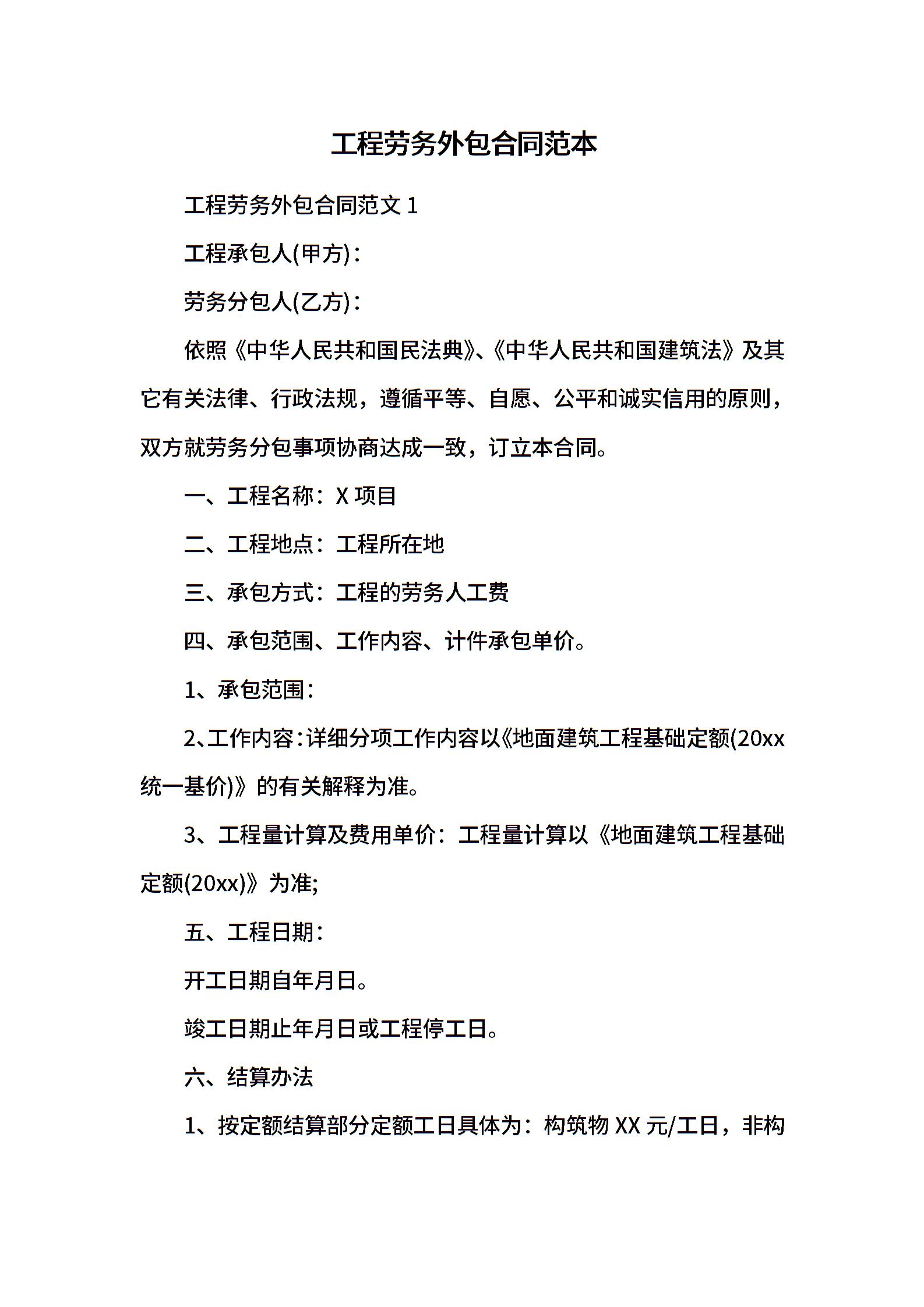工程劳务外包合同范本