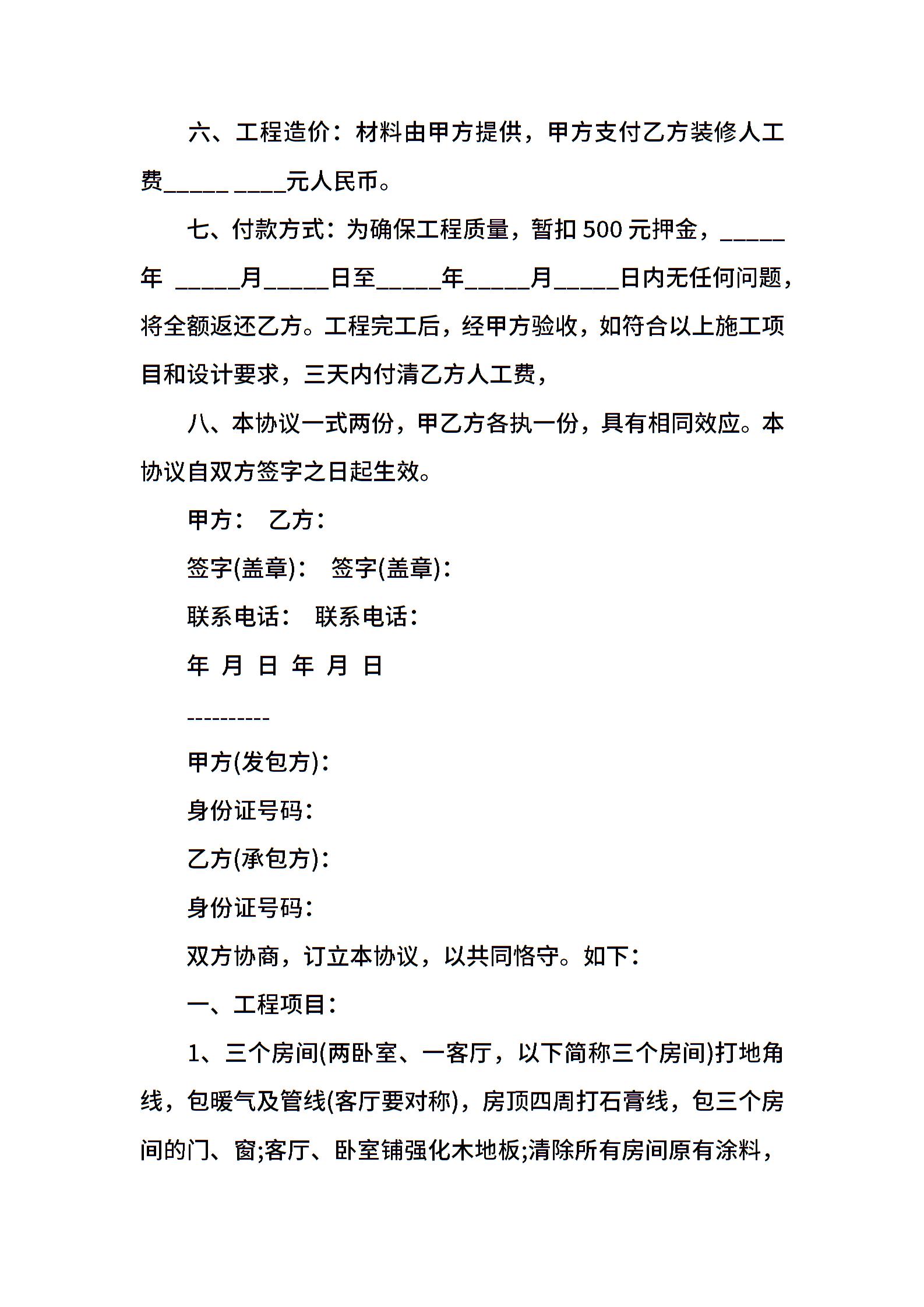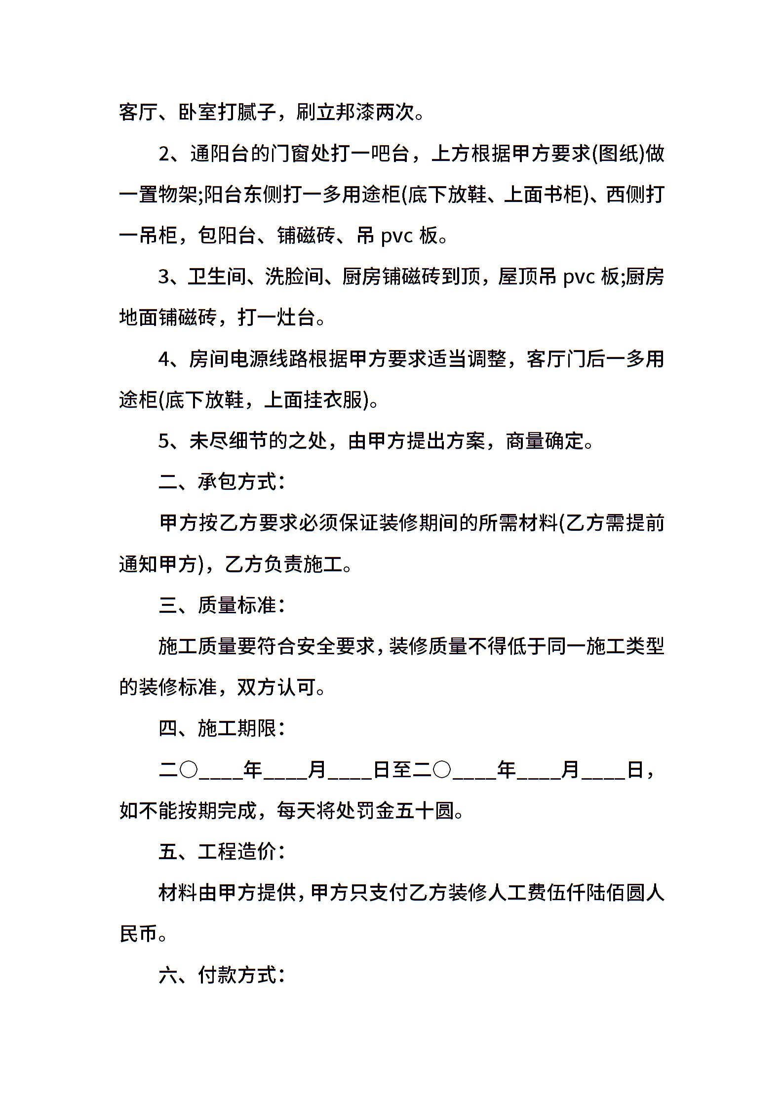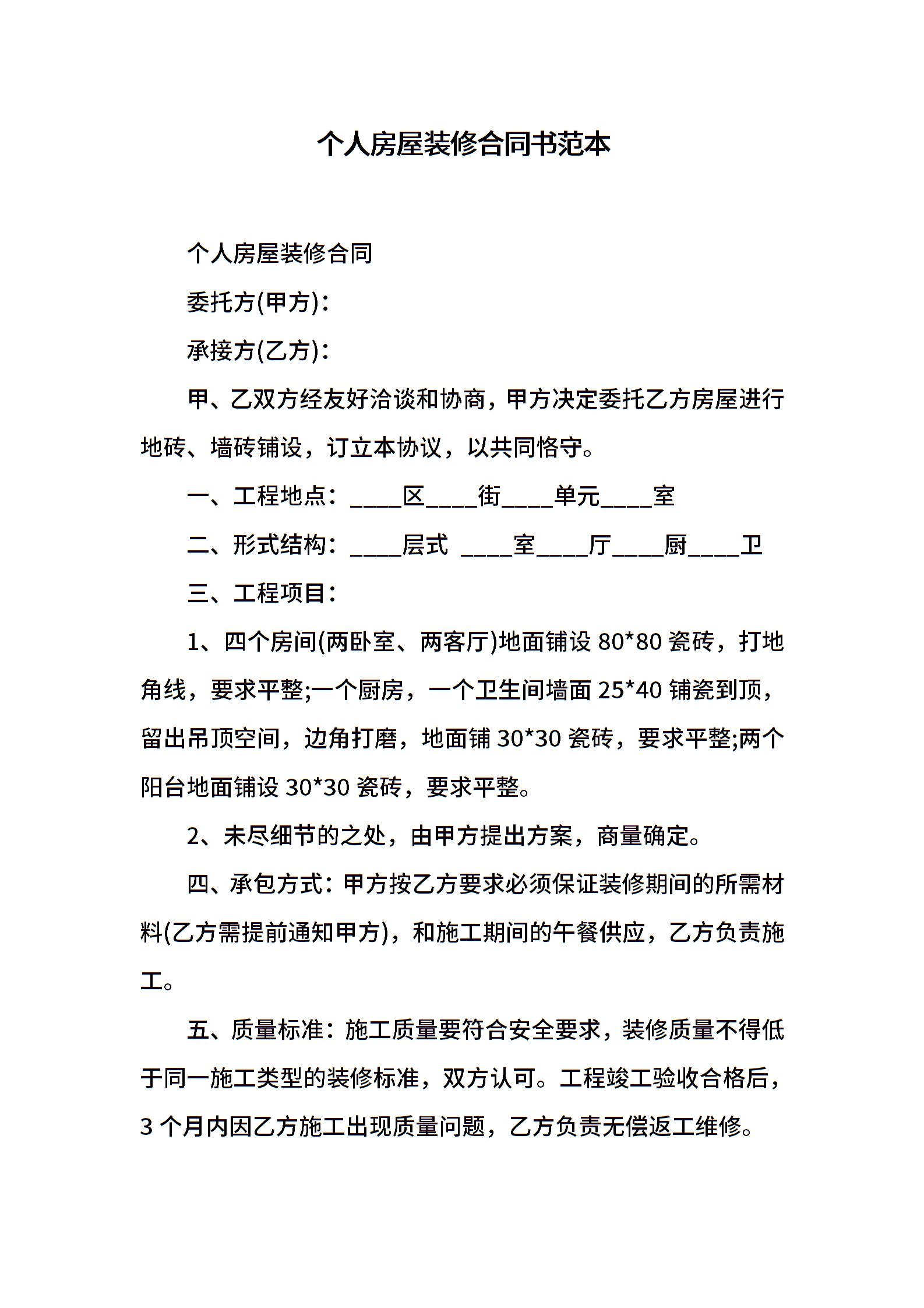 个人房屋装修合同书范本