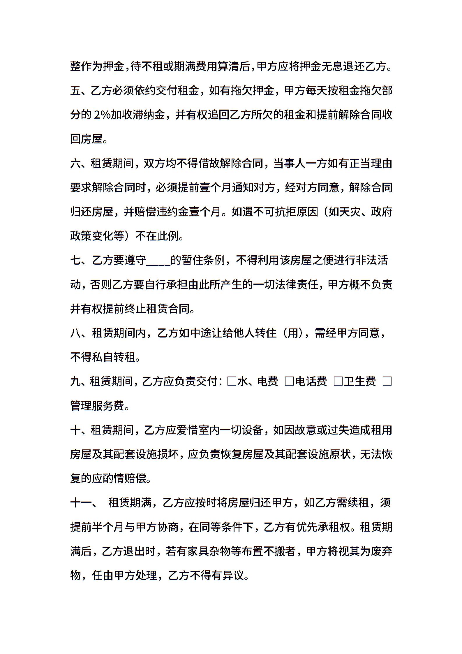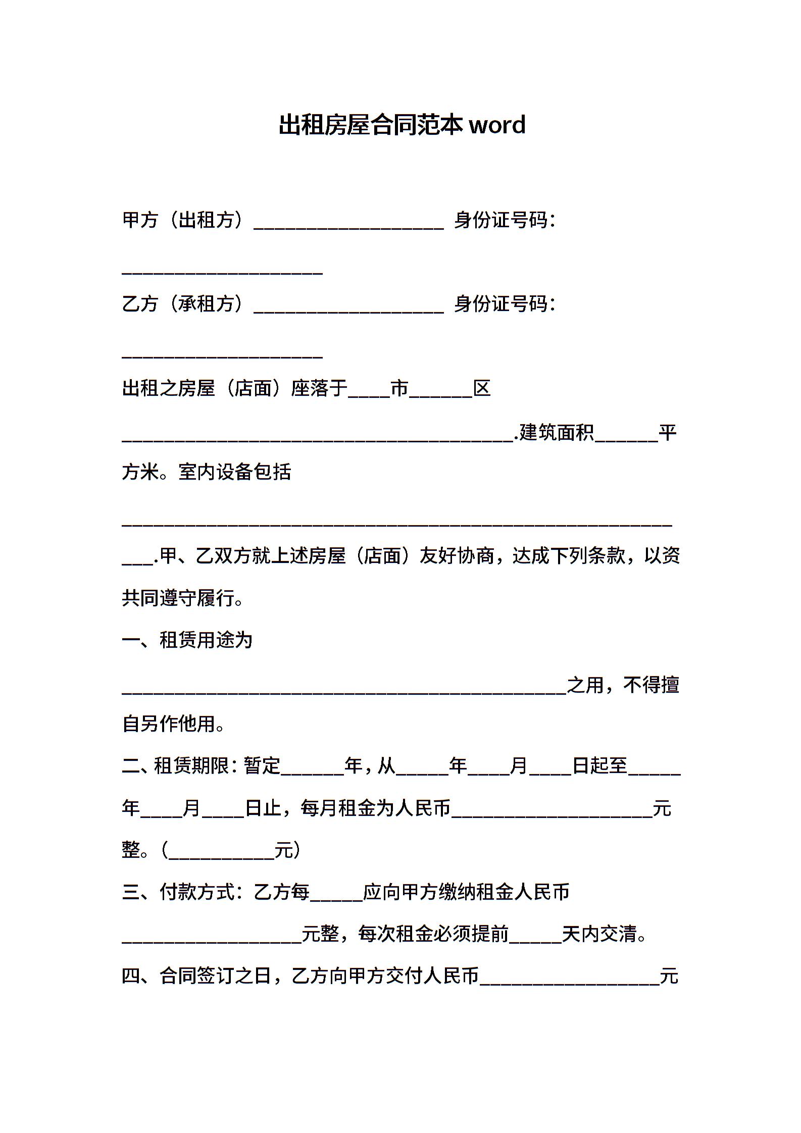出租房屋合同范本word