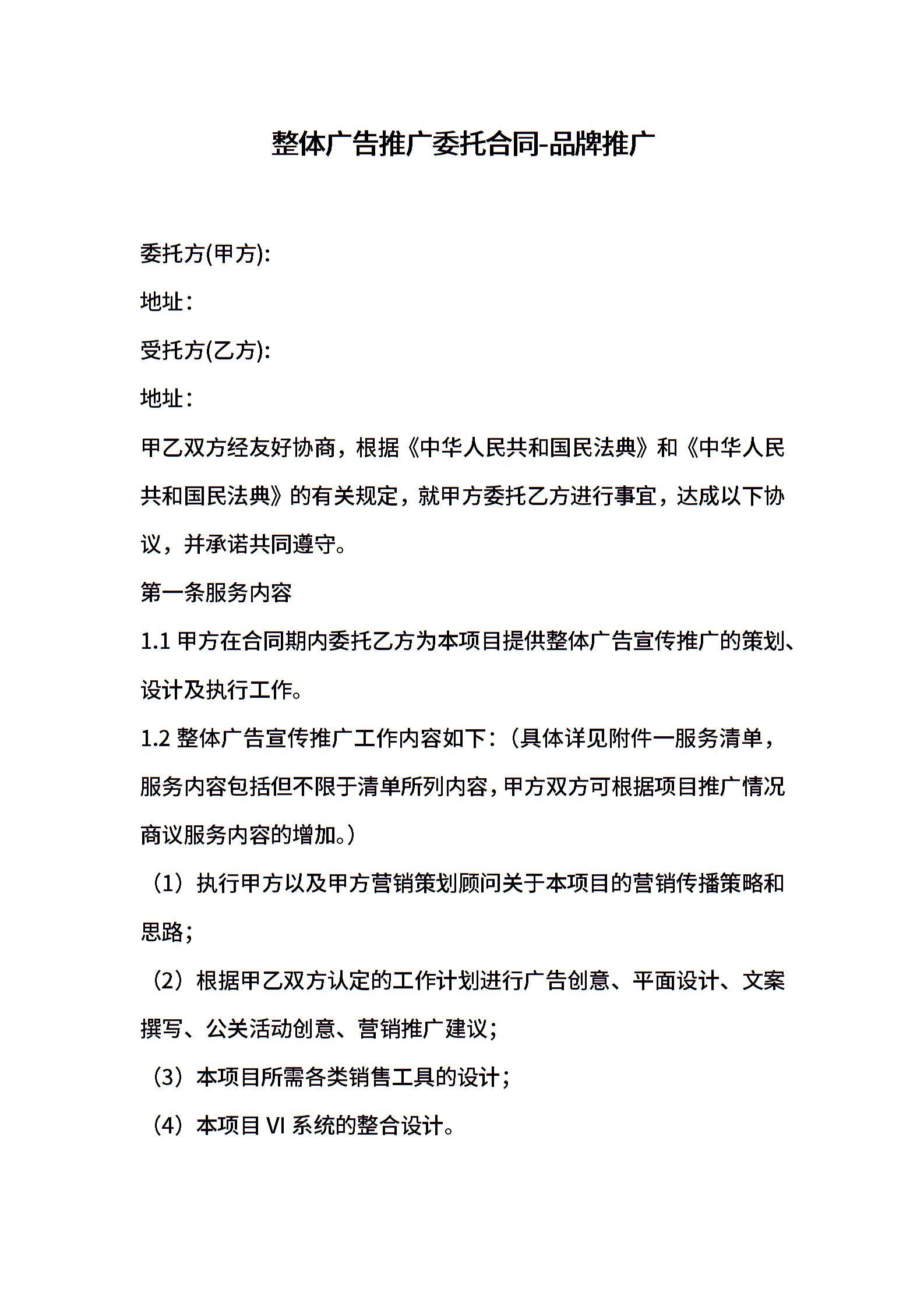 整体广告推广委托合同-品牌推广