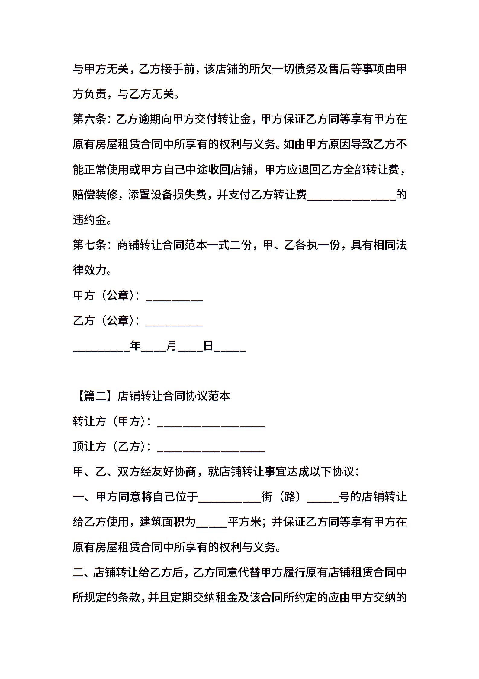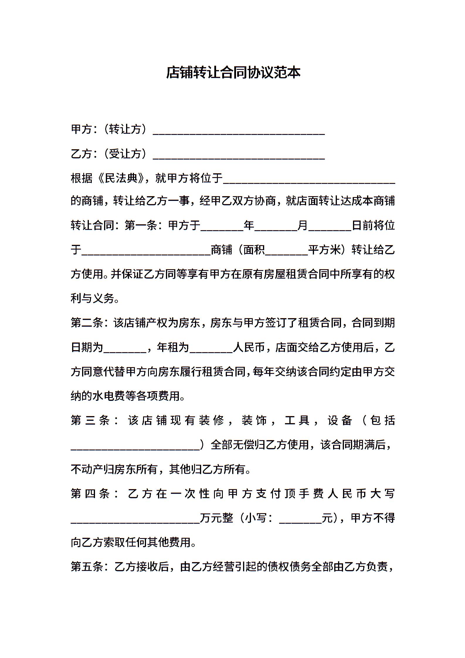 店铺转让合同协议范本