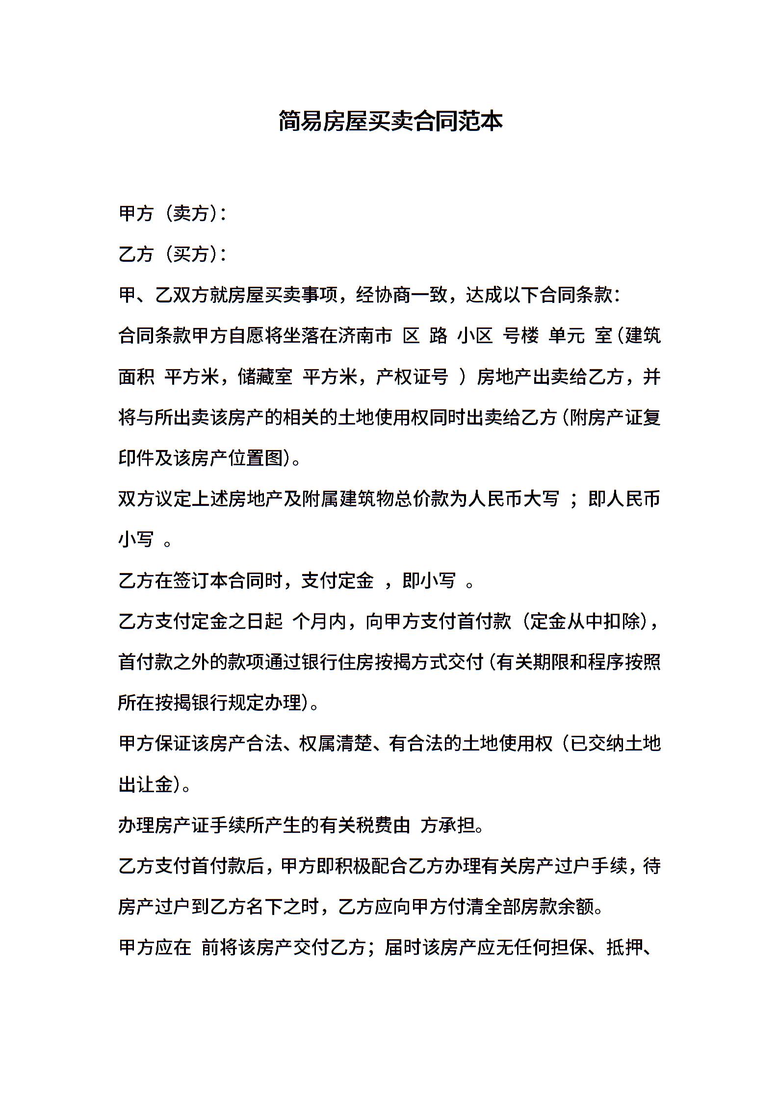 简易房屋买卖合同范本
