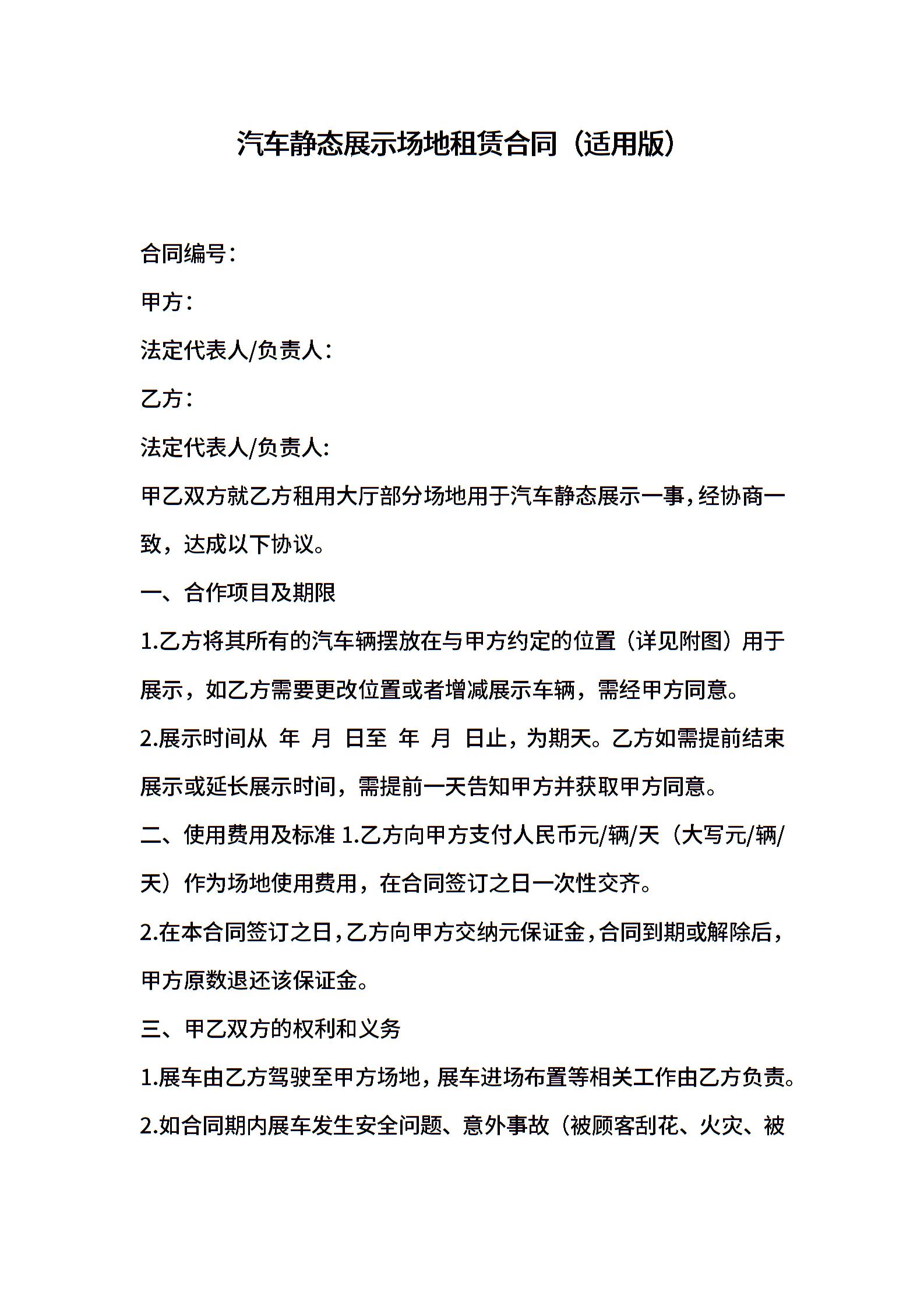 汽车静态展示场地租赁合同(适用版)
