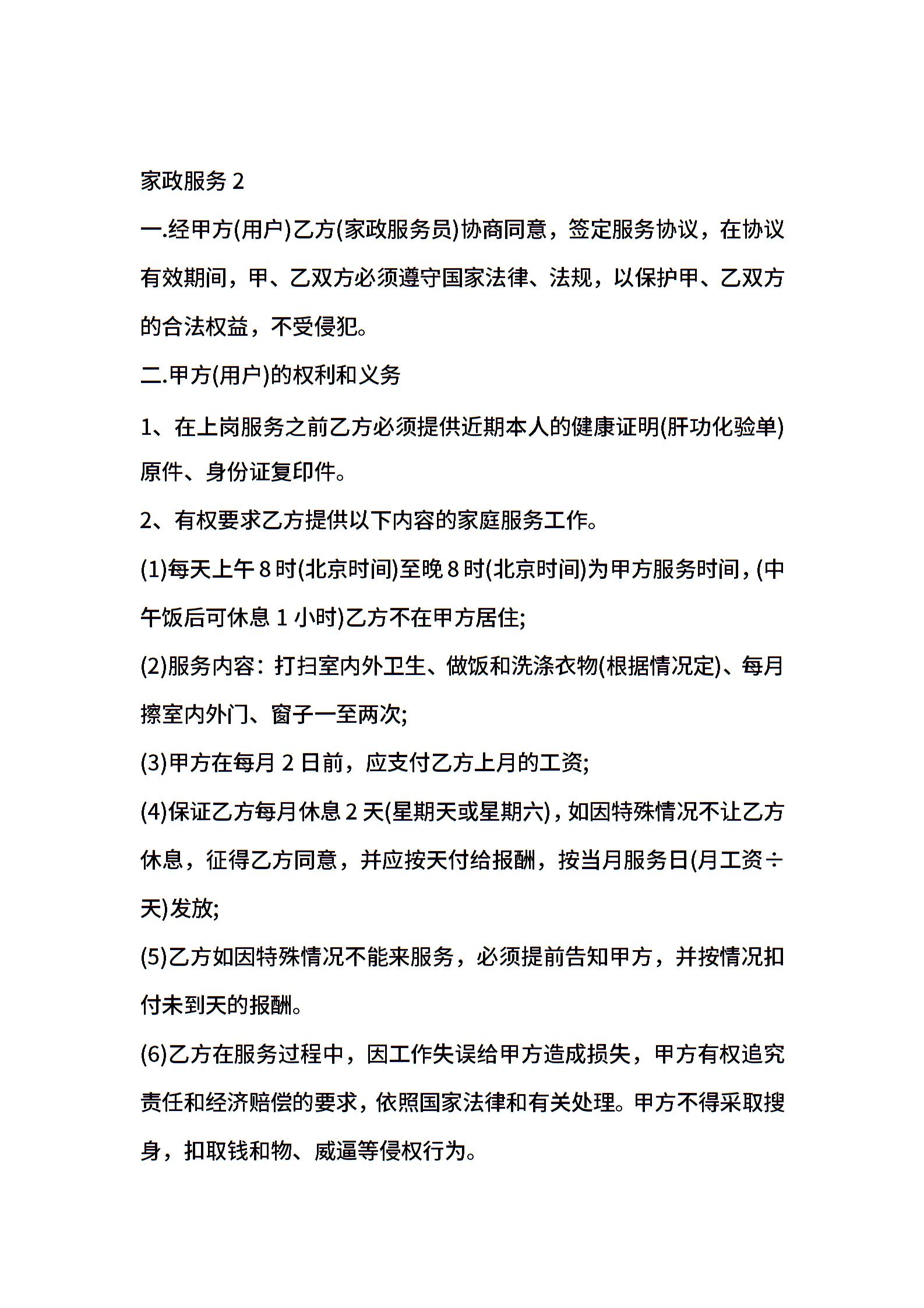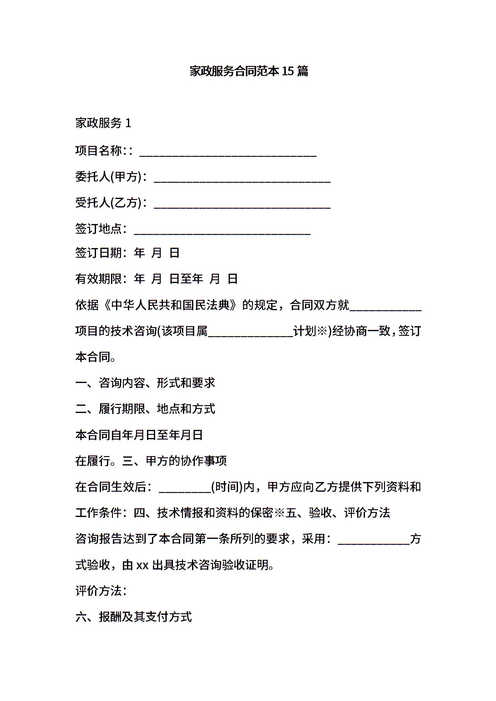 家政服务合同范本15篇