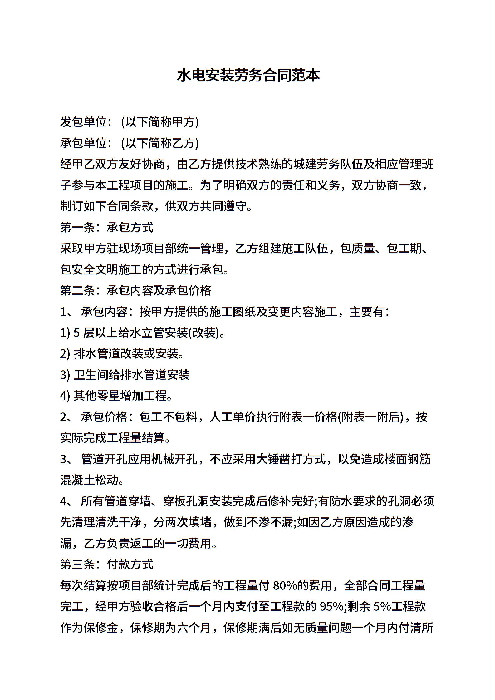 水电安装劳务合同范本