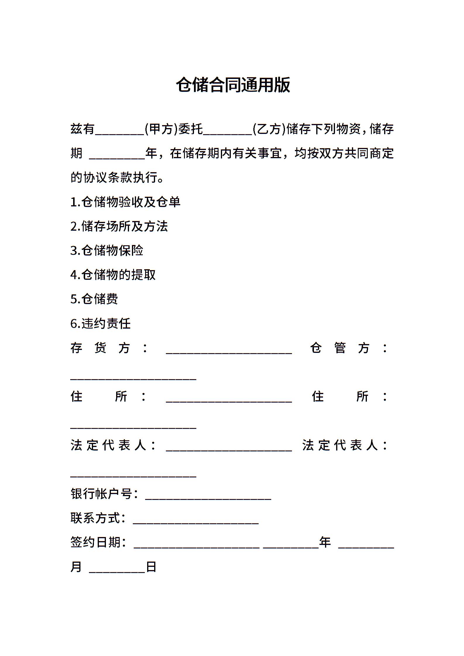 仓储合同通用版