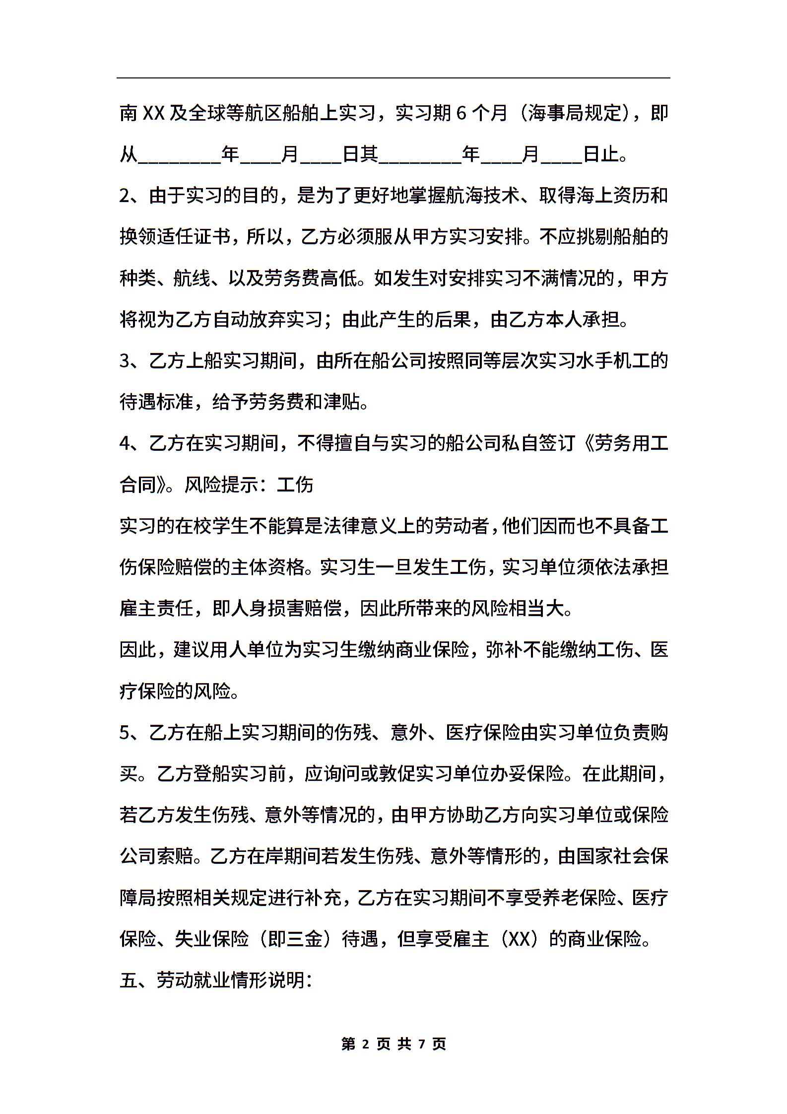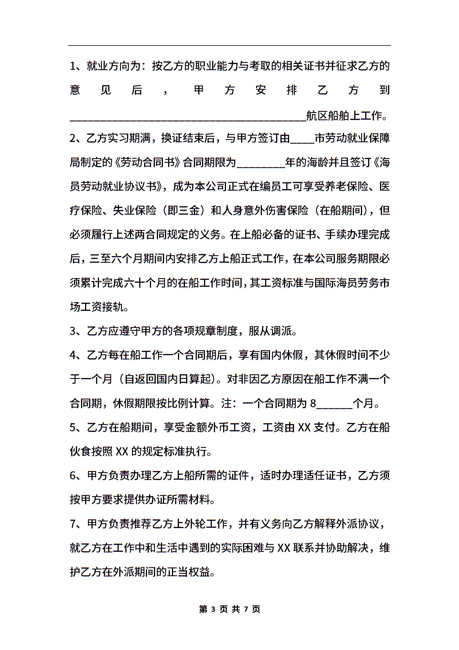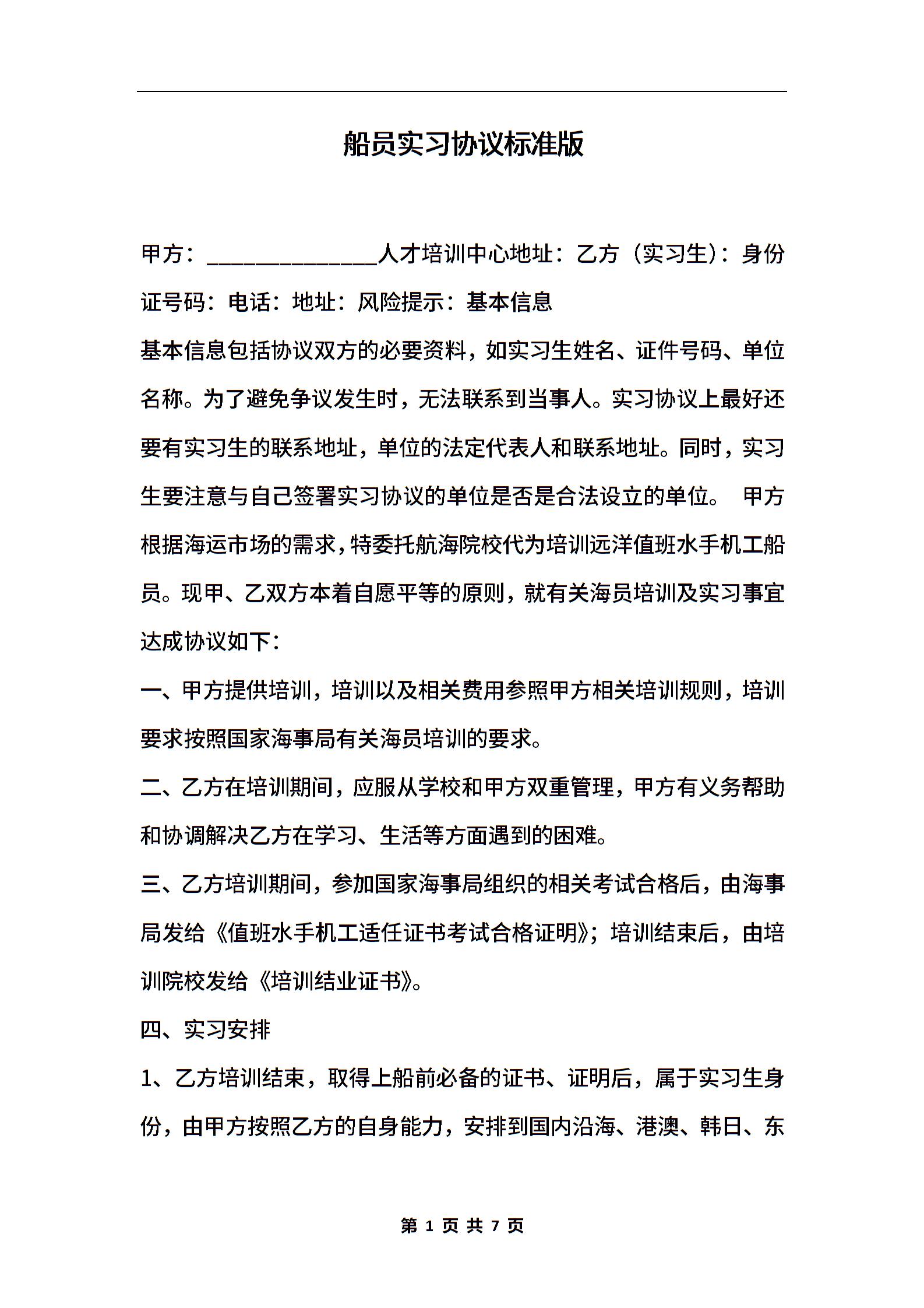 船员实习协议标准版