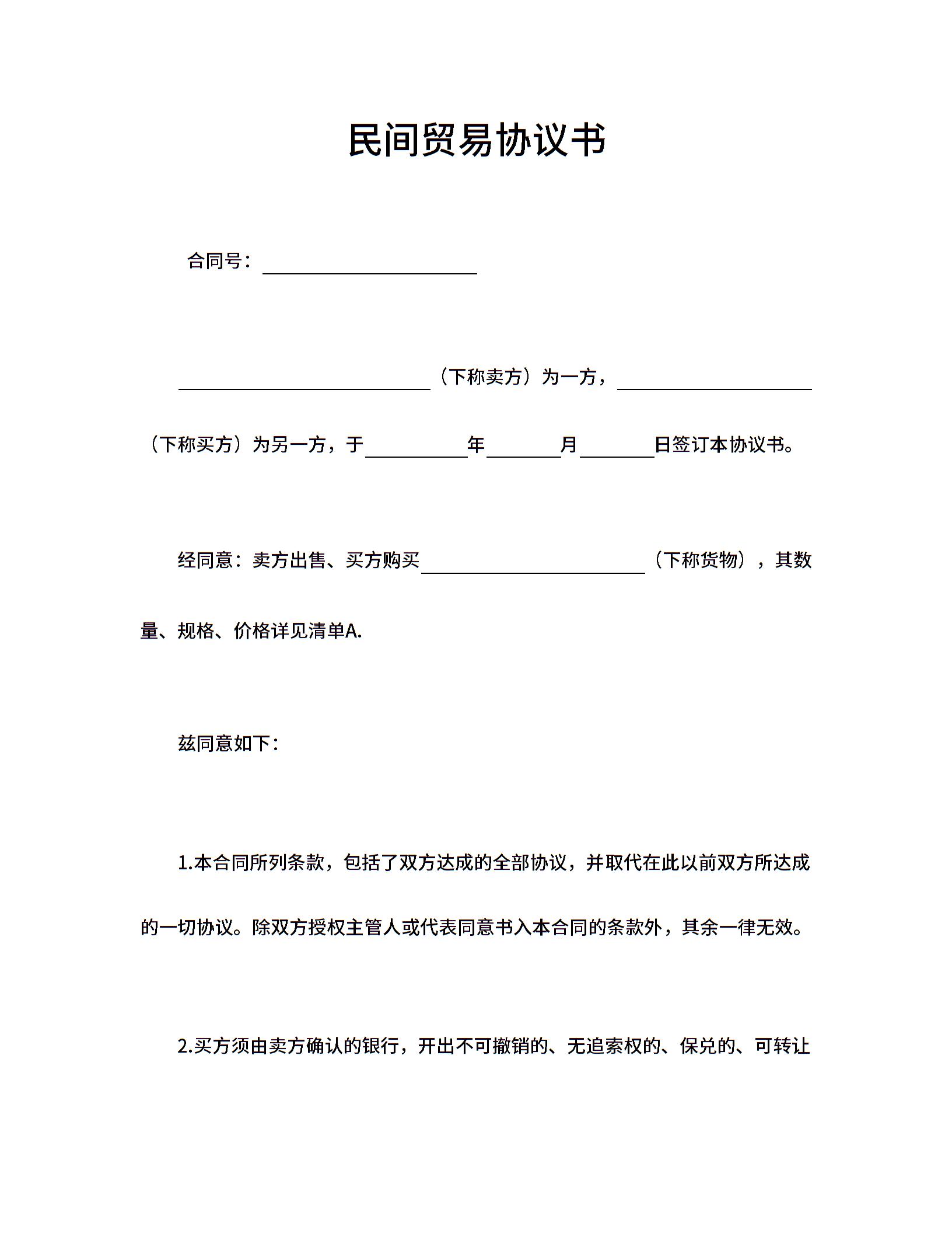 当前位置:量子办公 > 合同模板 > 贸易合同 >