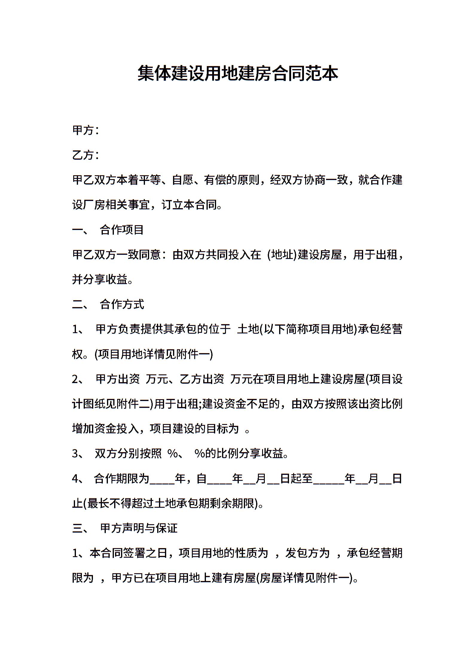 集体建设用地建房合同范本