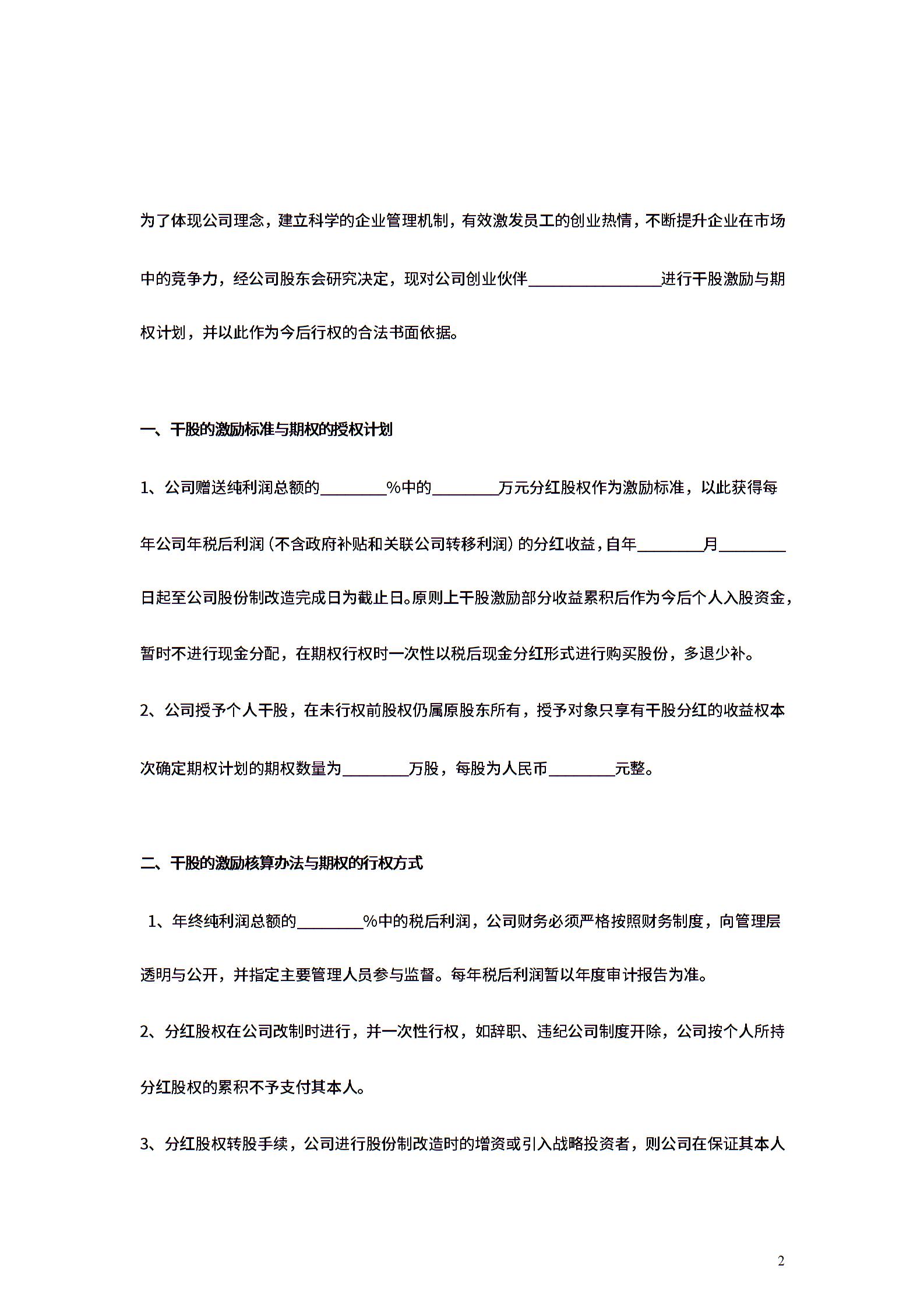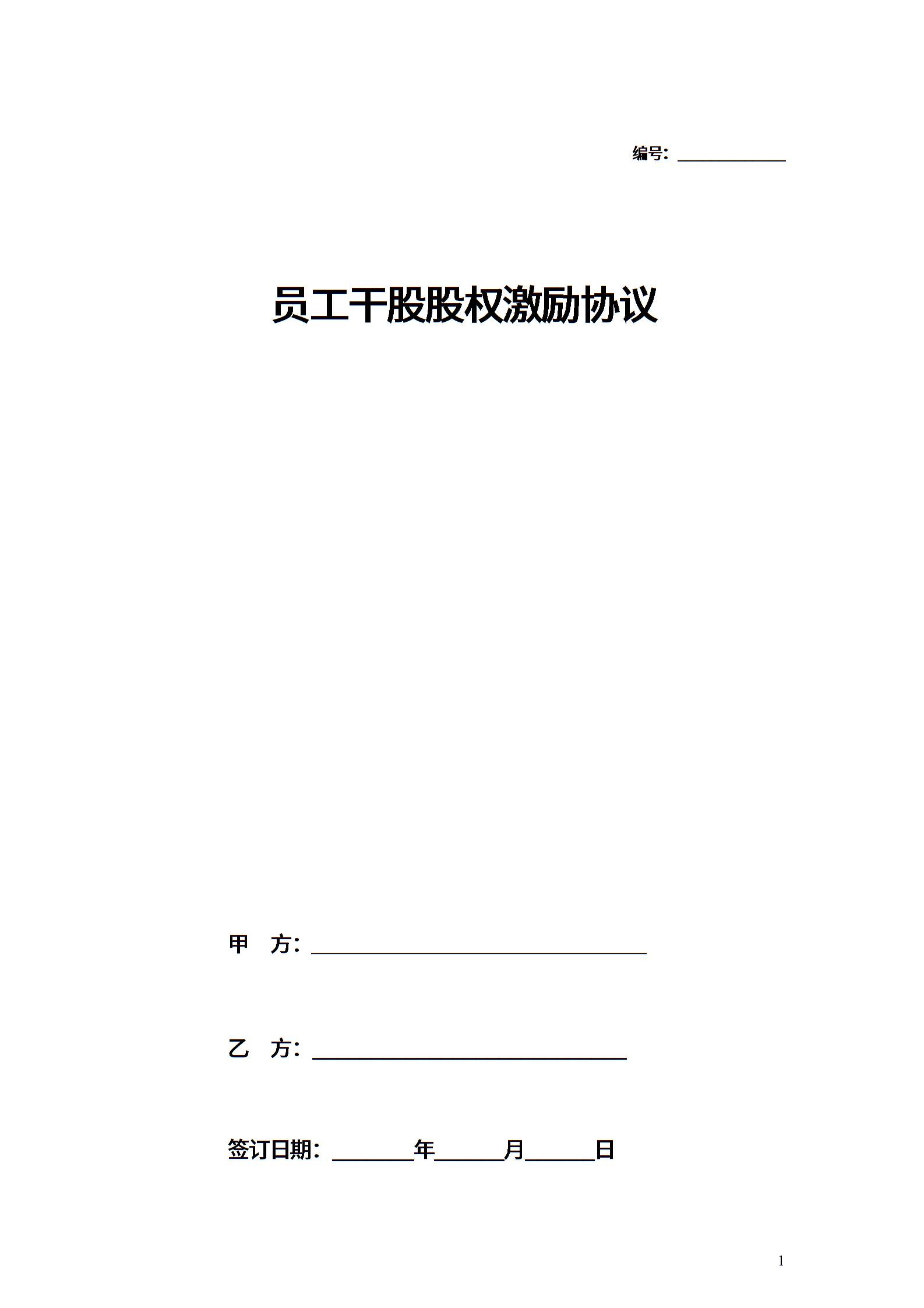 员工干股股权激励合同协议范本模板