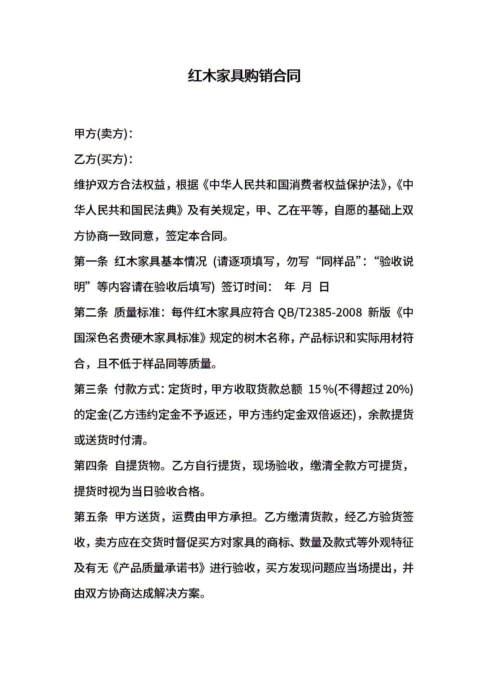 红木家具购销合同