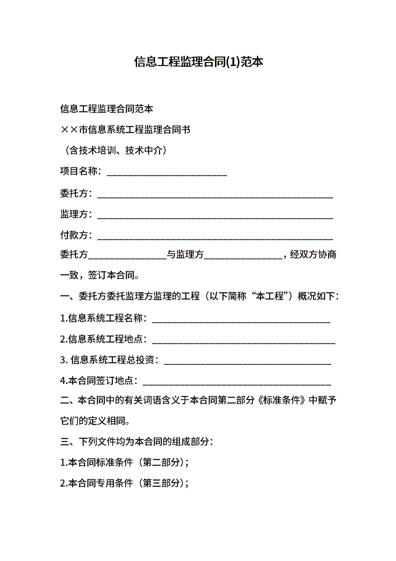 信息工程监理合同(1)范本