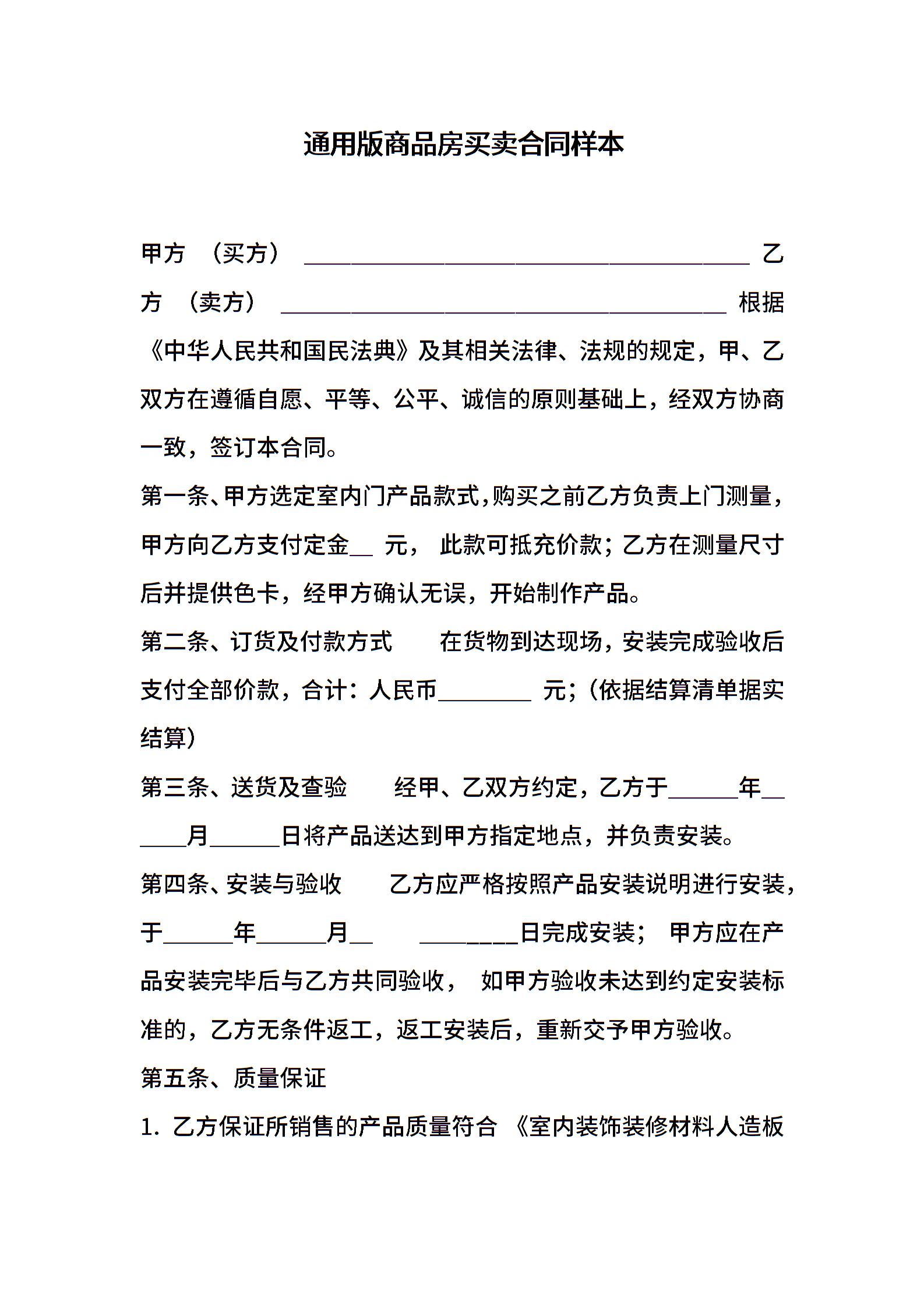 通用版商品房买卖合同样本