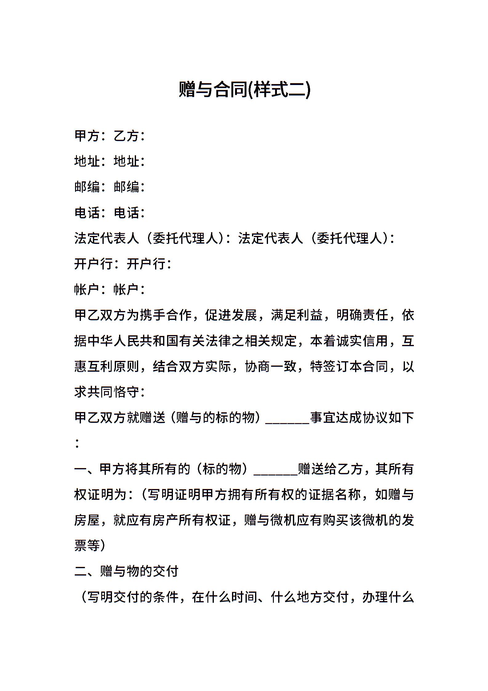 当前位置:量子办公 > 合同模板 > 赠与合同 >