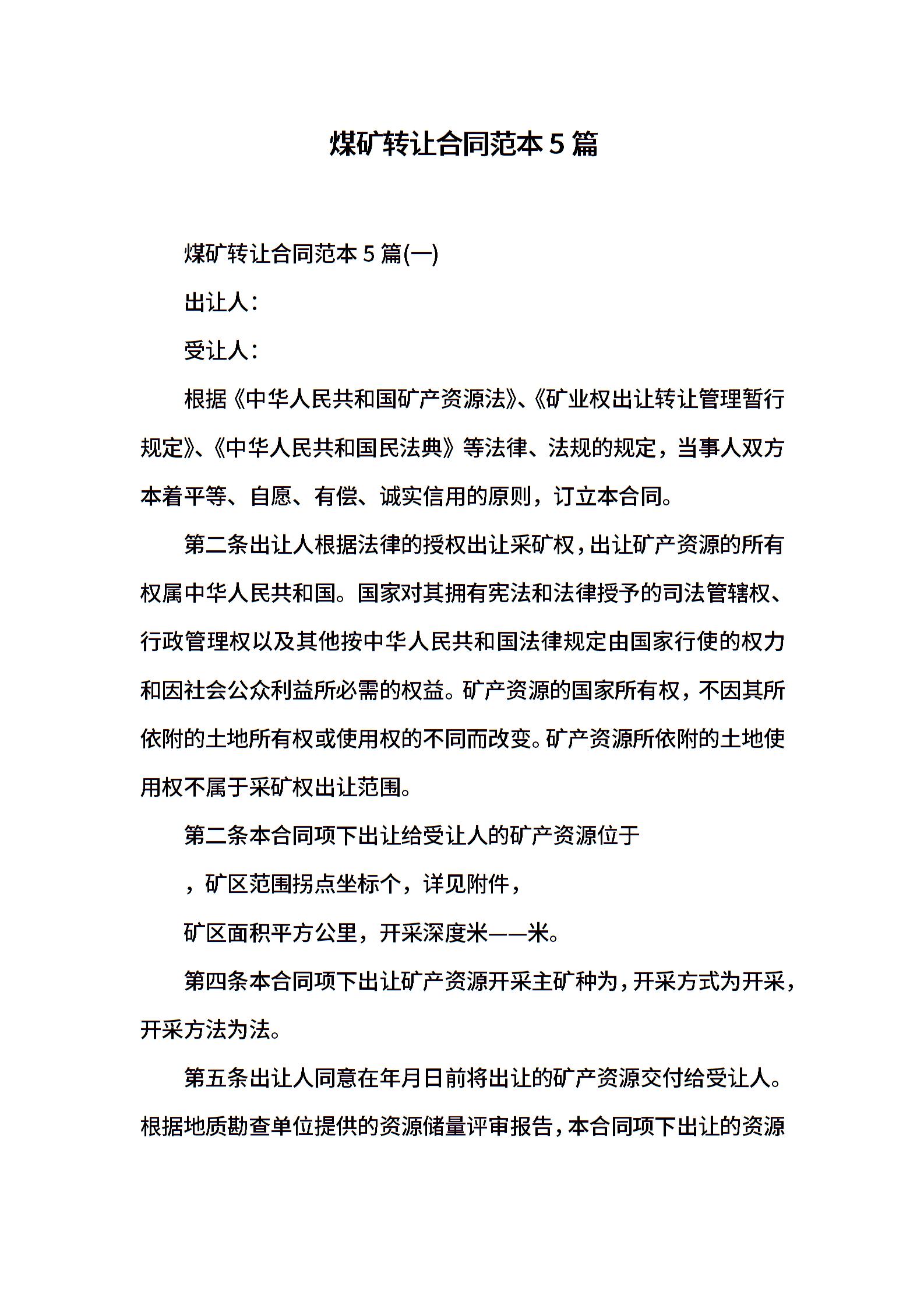 煤矿转让合同范本5篇