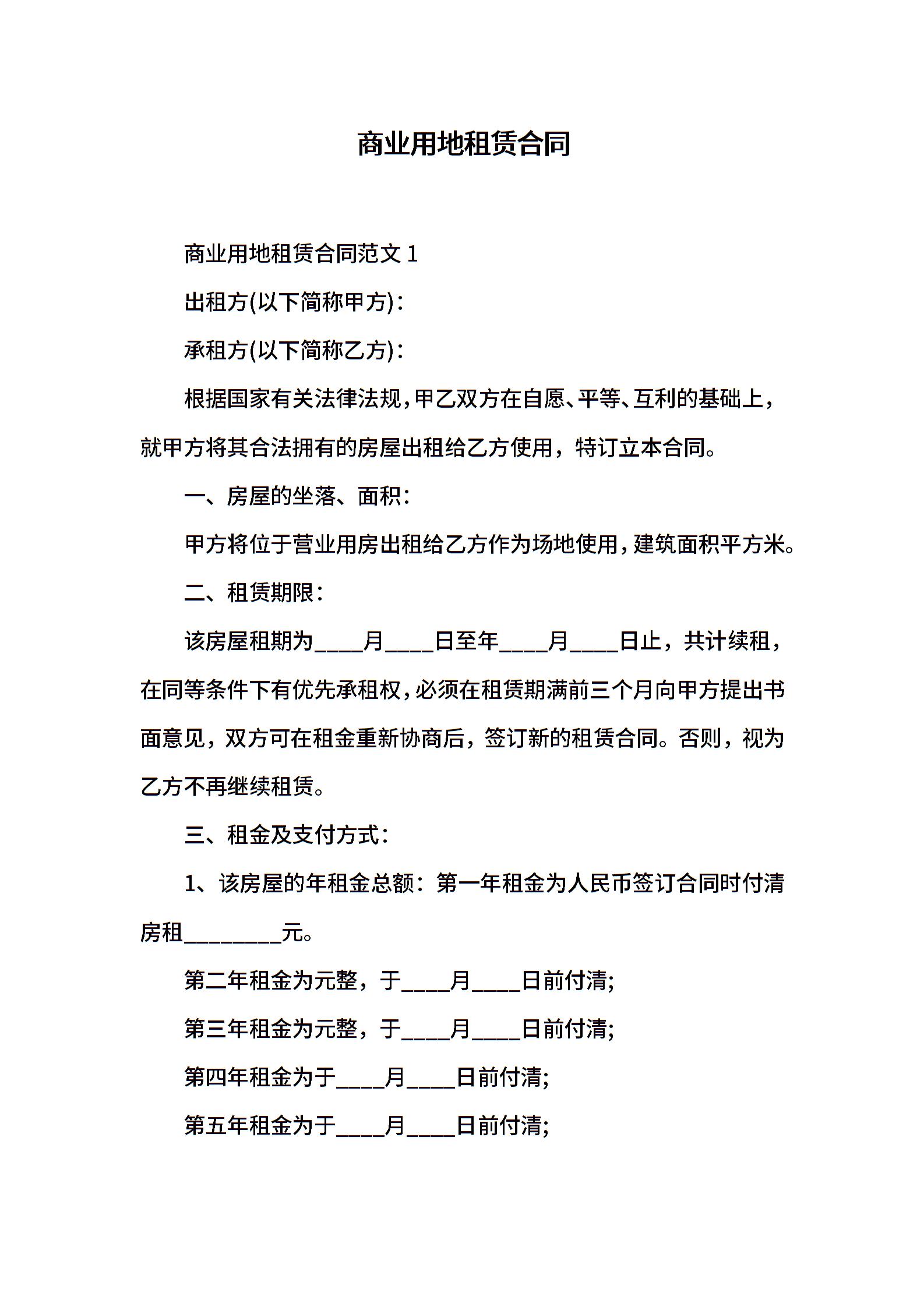 商业用地租赁合同
