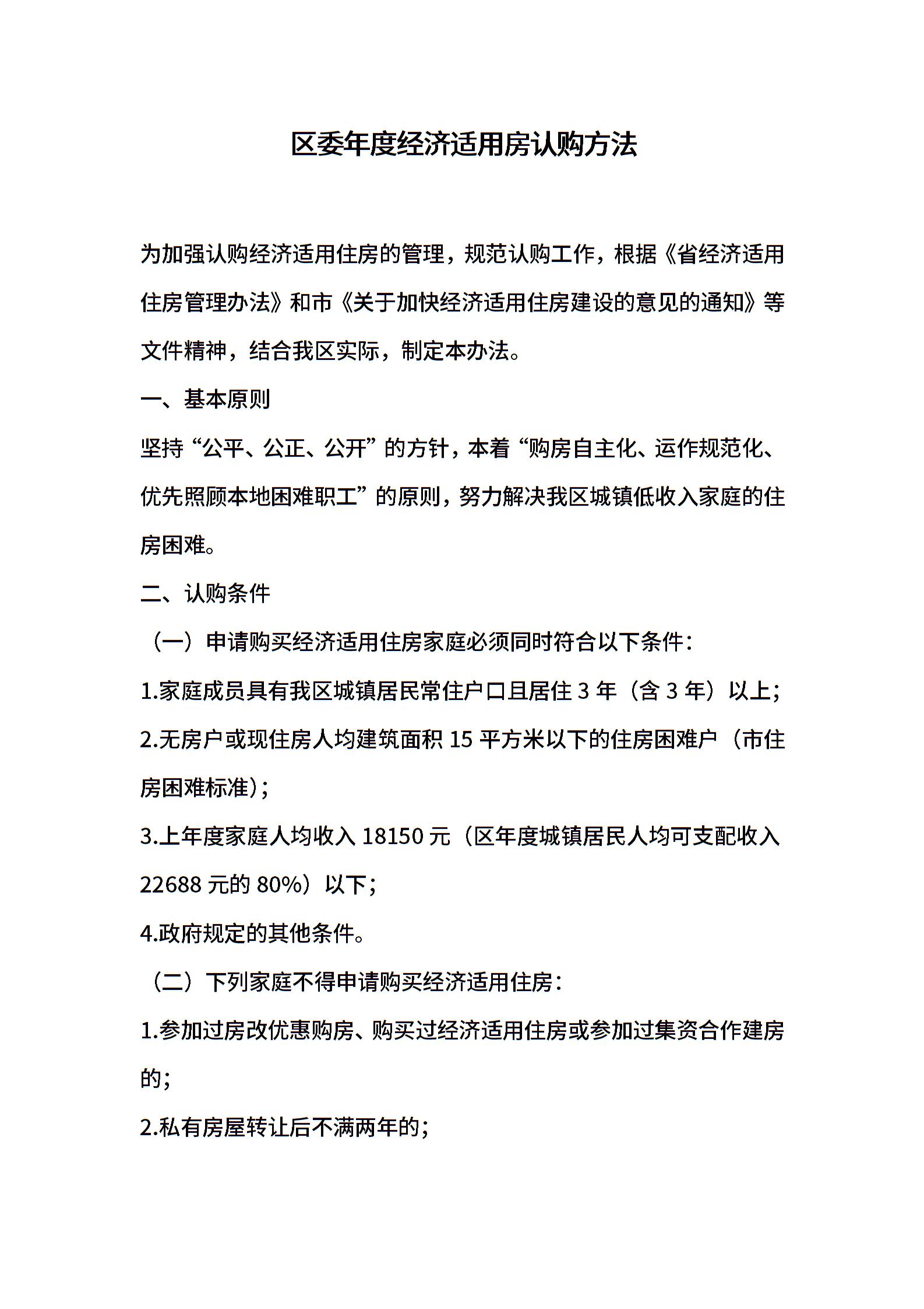 区委年度经济适用房认购方法