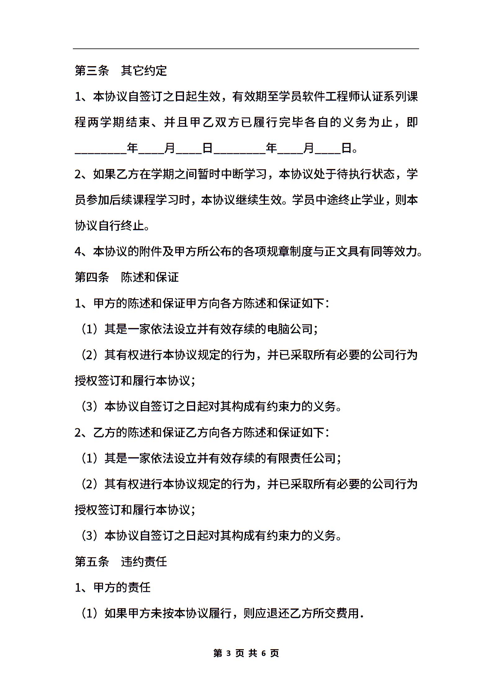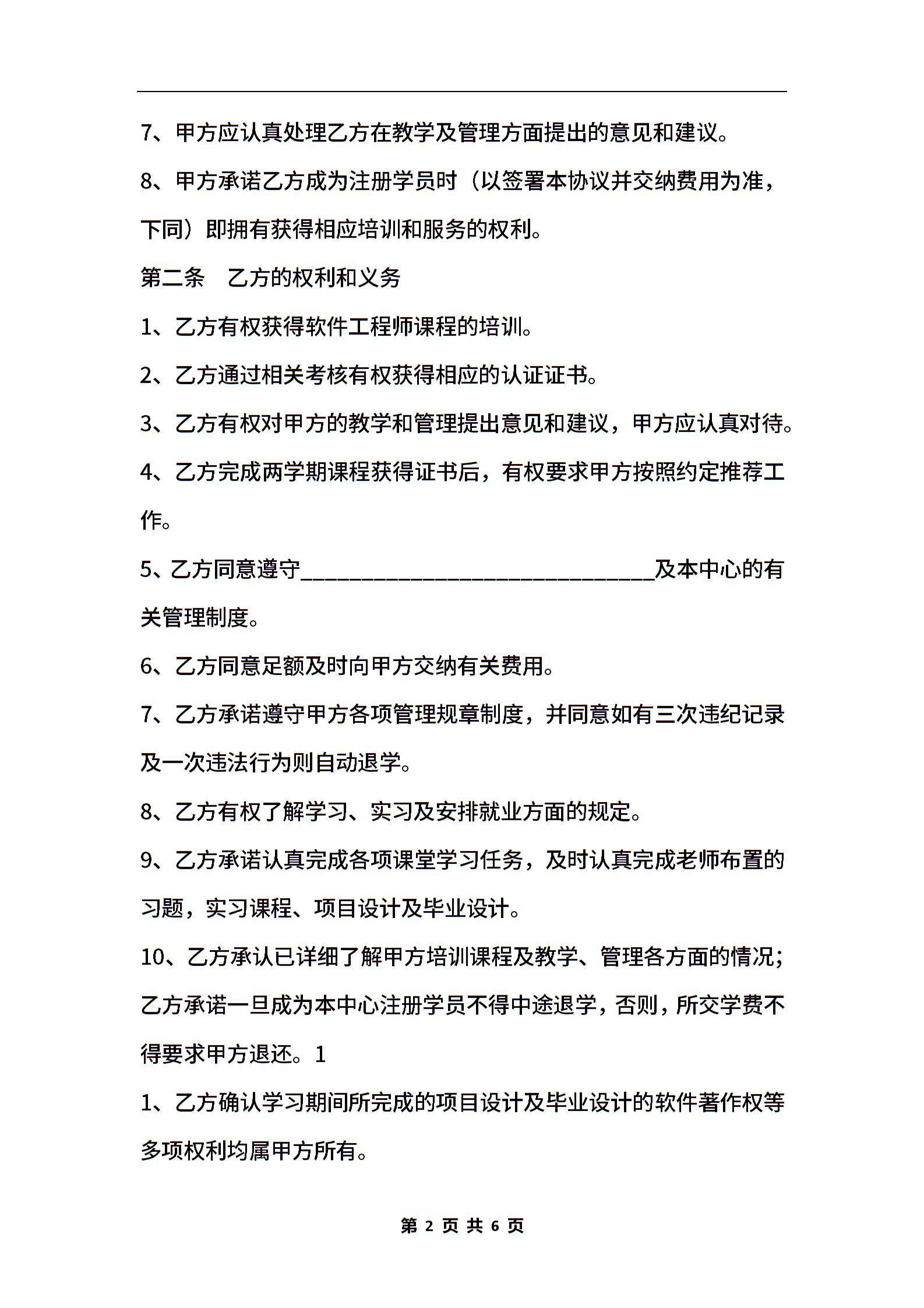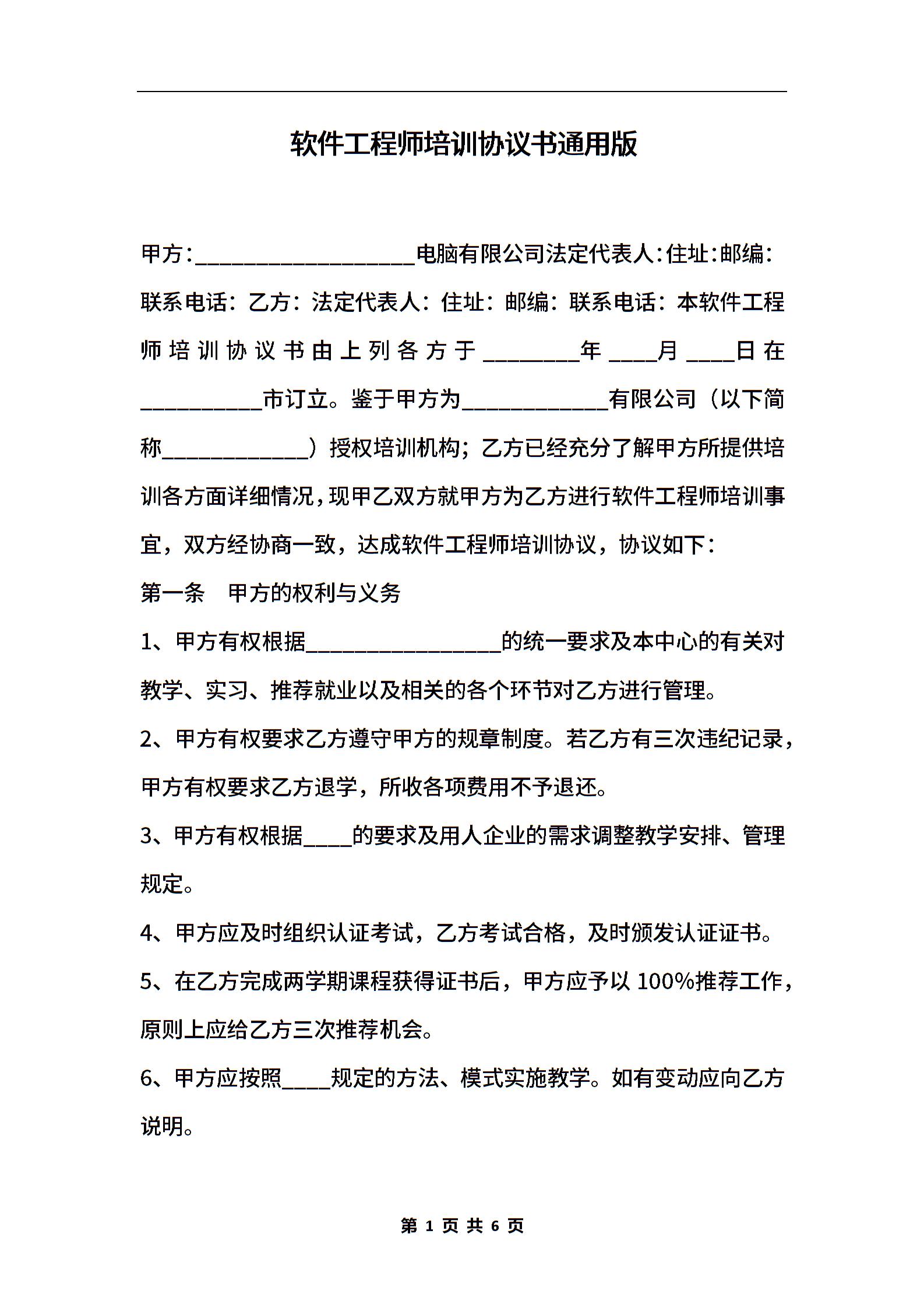 软件工程师培训协议书通用版