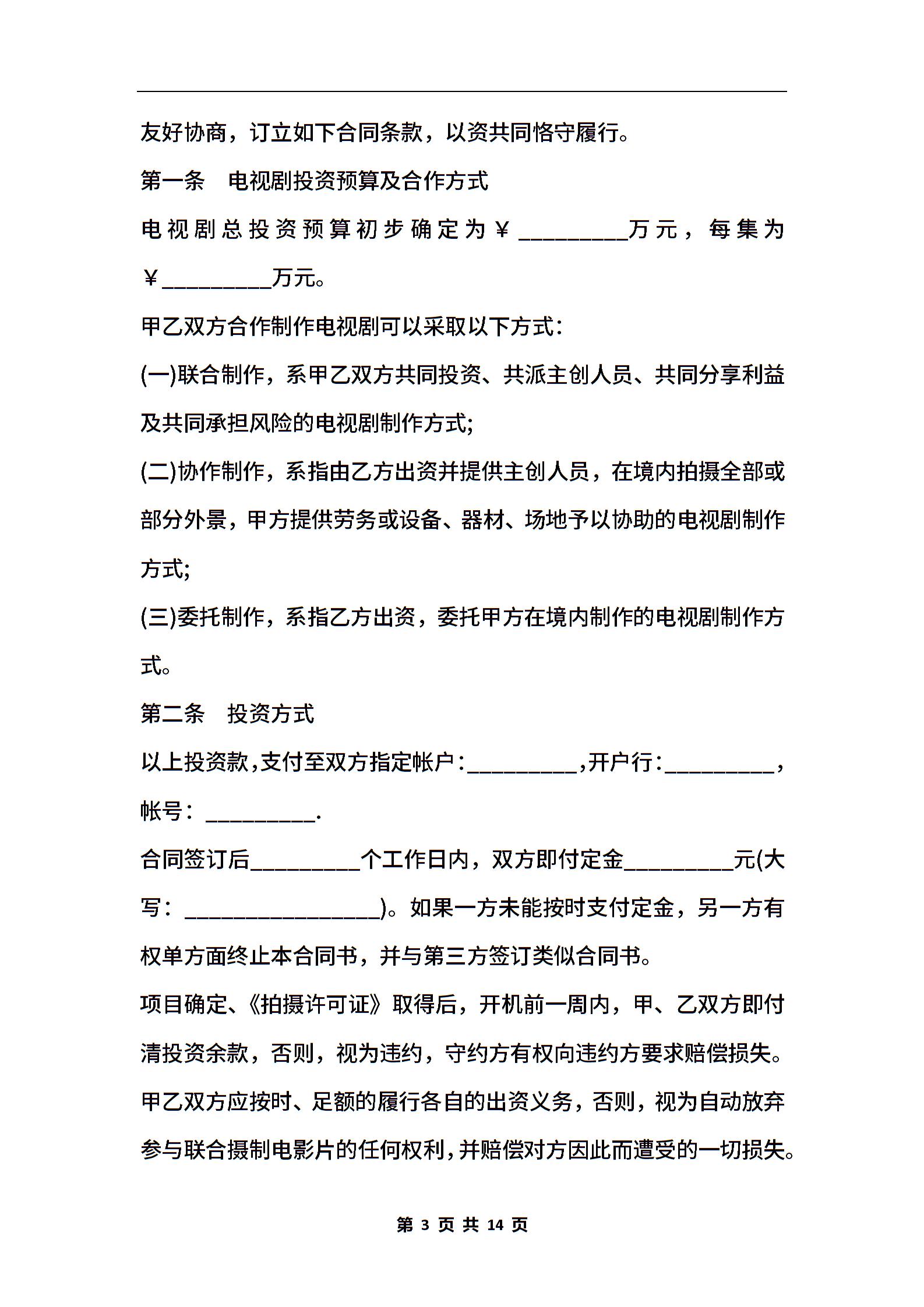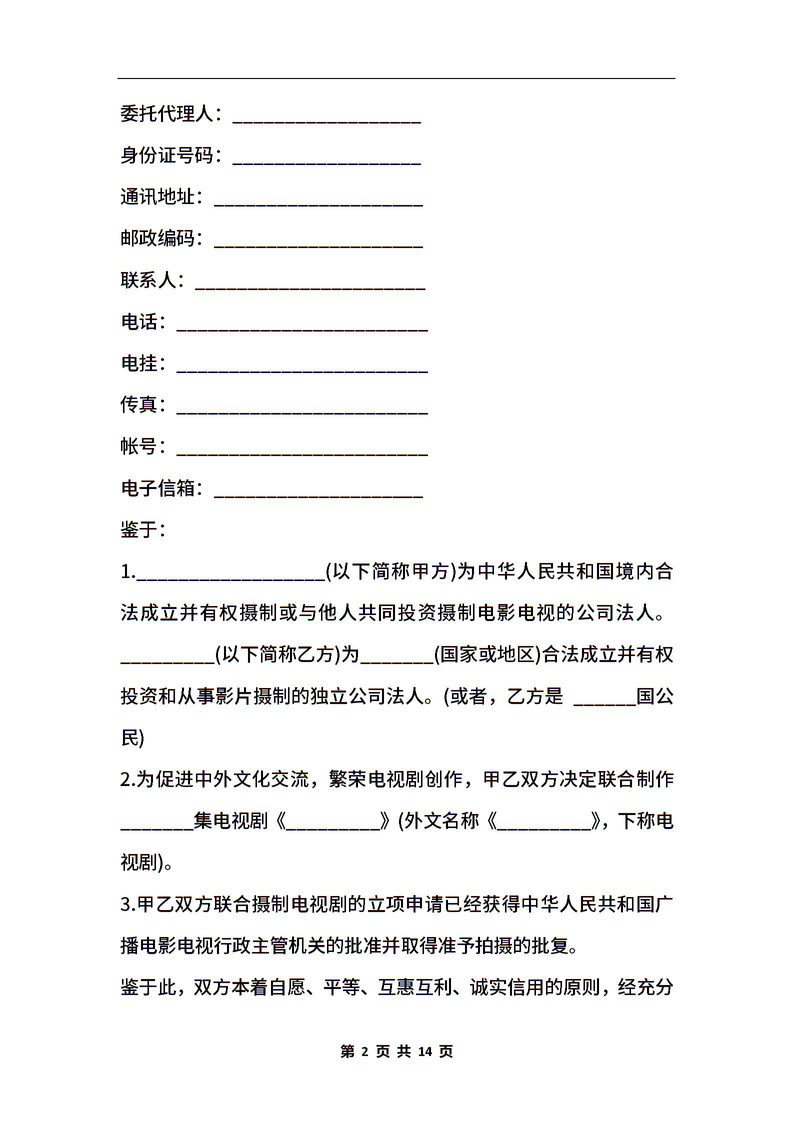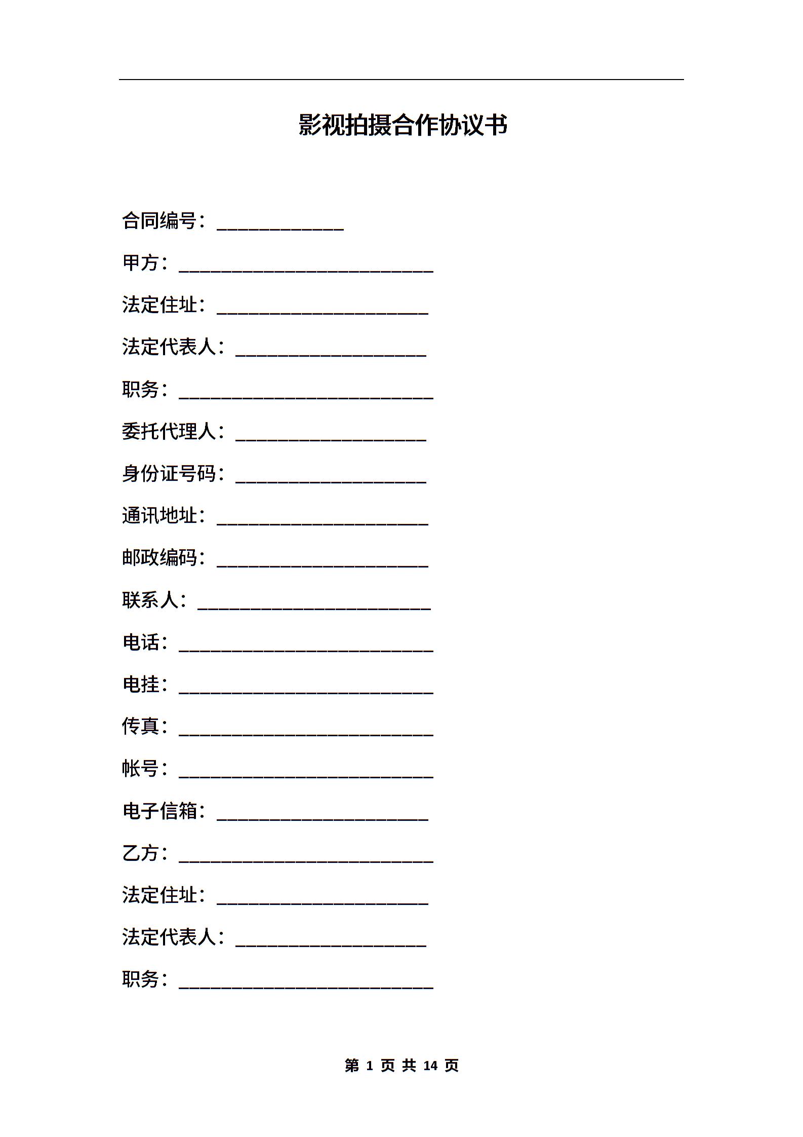 影视拍摄合作协议书