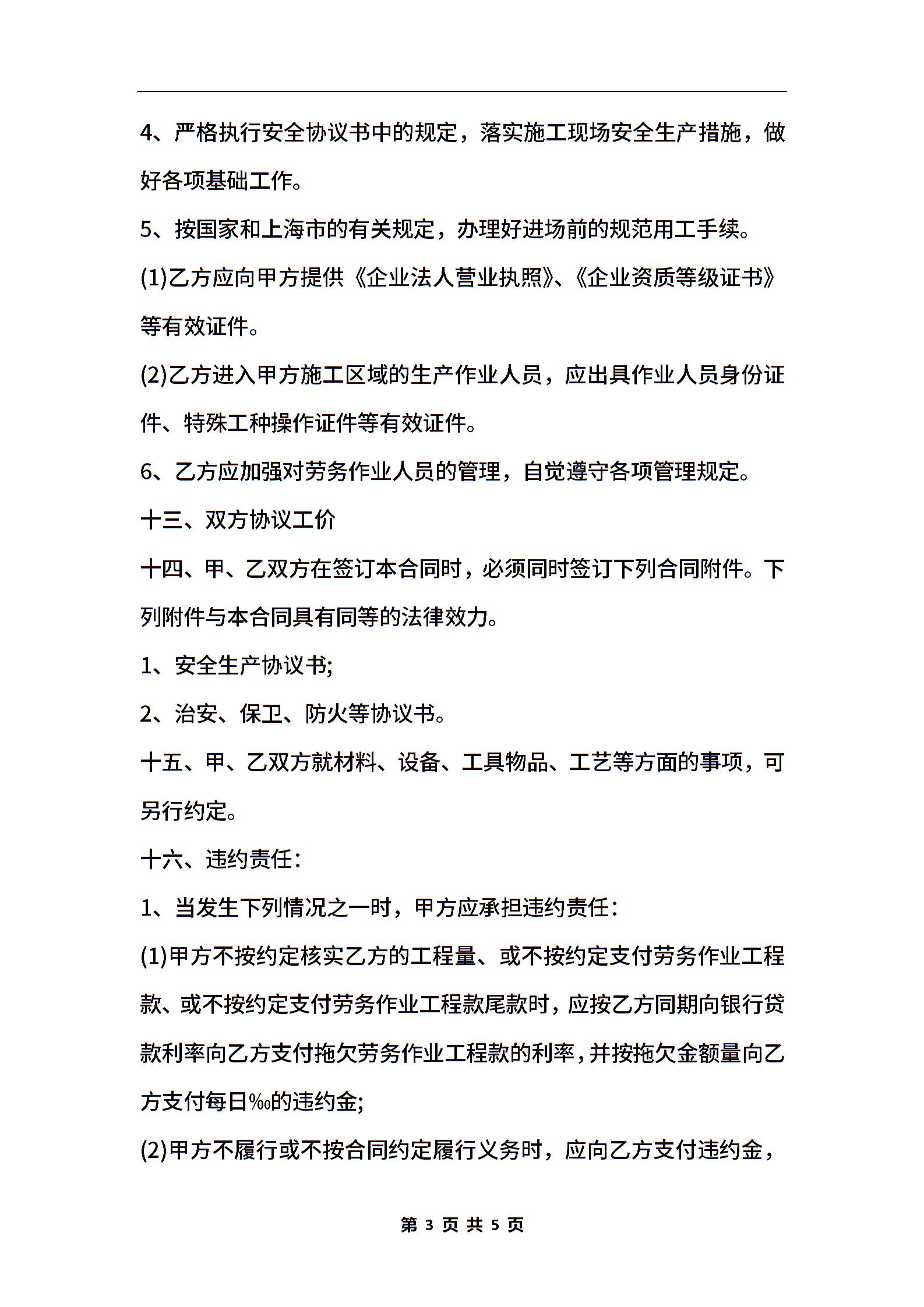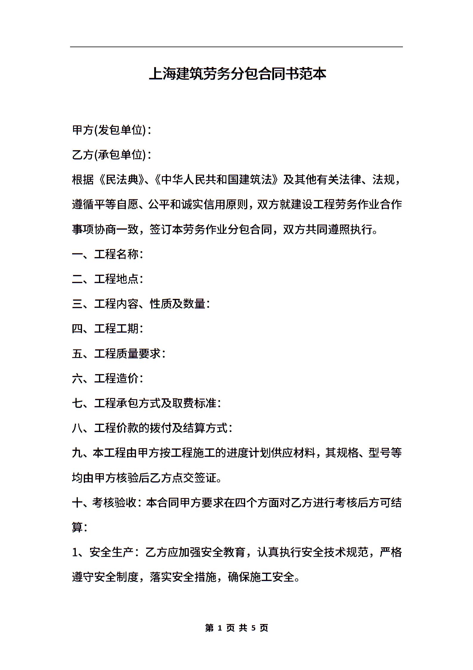 上海建筑劳务分包合同书范本