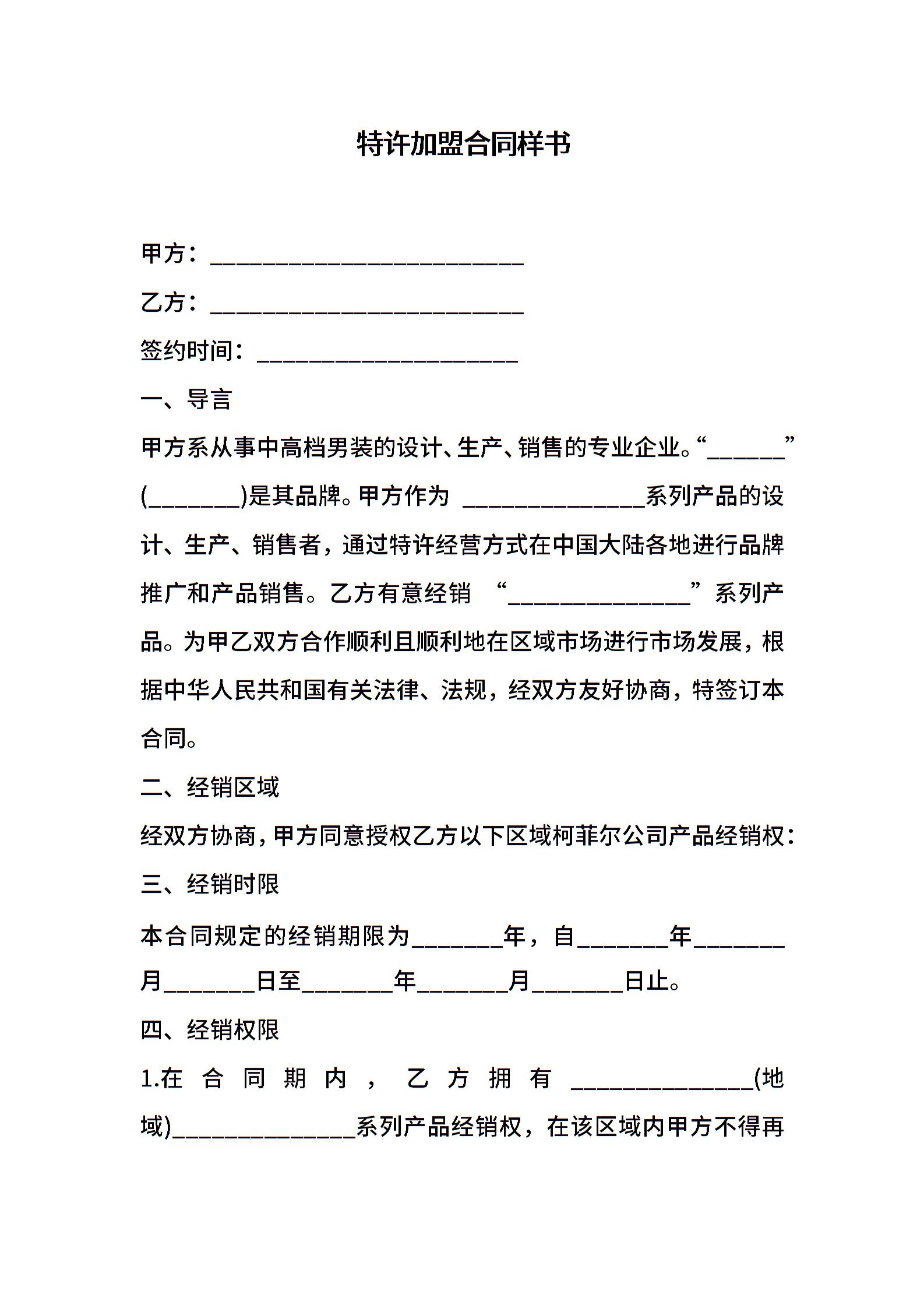 特许加盟合同样书