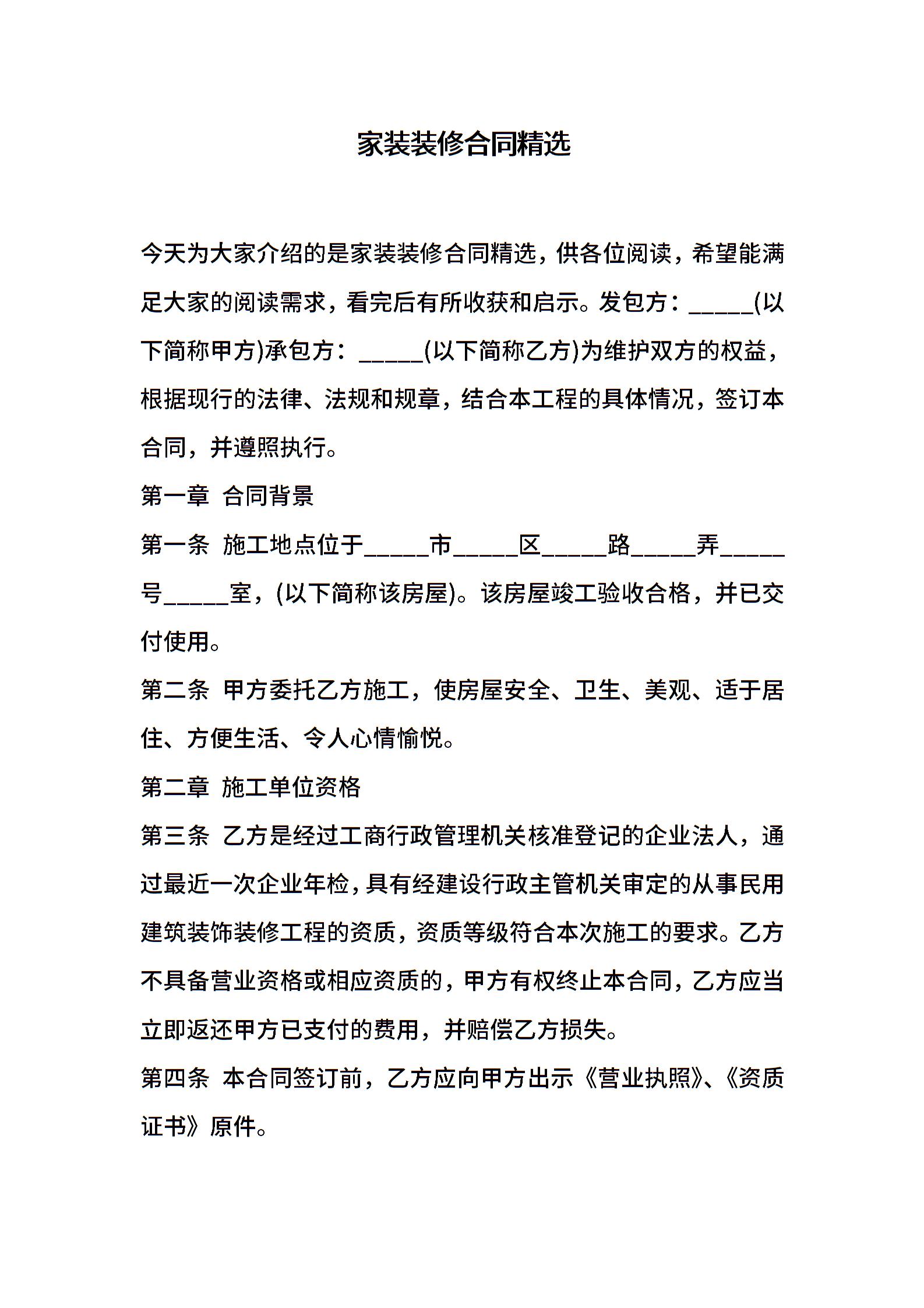 家装装修合同精选