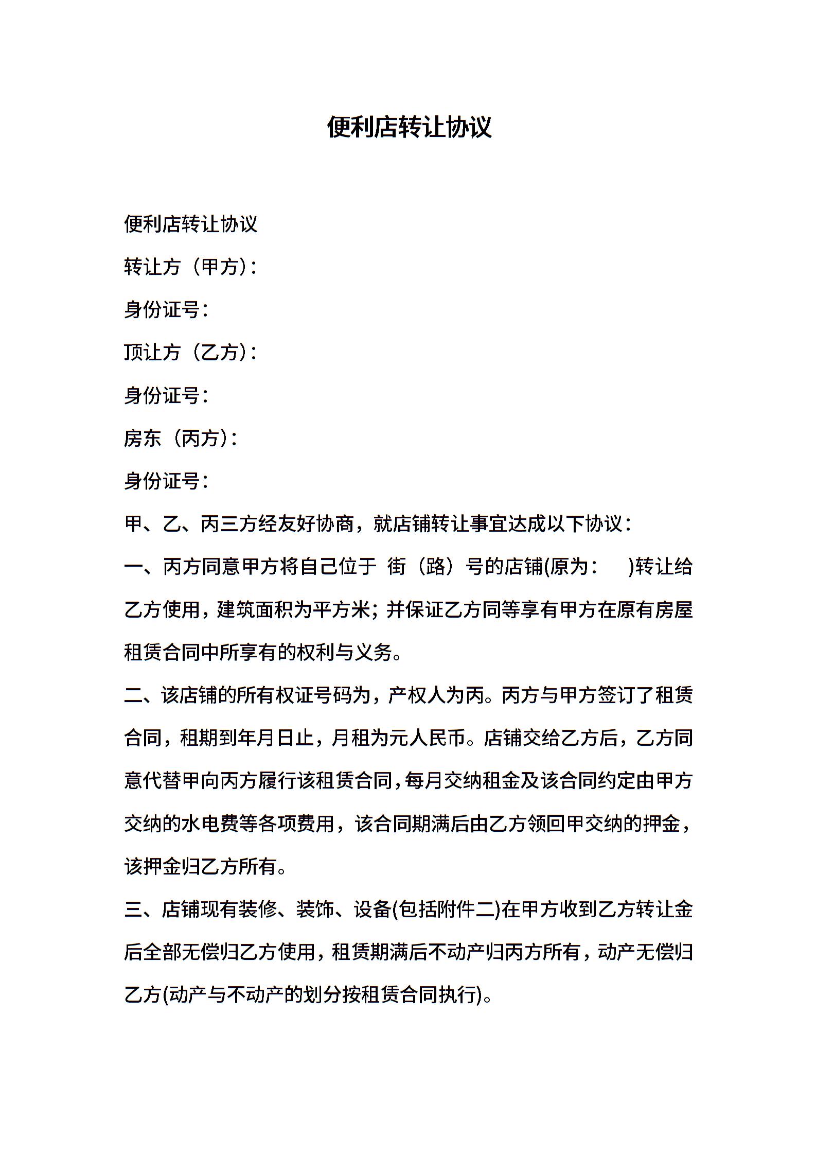 便利店转让协议