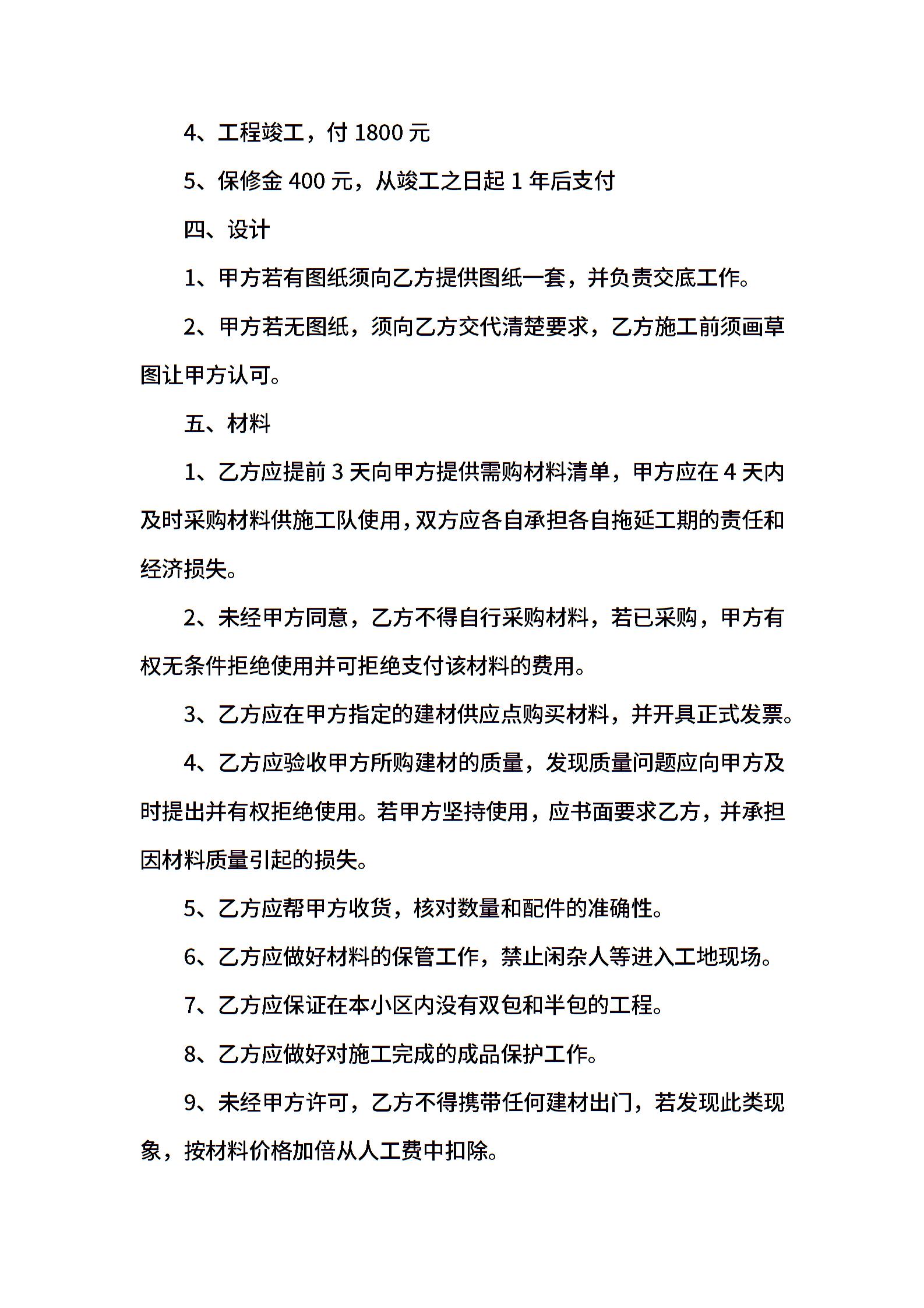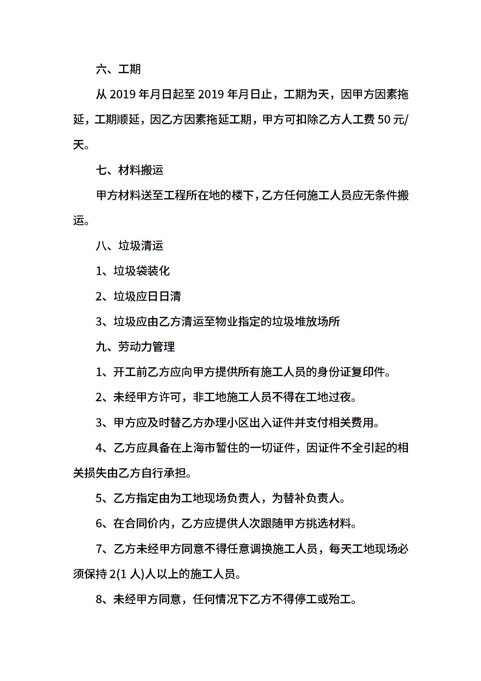 清包工装修合同范本(正规)