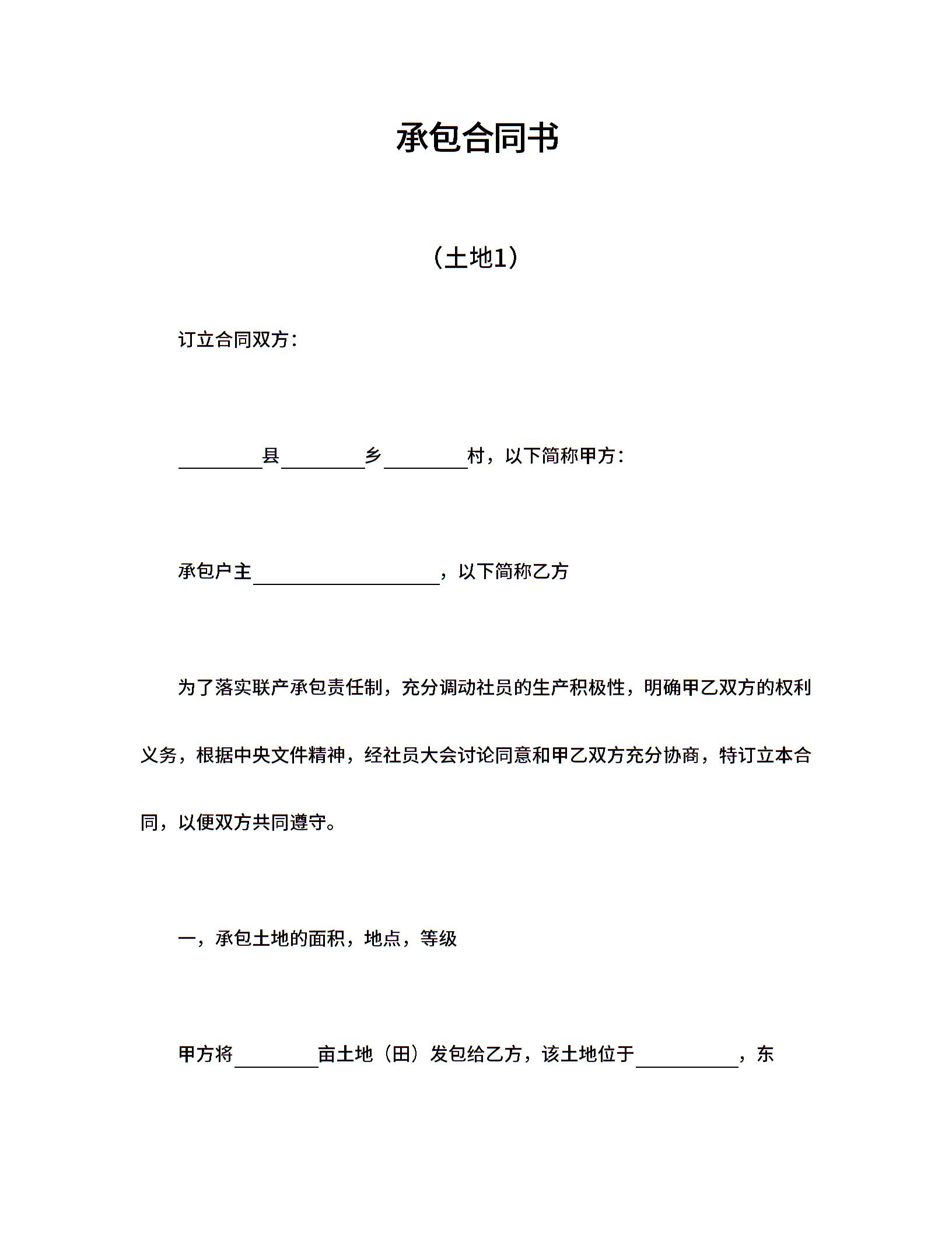 承包合同书(土地1)