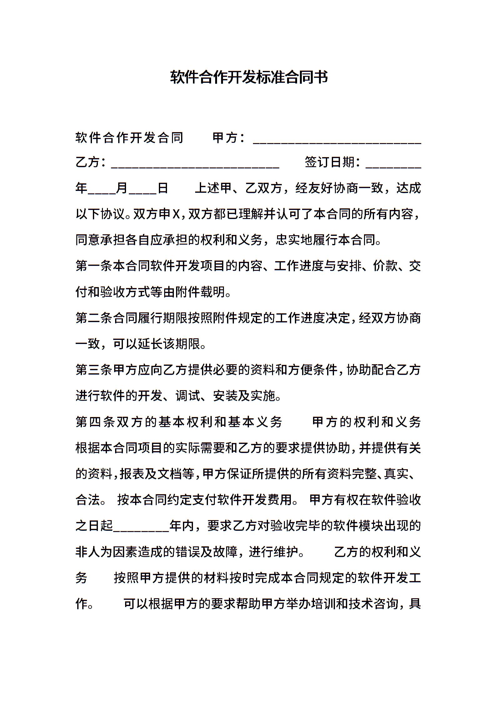 软件合作开发标准合同书