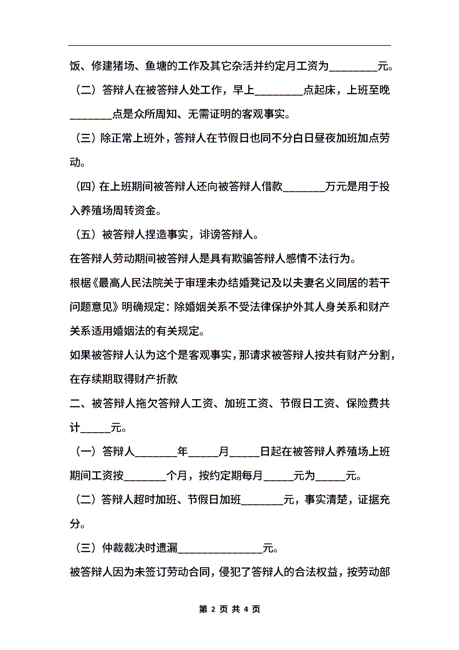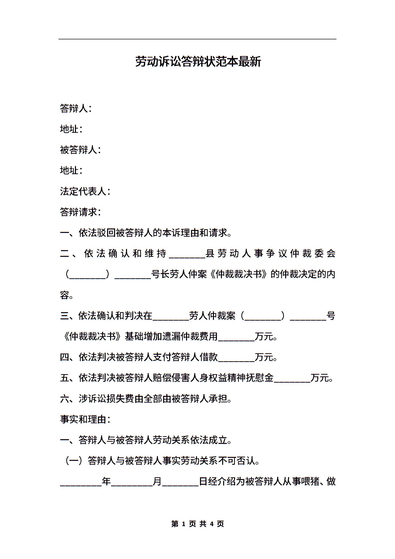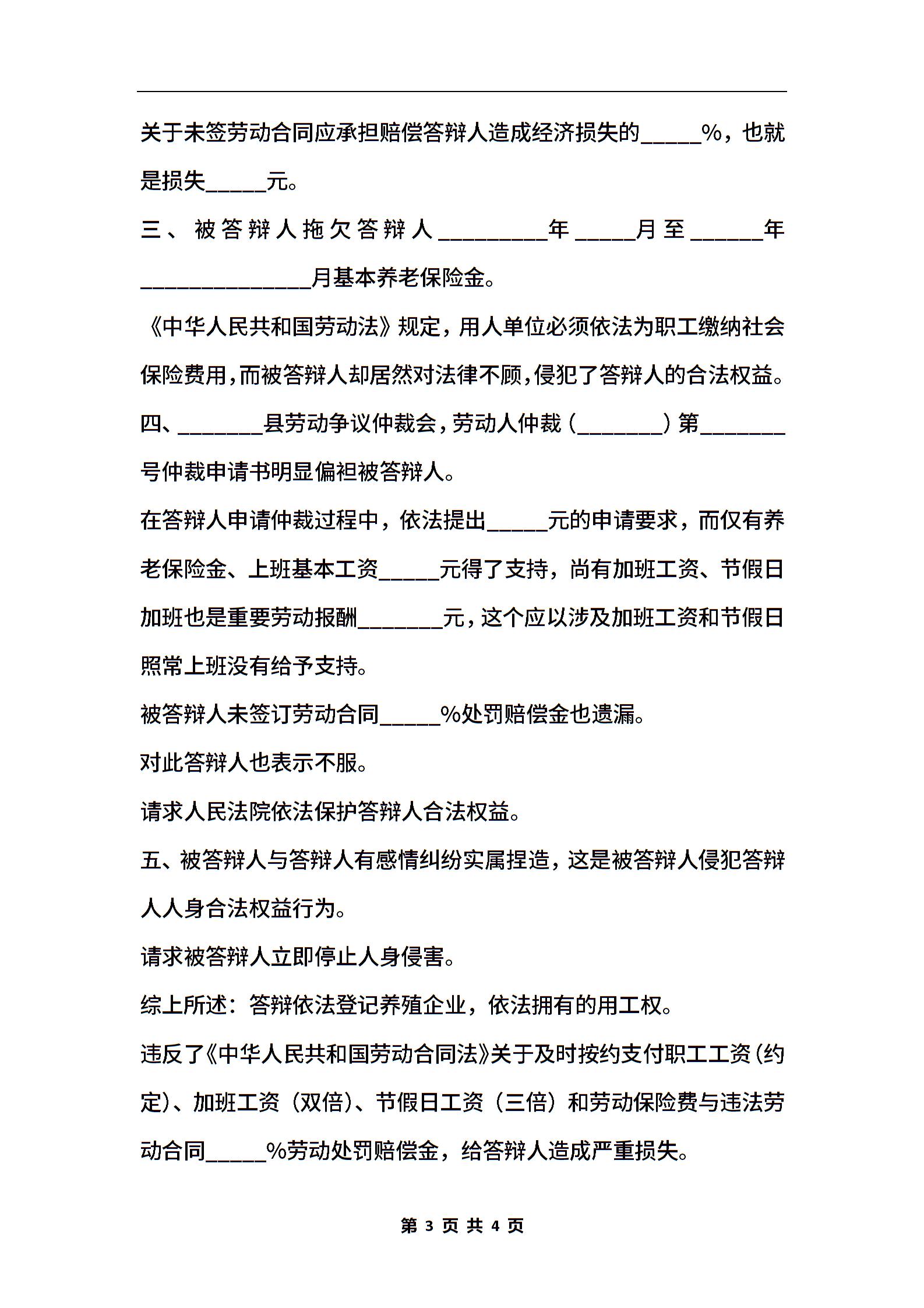 劳动诉讼答辩状范本最新