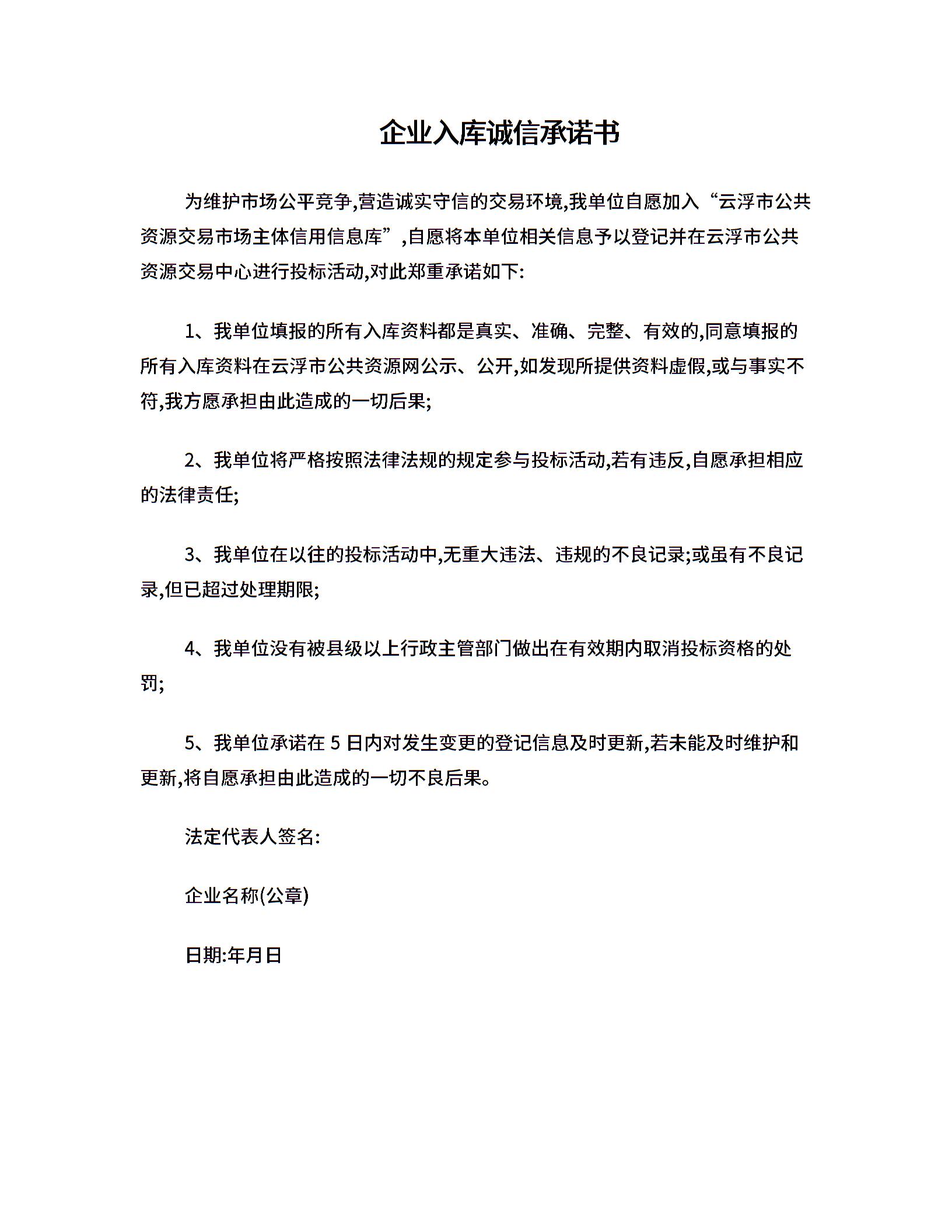 企业入库诚信承诺书.doc